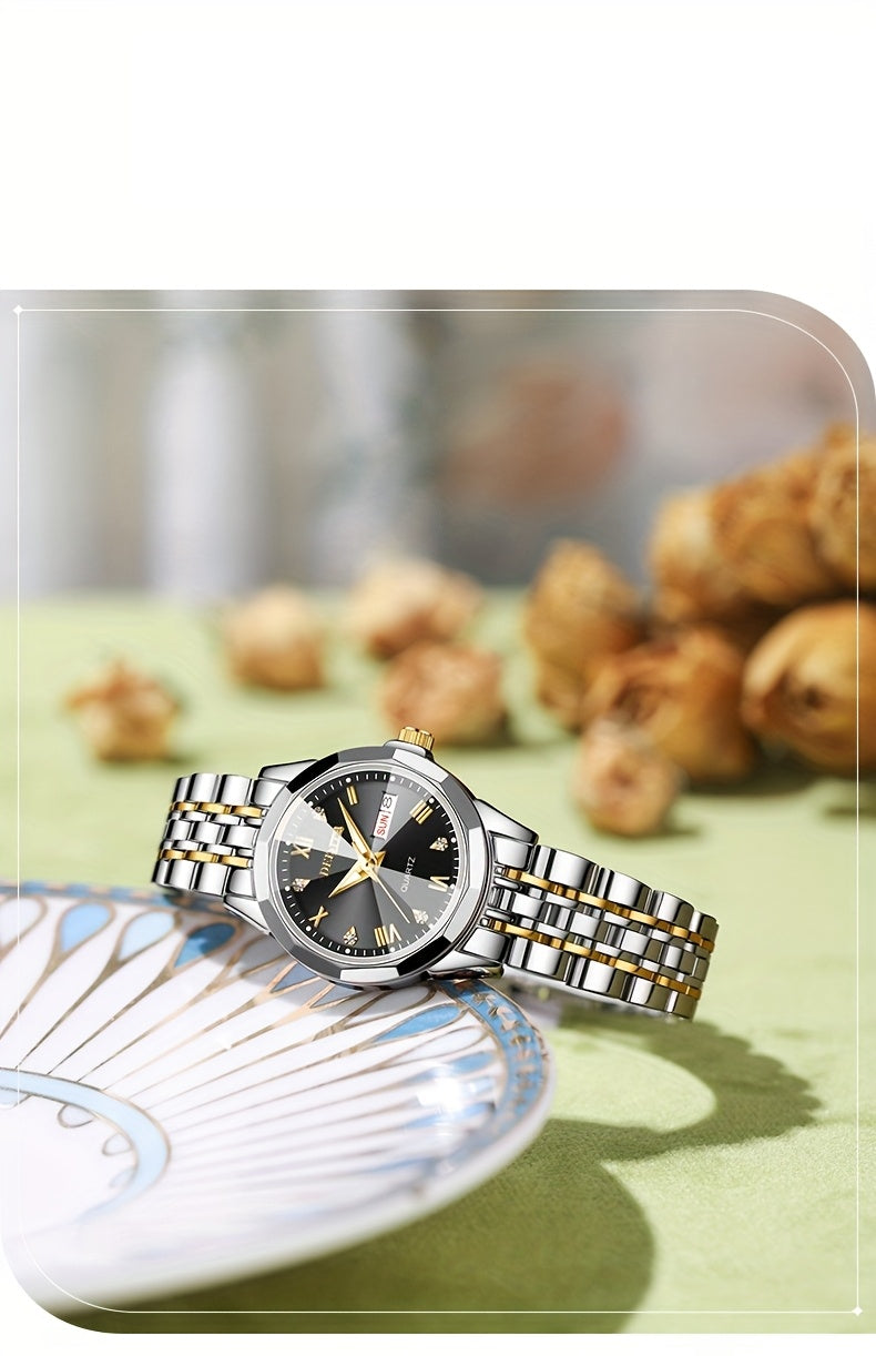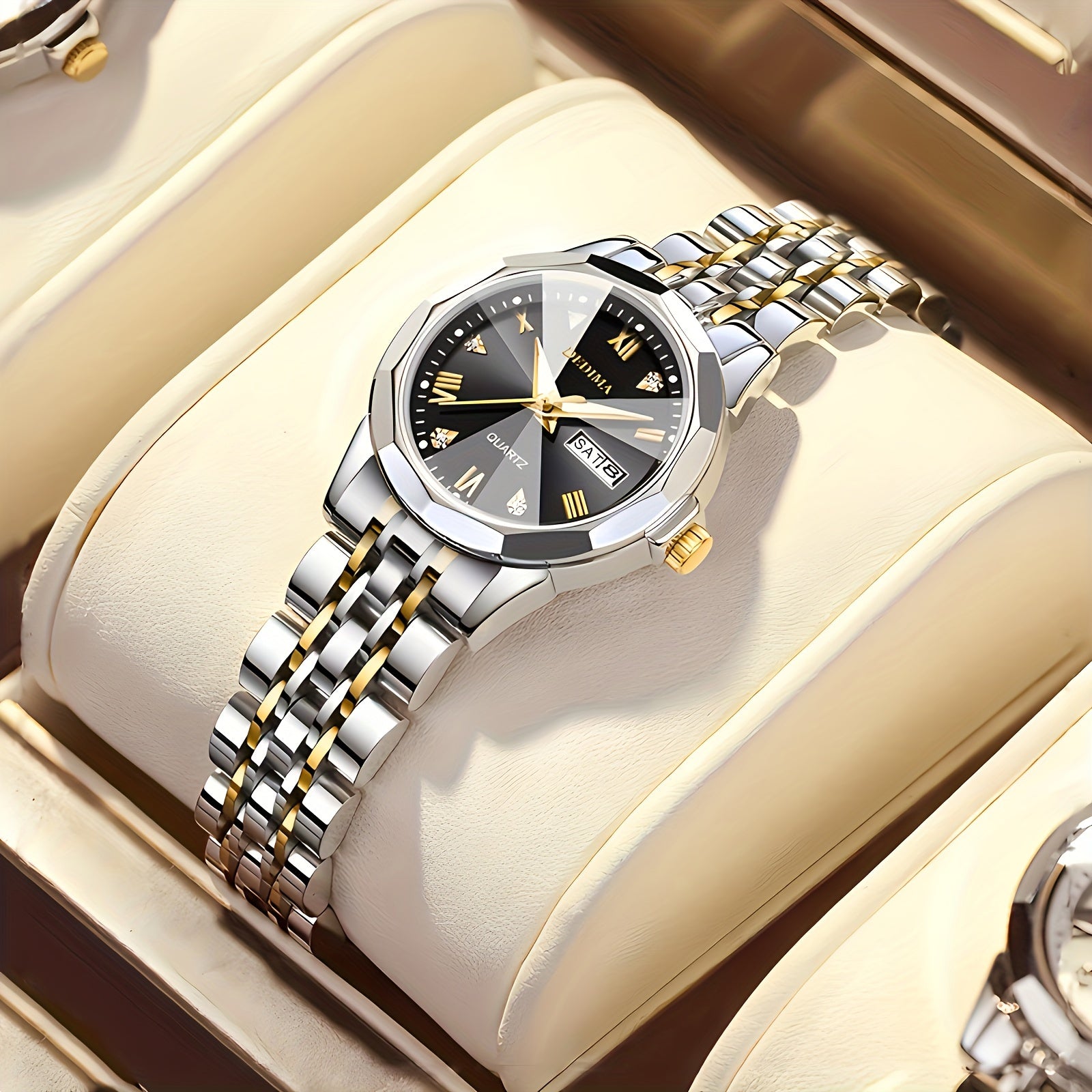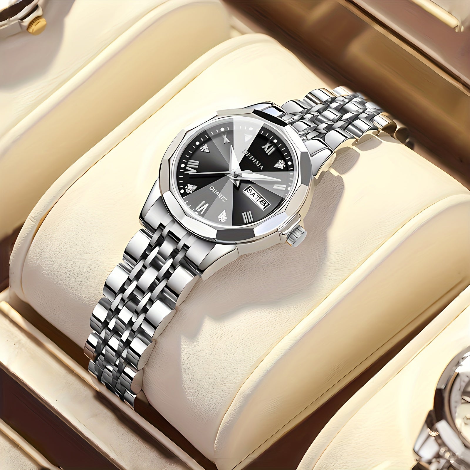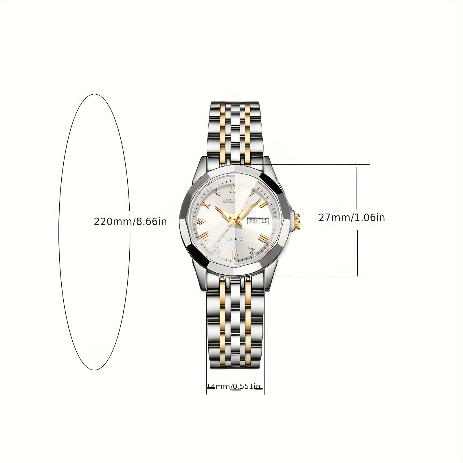 DEDIMA կանացի շքեղ չժանգոտվող պողպատից ժամացույց՝ էլեգանտ ռոմբուսային դիզայնով՝ հռոմեական թվերով, կրկնակի օրացույցով և բազմաֆունկցիոնալ պողպատե ժապավենով