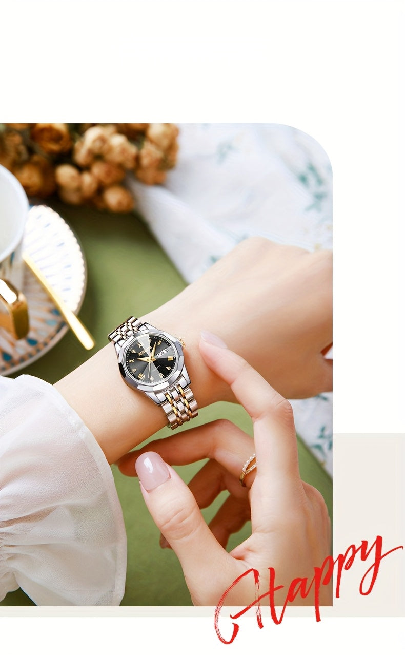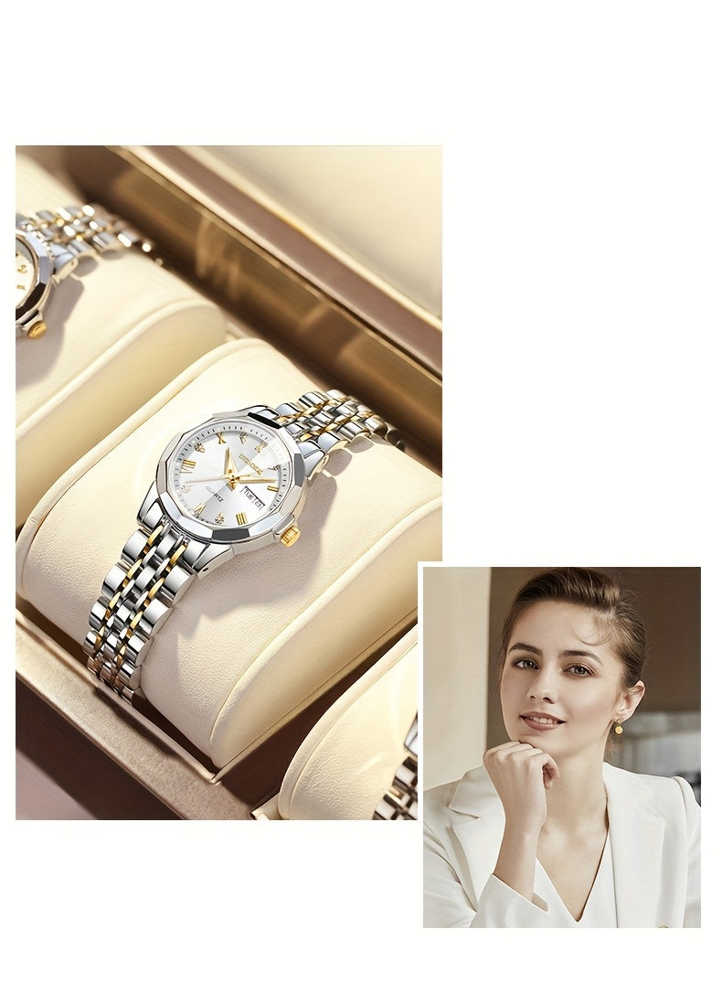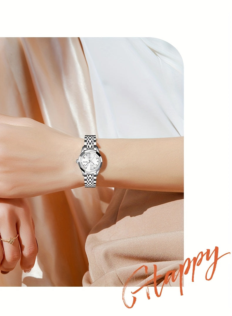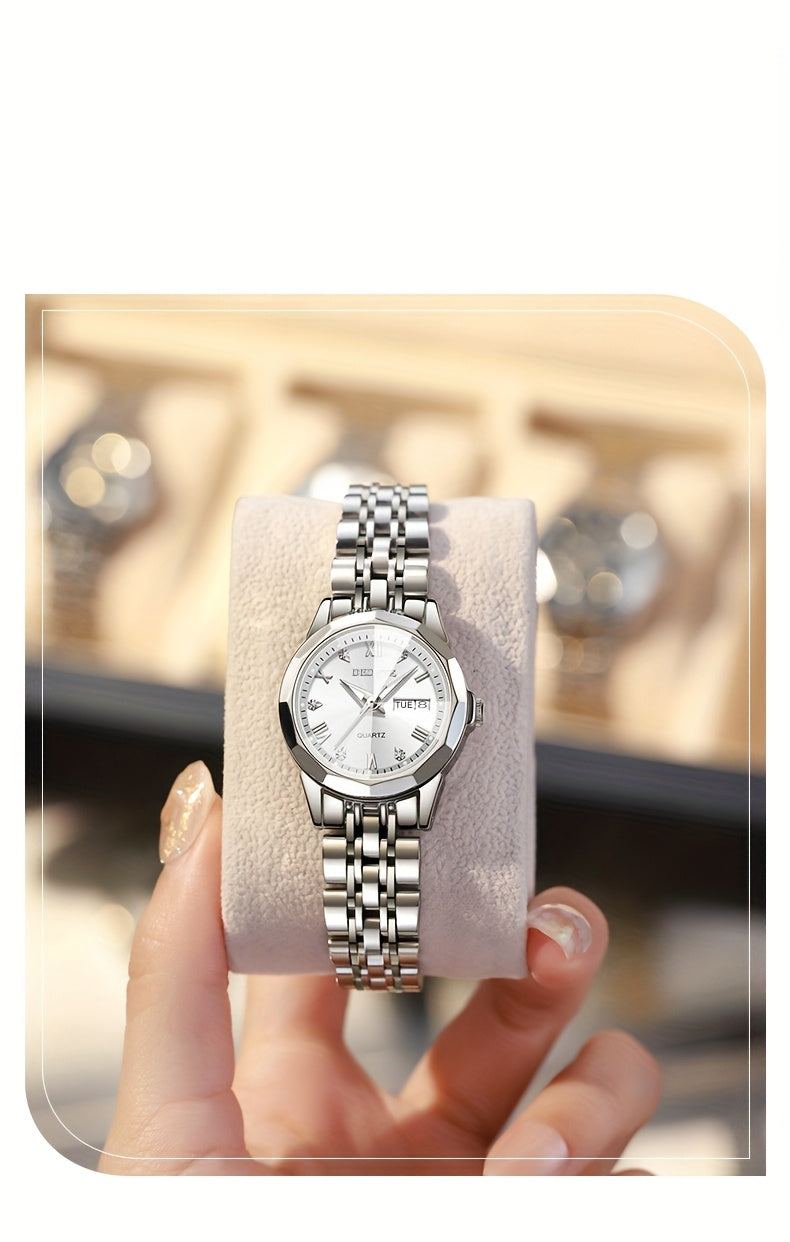 DEDIMA կանացի շքեղ չժանգոտվող պողպատից ժամացույց՝ էլեգանտ ռոմբուսային դիզայնով՝ հռոմեական թվերով, կրկնակի օրացույցով և բազմաֆունկցիոնալ պողպատե ժապավենով