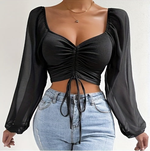 Sweetheart պարանոցով վերնաշապիկ, պատահական պատրանքային լապտերների թևեր գարնանային և աշնանային, կանացի հագուստ