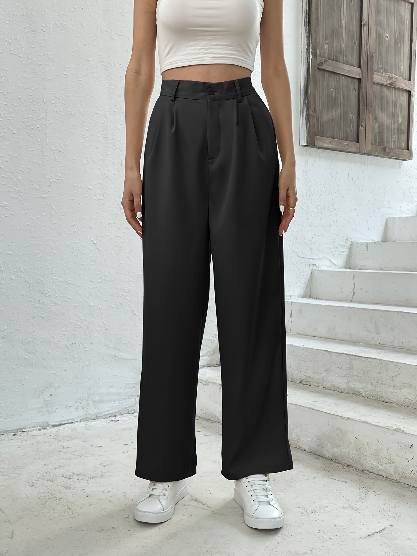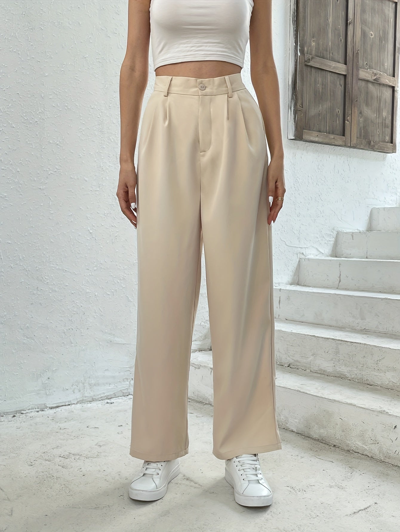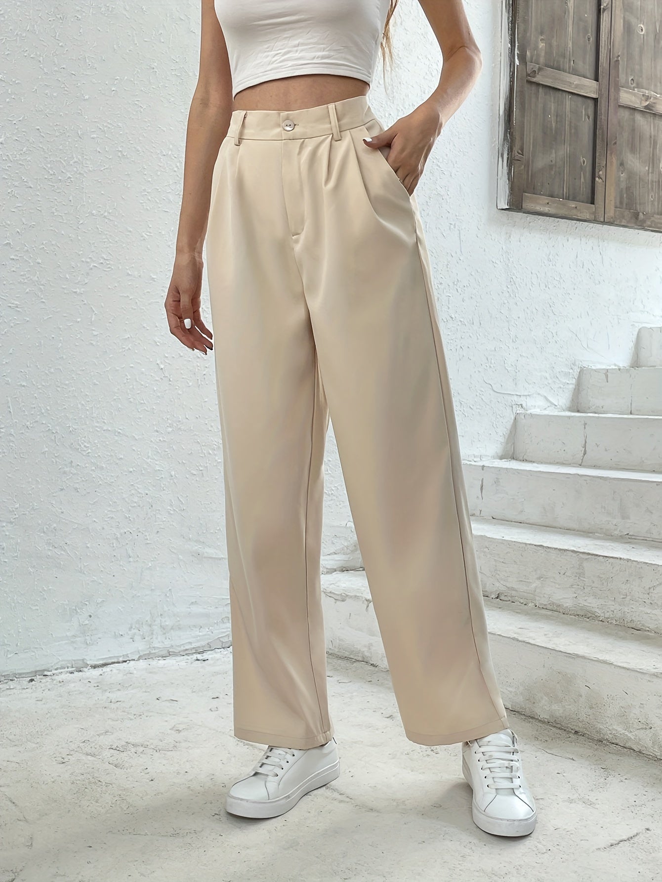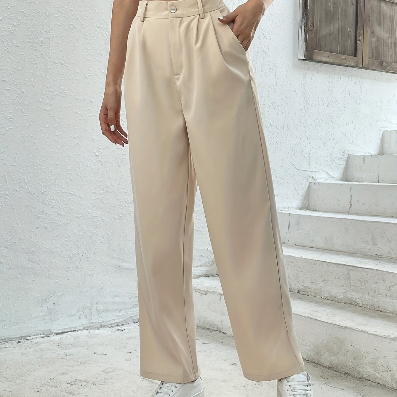 [Durable Build] Կանացի պատահական պոլիեսթեր կոստյումի տաբատ, միաձույլ երկար տաբատ՝ կոճակներով փակվող, սովորական գործվածքով հյուսված գործվածք բոլոր եղանակների համար