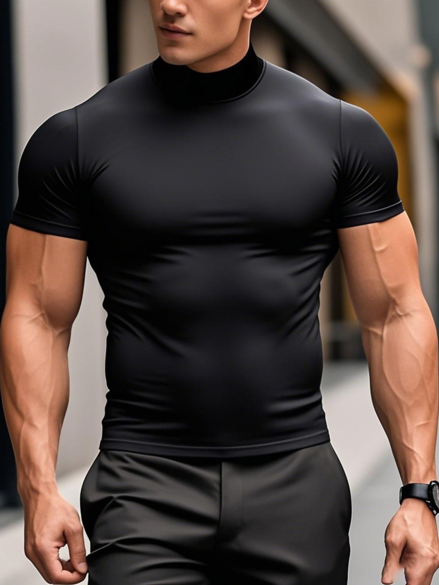 Տղամարդկանց համար նախատեսված առաձգական, կիսաբարձր վզնոցով, հարմարավետ, առօրյա, պարզ, կարճ թևքերով մարզաշապիկ - Կարճ թևքերով հիմնական վերնաշապիկ տղամարդկանց համար