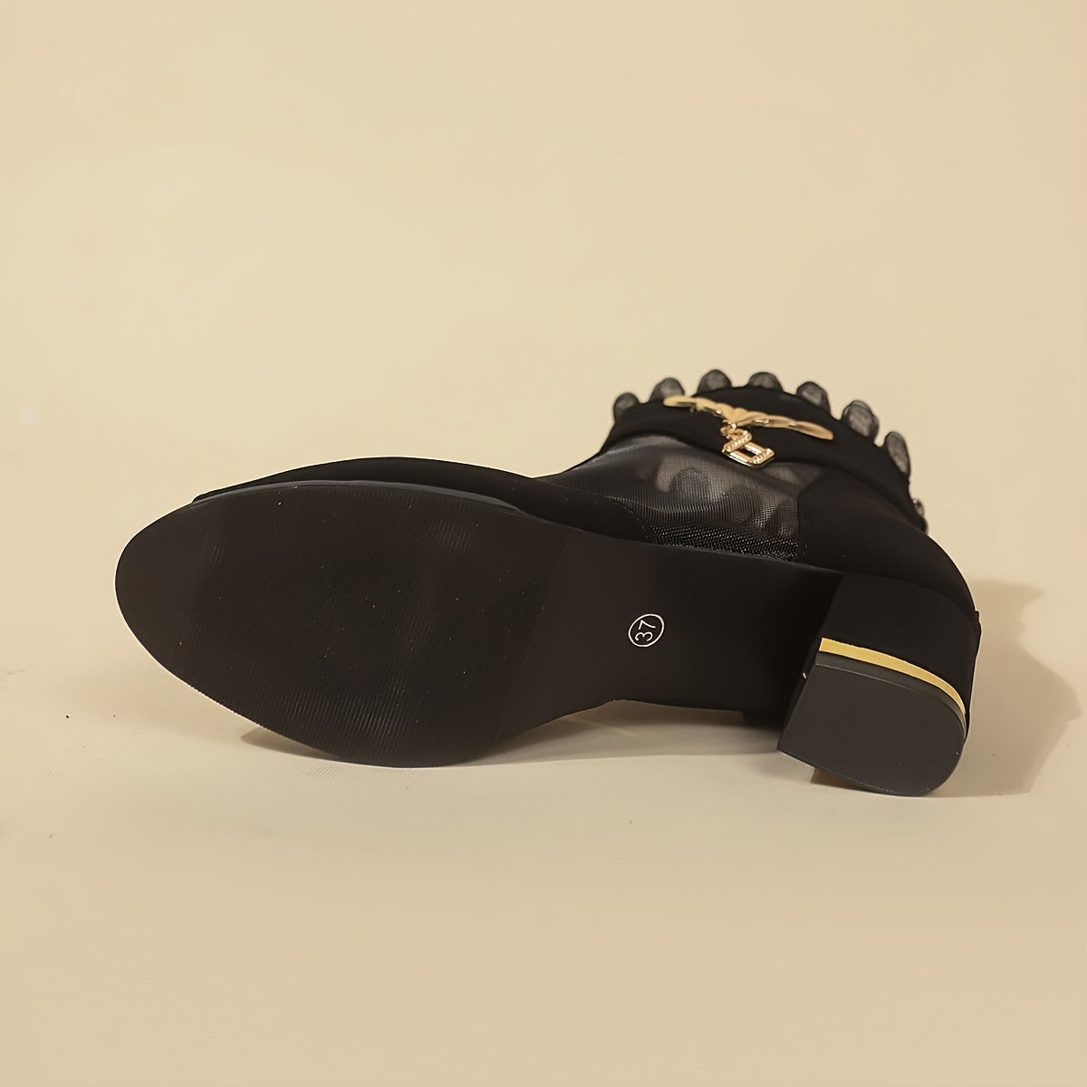 Elegant Black High-Heel Sandals with Mesh Upper - Comfortable Block Heel, Open Toe Design, Stylish Zipper Closure, Perfect for Summer Formal Wear, Formal Footwear Elegant High Heel Zipper Closure Sandals