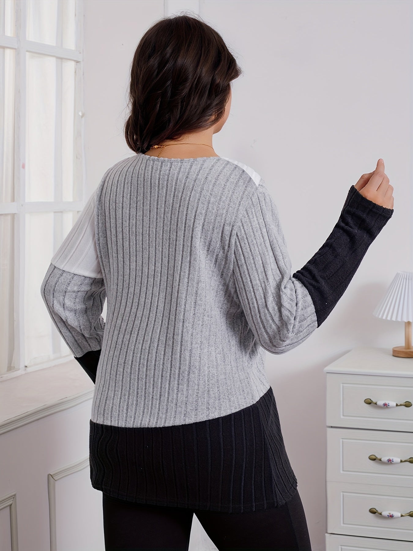 Elegant Color Block V-Neck սվիտեր կանանց համար - Ձգվող պոլիեսթեր, մեքենայով լվացվող, կատարյալ գարնան և աշնան համար