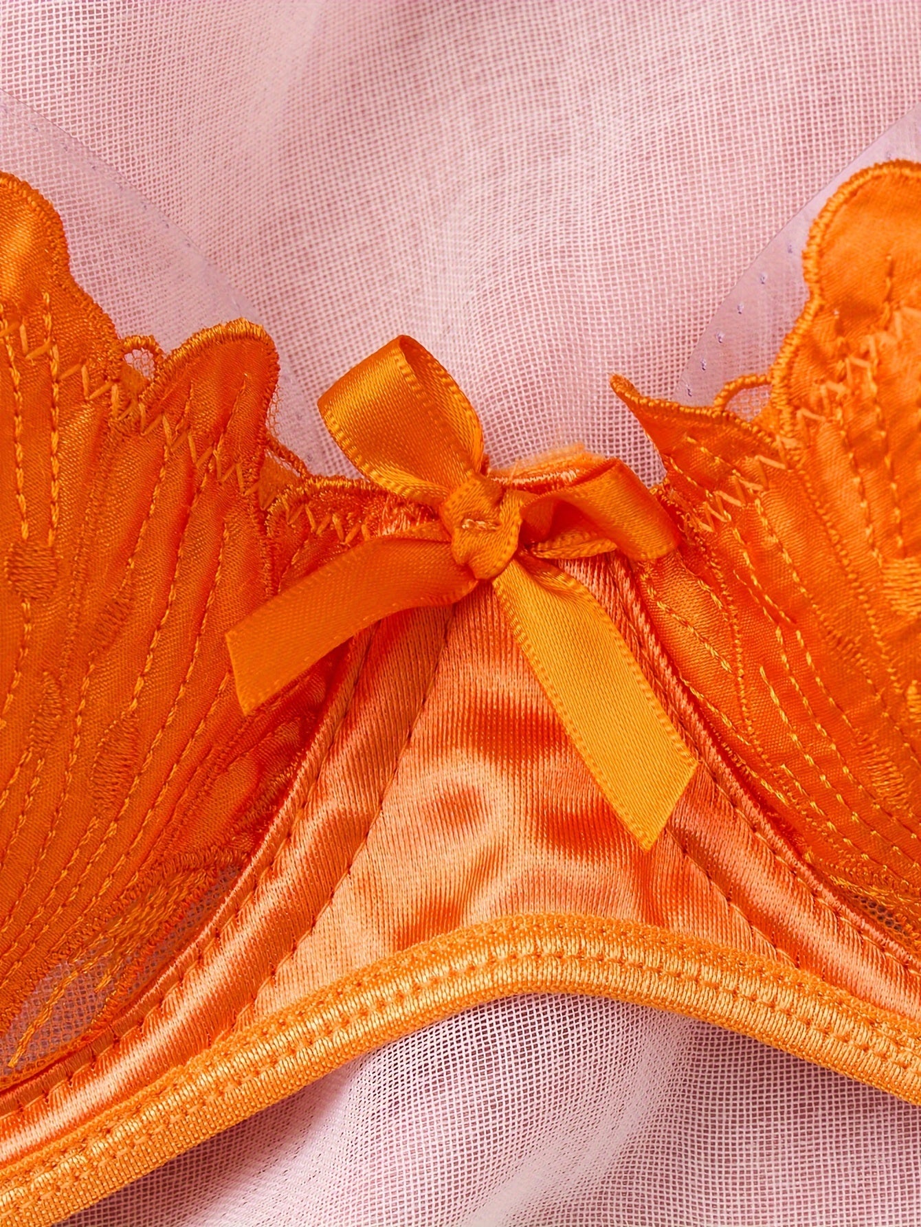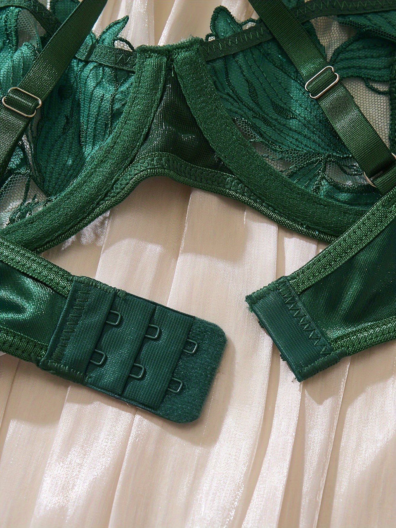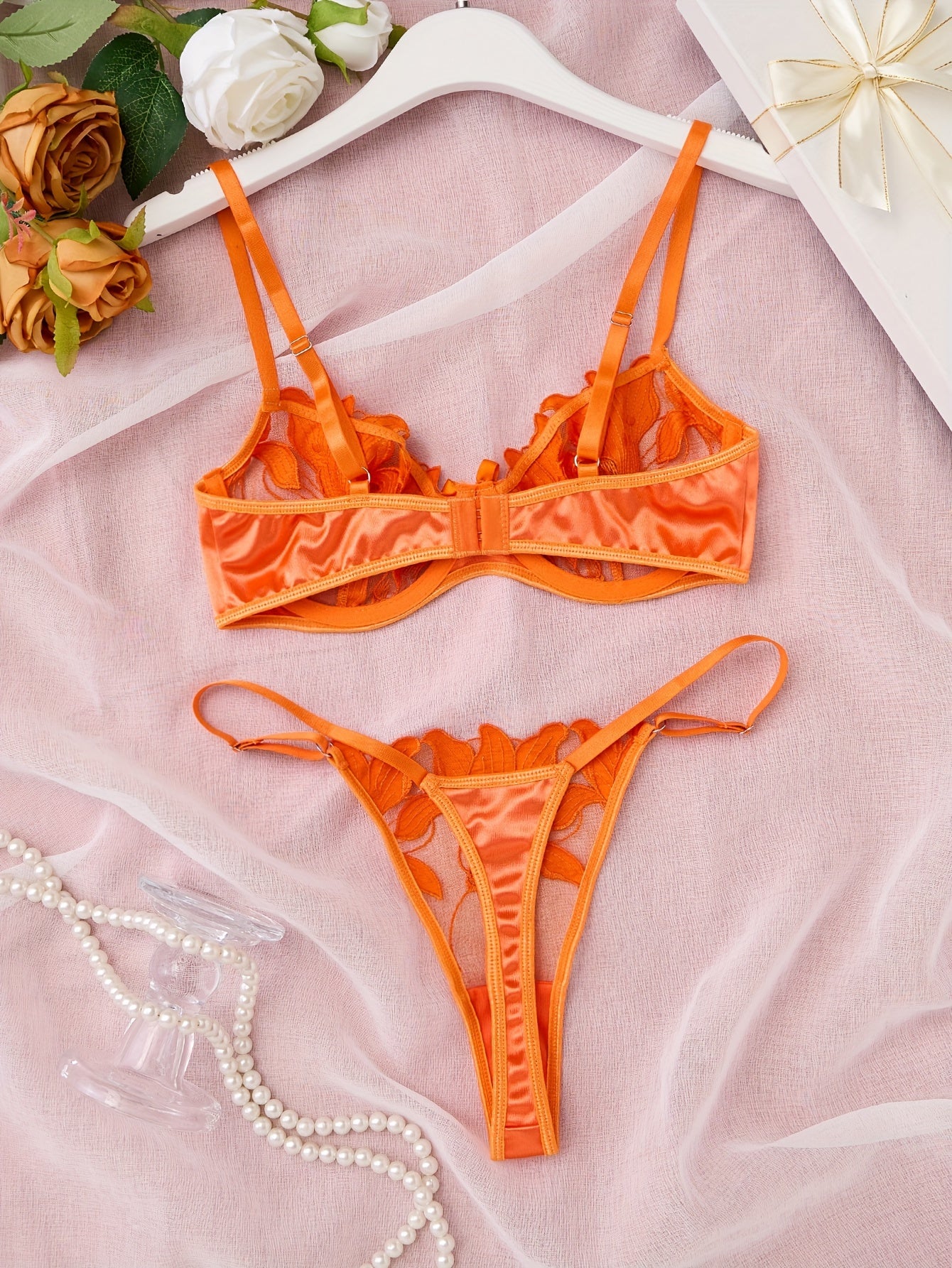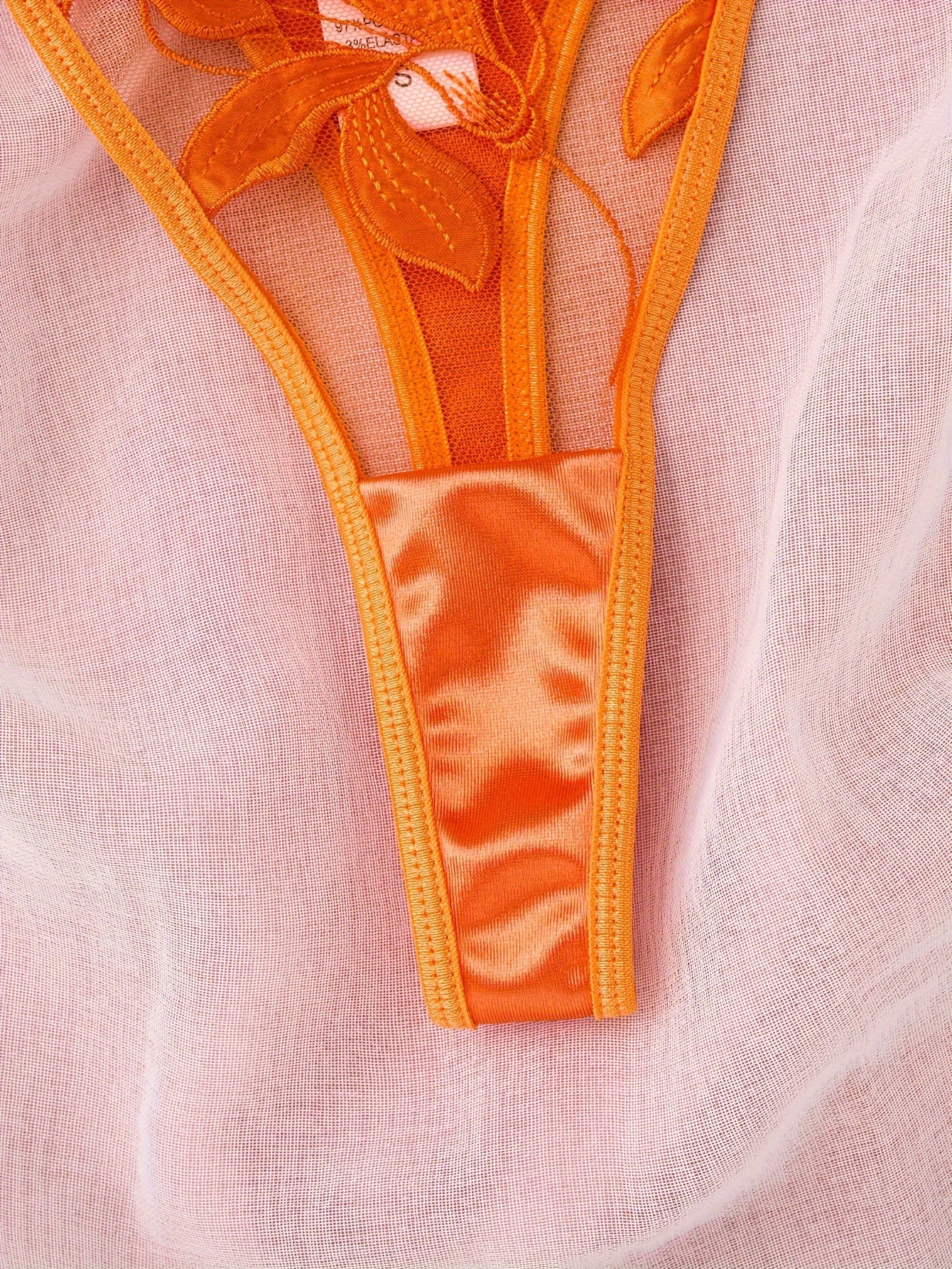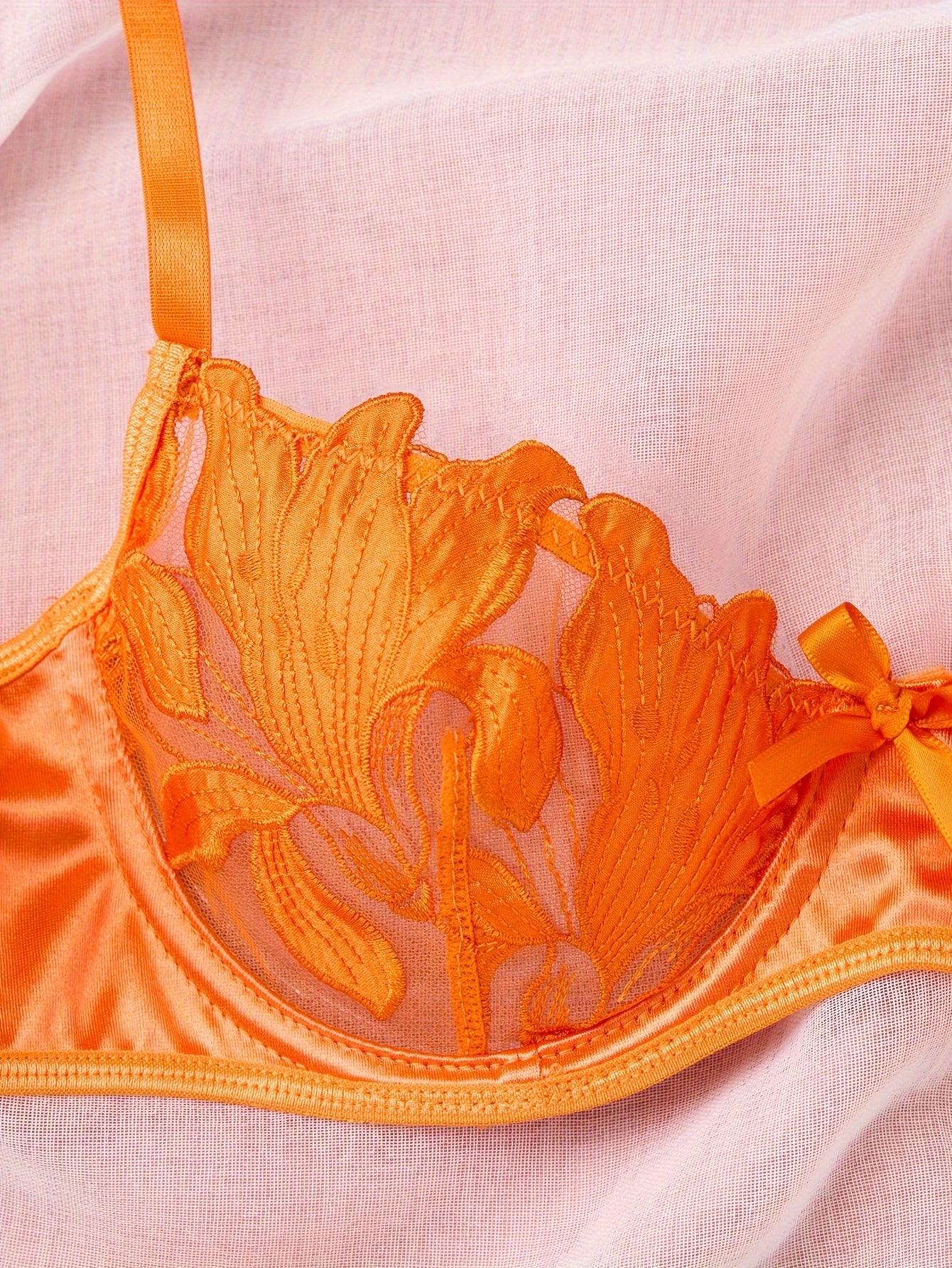 Նրբագեղ ծաղկային ասեղնագործված ներքնազգեստի հավաքածու կանանց համար. սեքսուալ թափանցիկ կրծկալ և խրճիթ, առանց միջուկի, միջին աջակցության տրիկոտաժե գործվածքից ներքնազգեստի հավաքածու պոլիեսթերով և էլաստանով