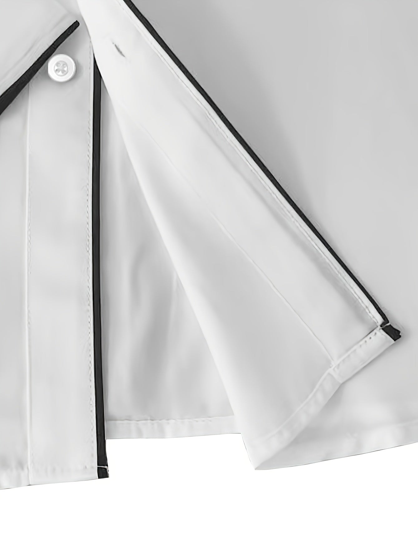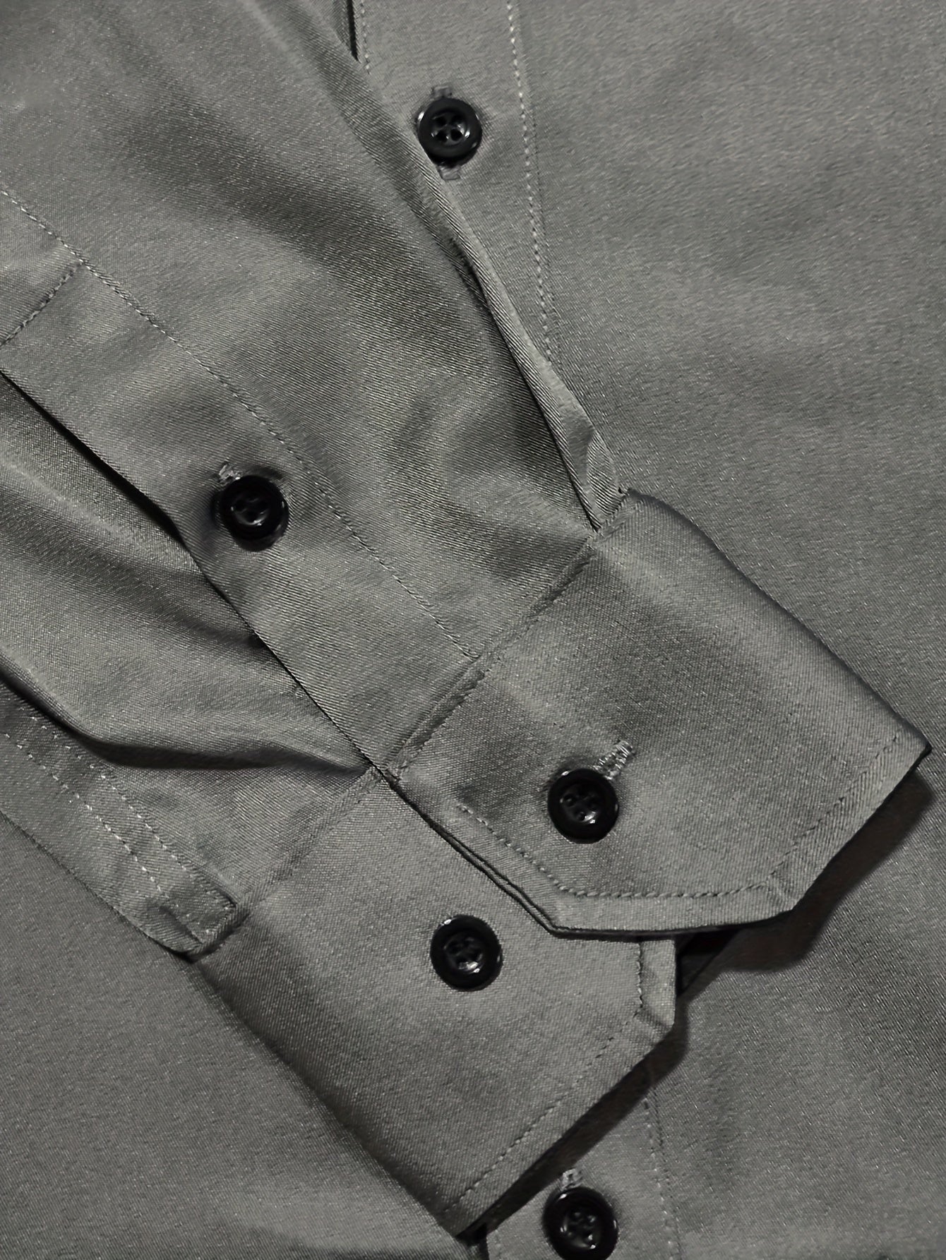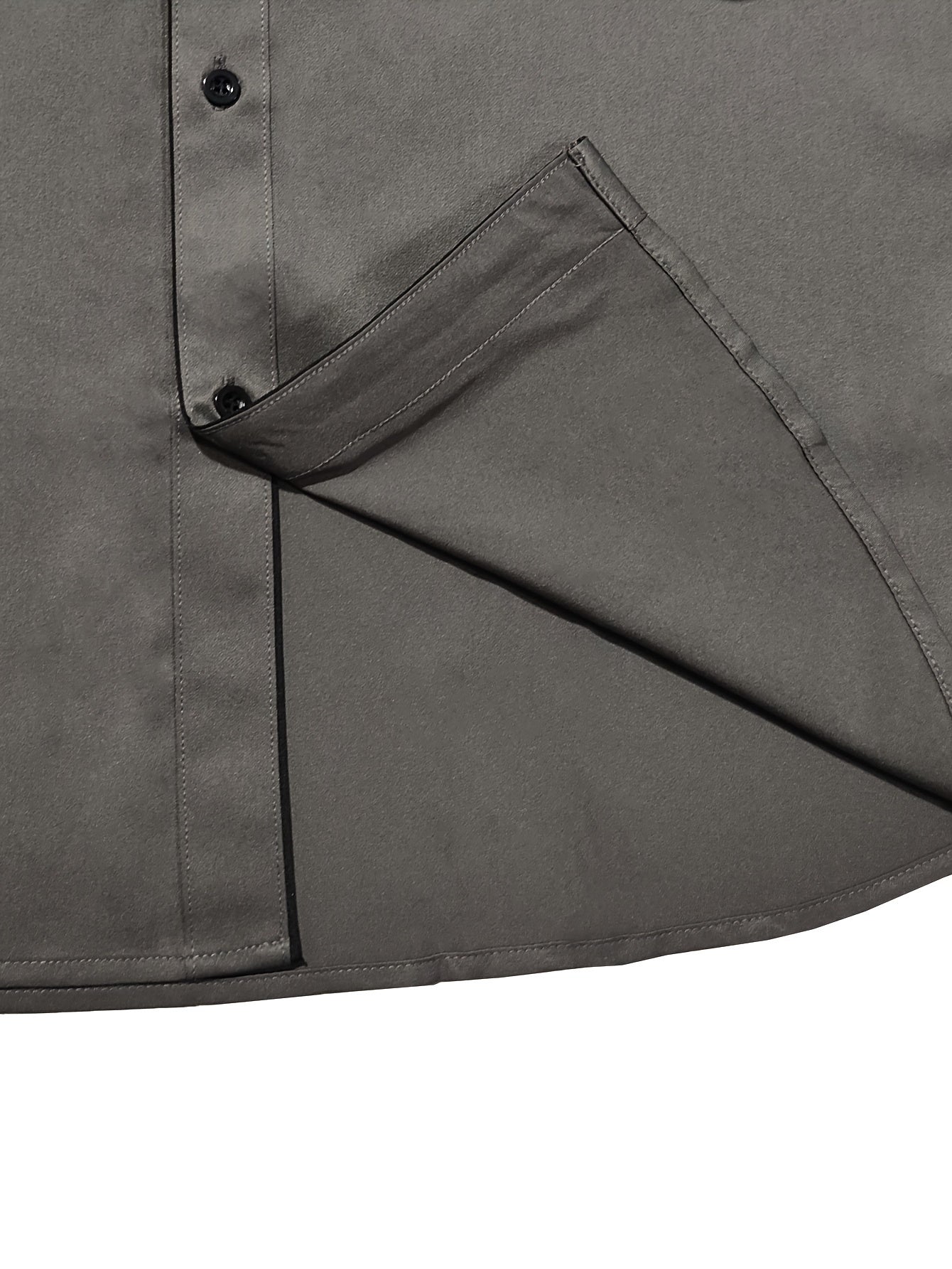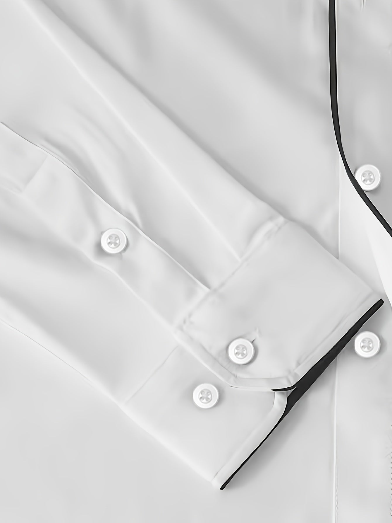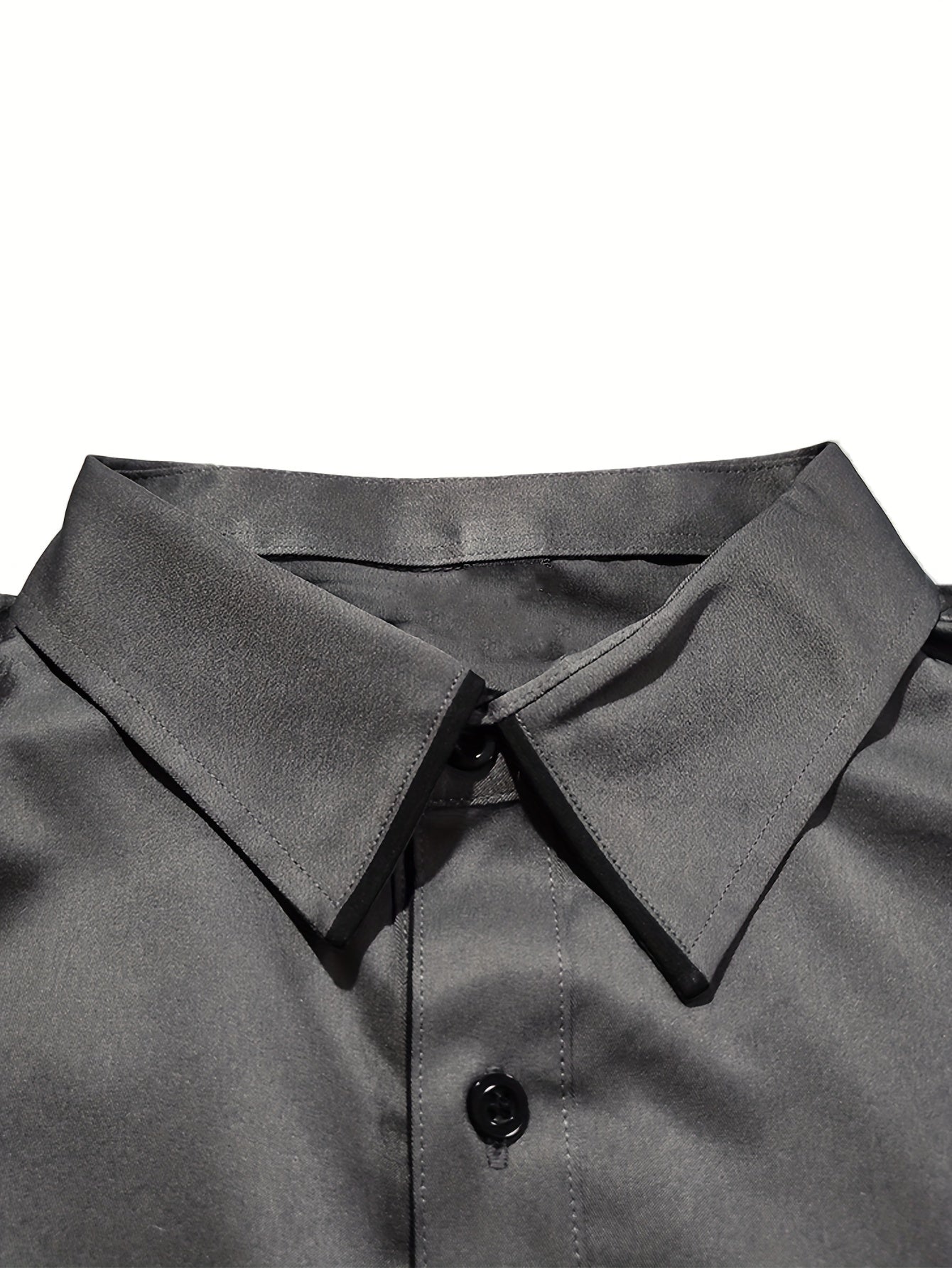 Էլեգանտ տղամարդու միագույն երկար թևքով վերնաշապիկ՝ ոճային հակապատկերային եզրագծով - 100% պոլիեսթեր, կոճակներով, լվացվող մեքենայով - իդեալական է պաշտոնական և կիսապաշտոնական առիթների համար