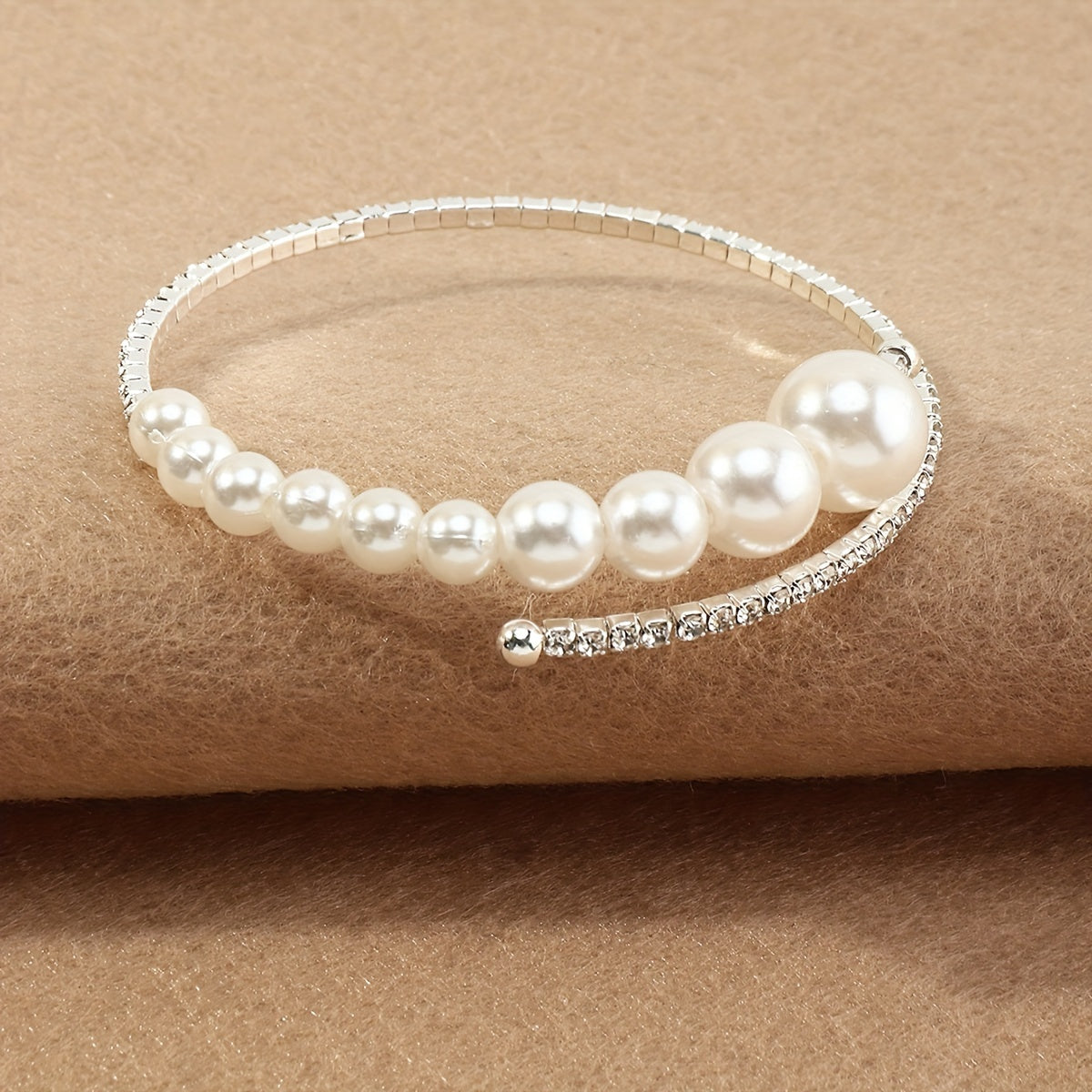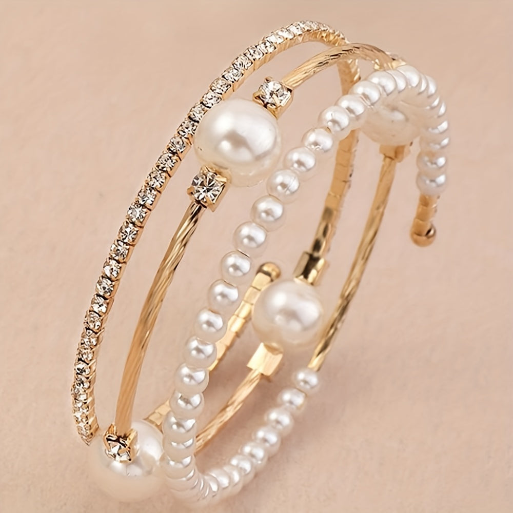 Նրբագեղ մարգարիտ և ռինսթոն մանժետ, դեկտեմբերյան ծննդյան քար, պարզ տոնական թեմա, բազմաշերտ փաթաթված ձեռնաշղթա, անալոգային քարով խառնուրդ, կանացի նորաձև զարդեր