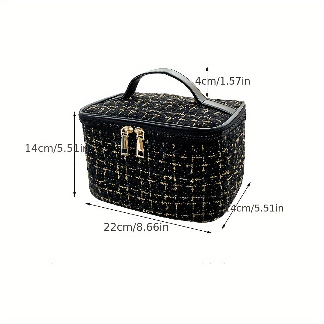 Elegant Plaid Cosmetic Bag - Large Capacity Travel Makeup Organizer with Dual Zippered Compartments, Portable Toiletry Storage in Light Blue/White/Pink/Red/Navy/Black, Polyester Material, Hand Wash or Dry Clean, Toiletry Trav
