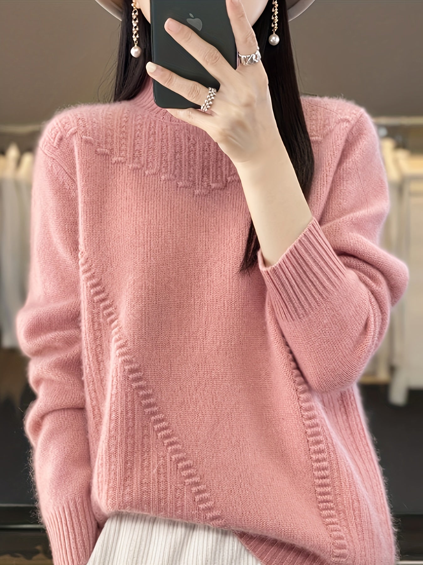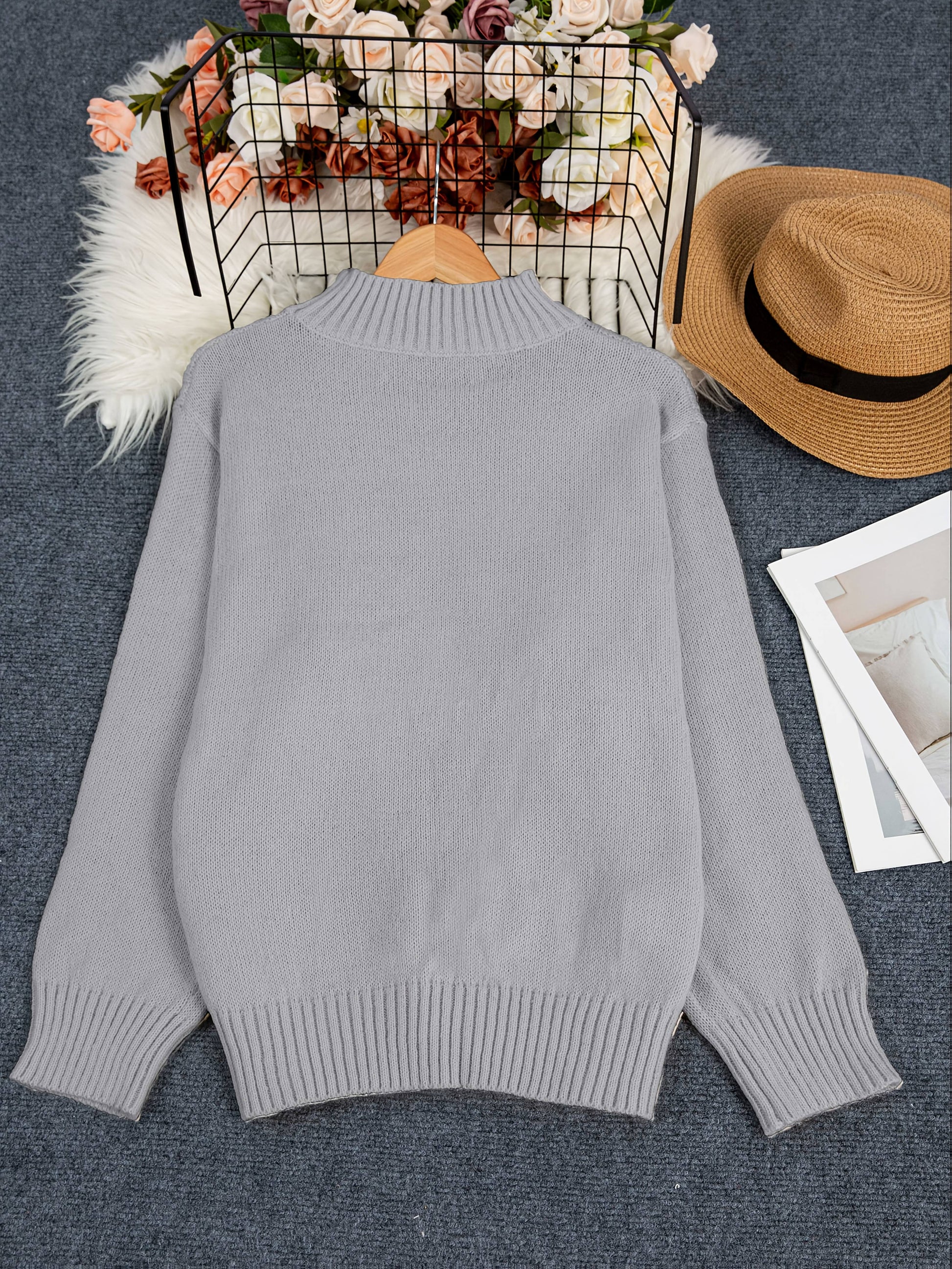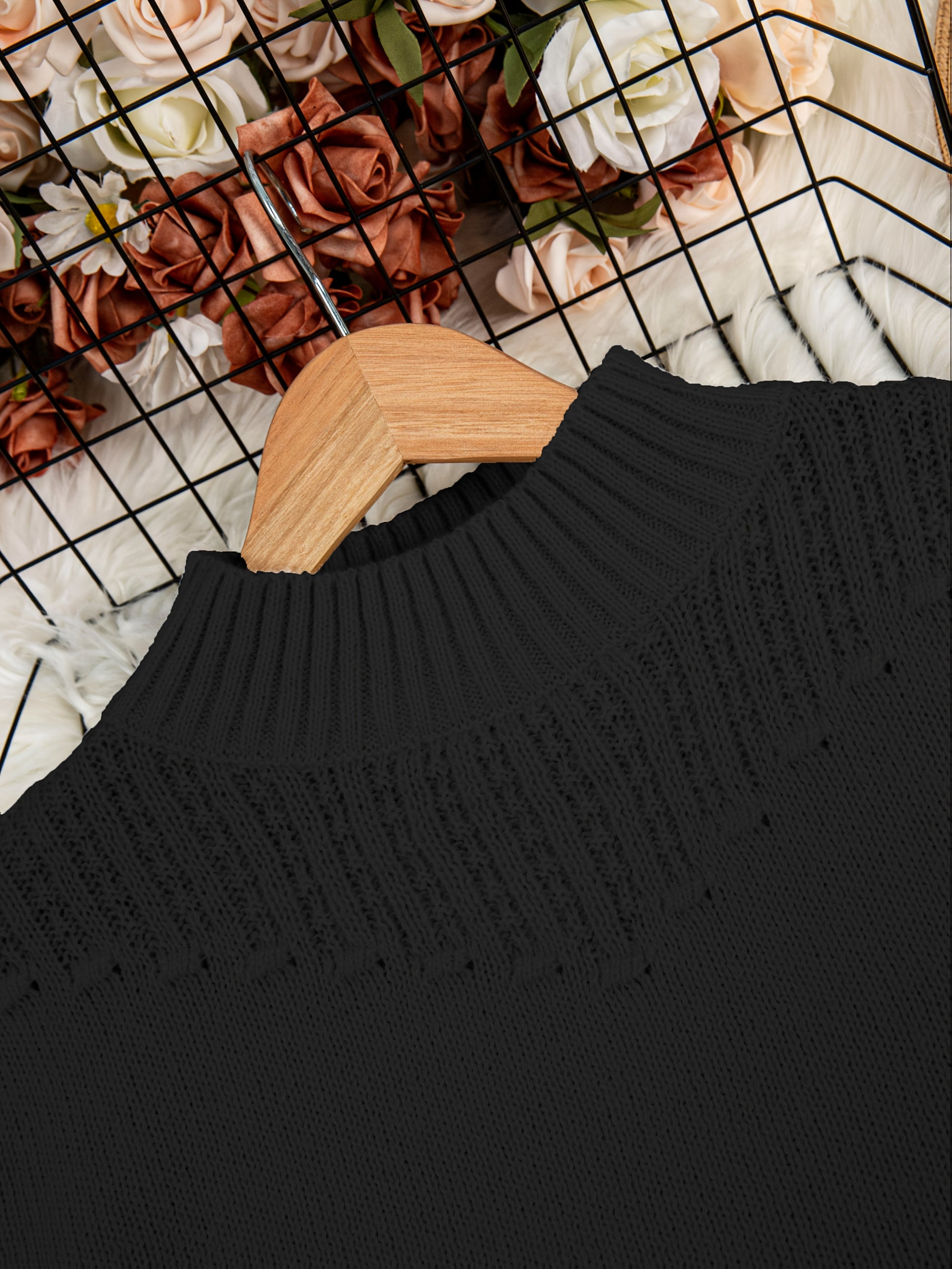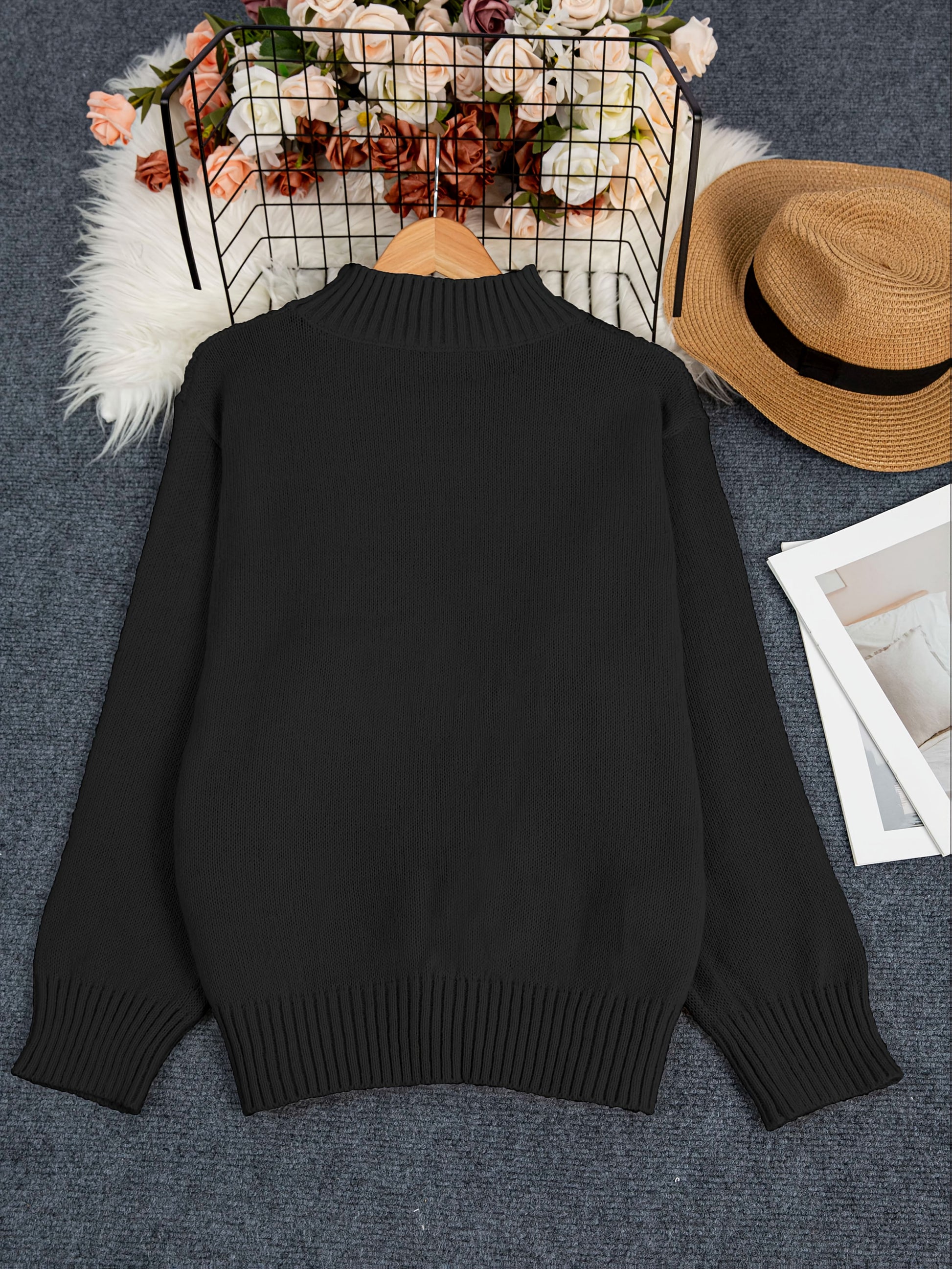 Elegant Plus Size պինդ գույնի ծաղրական վզով սվիտեր - Կանացի կարճ տրիկոտաժե երկարաթև պուլովեր, մեքենայով լվացվող, էլեգանտ ոճ, գարուն/աշուն