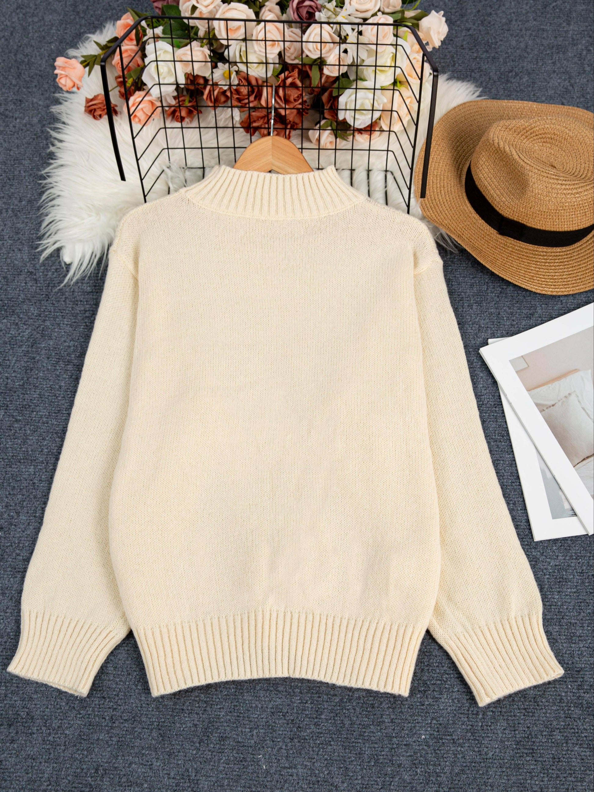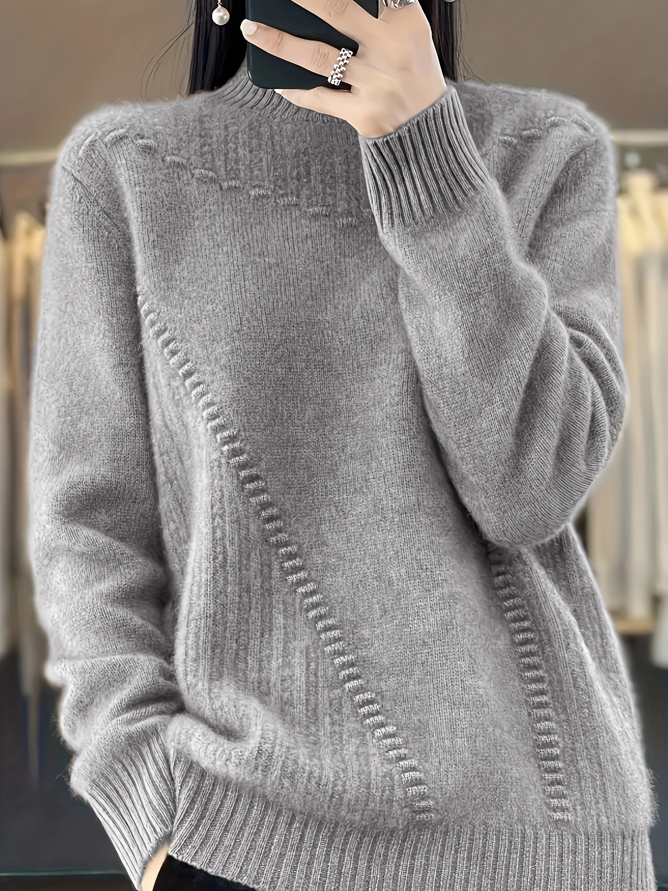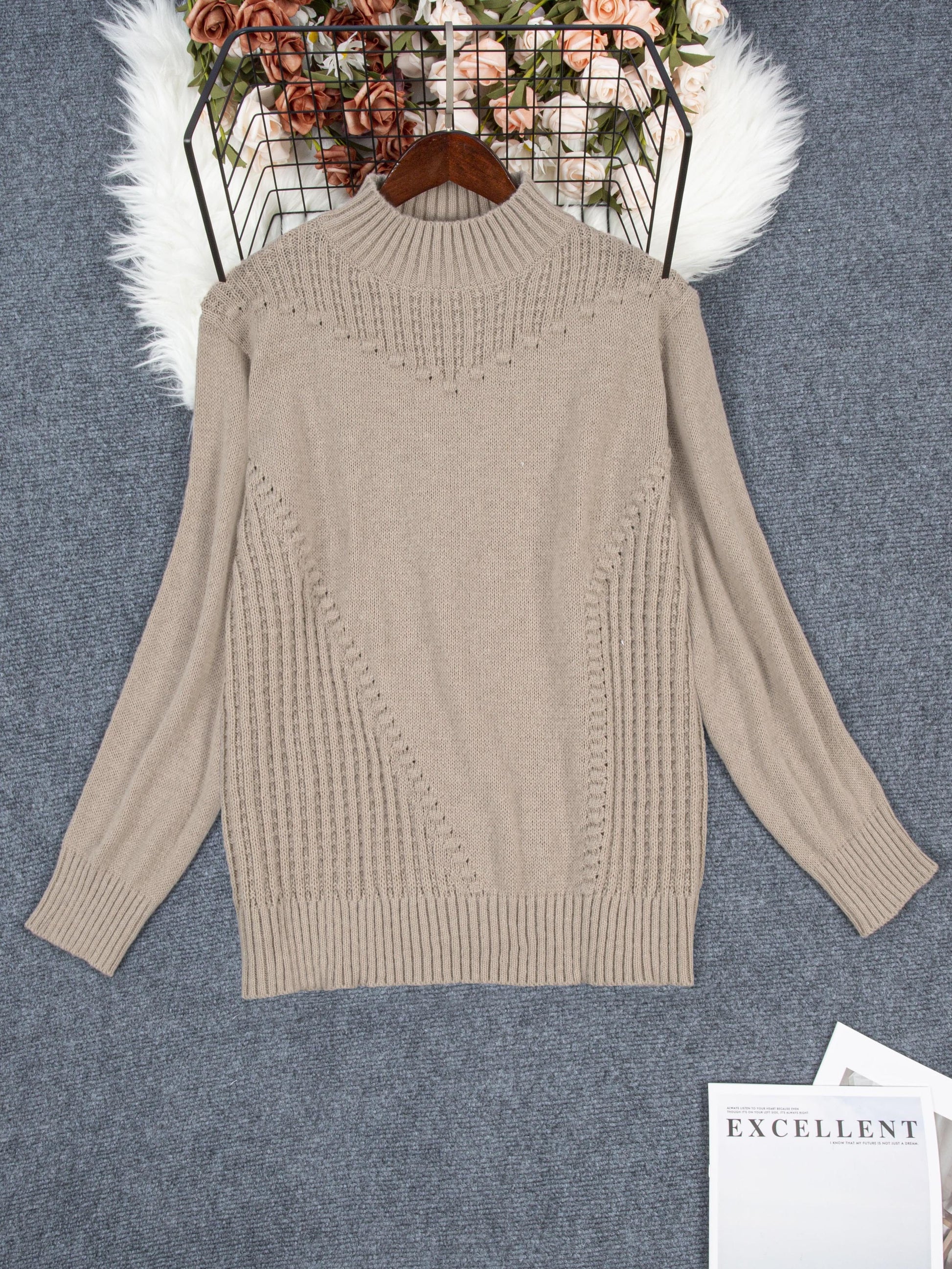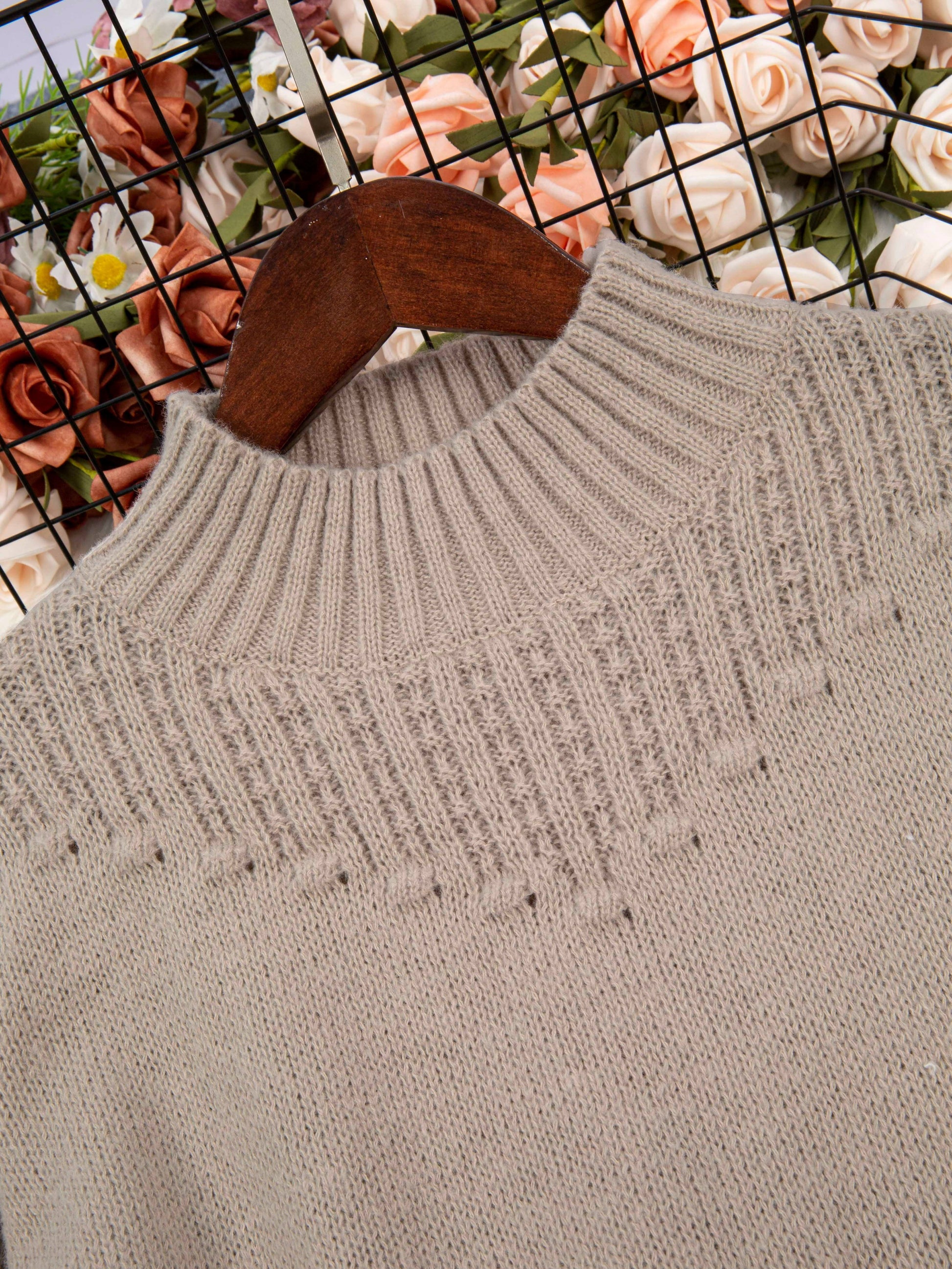 Elegant Plus Size պինդ գույնի ծաղրական վզով սվիտեր - Կանացի կարճ տրիկոտաժե երկարաթև պուլովեր, մեքենայով լվացվող, էլեգանտ ոճ, գարուն/աշուն
