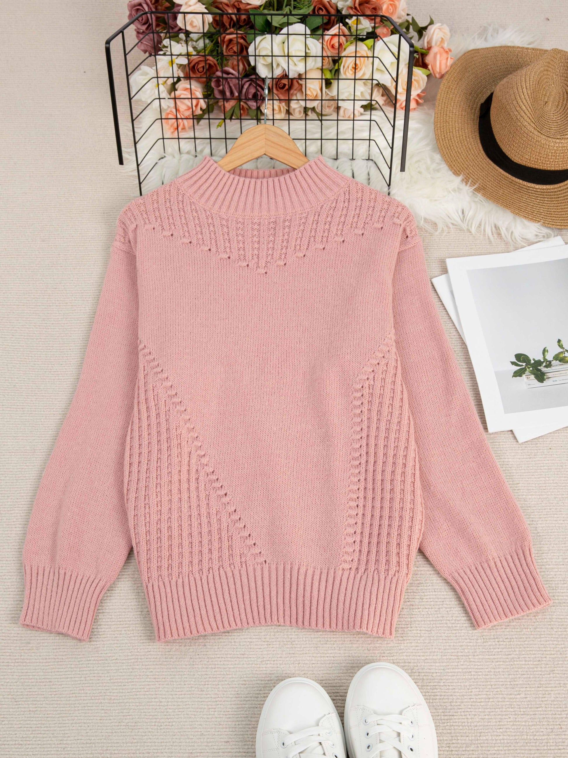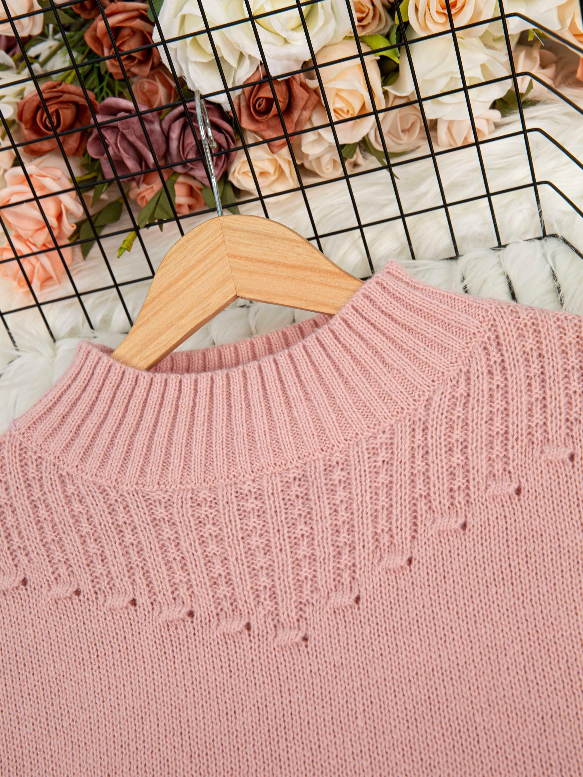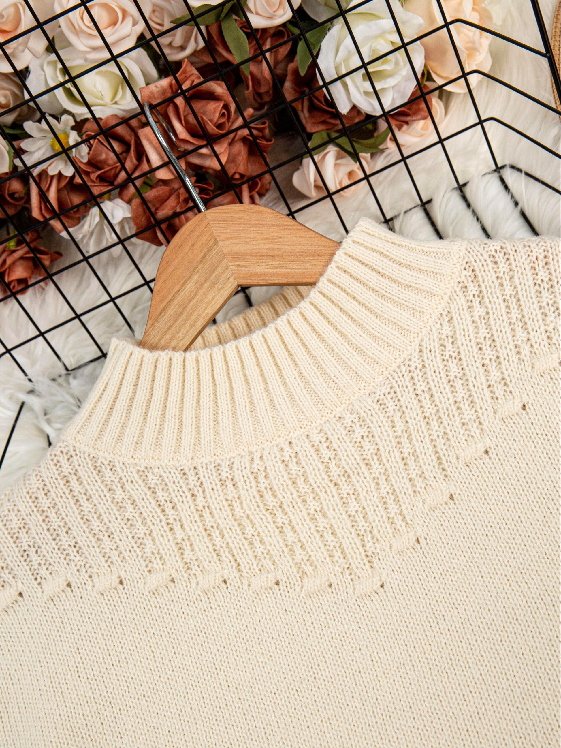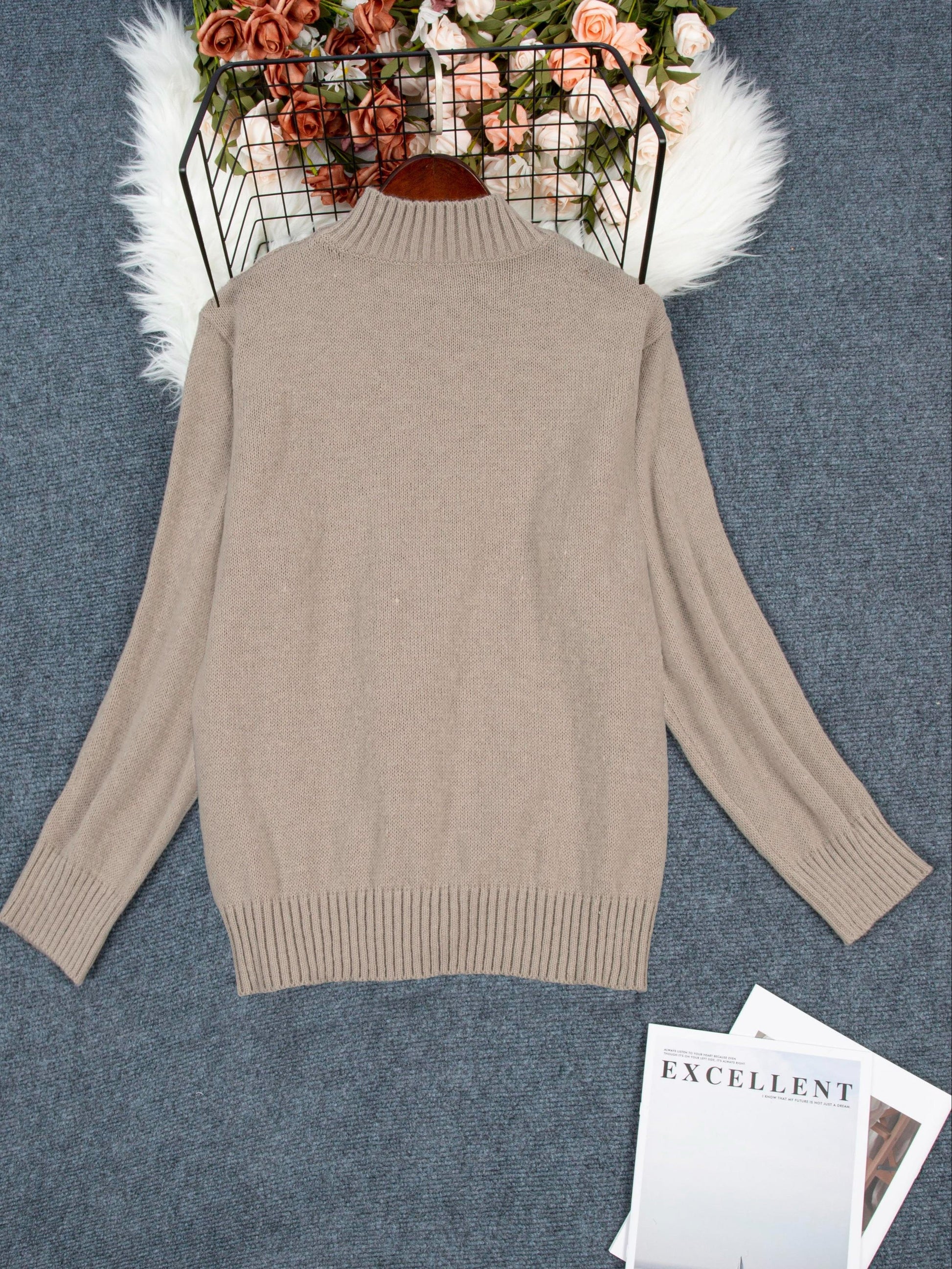 Elegant Plus Size պինդ գույնի ծաղրական վզով սվիտեր - Կանացի կարճ տրիկոտաժե երկարաթև պուլովեր, մեքենայով լվացվող, էլեգանտ ոճ, գարուն/աշուն