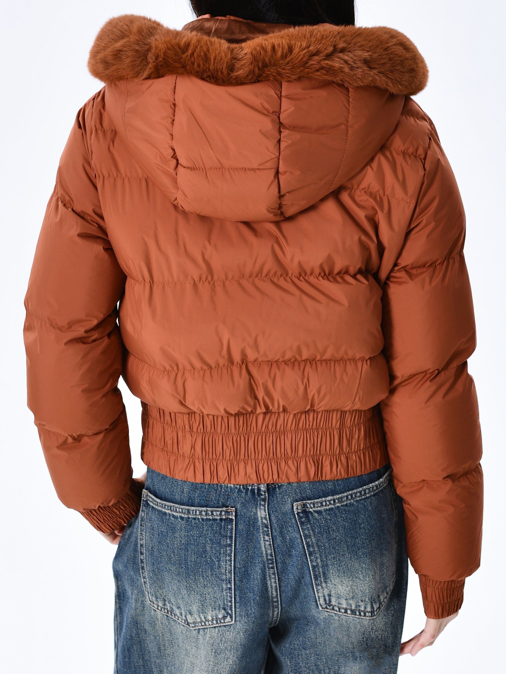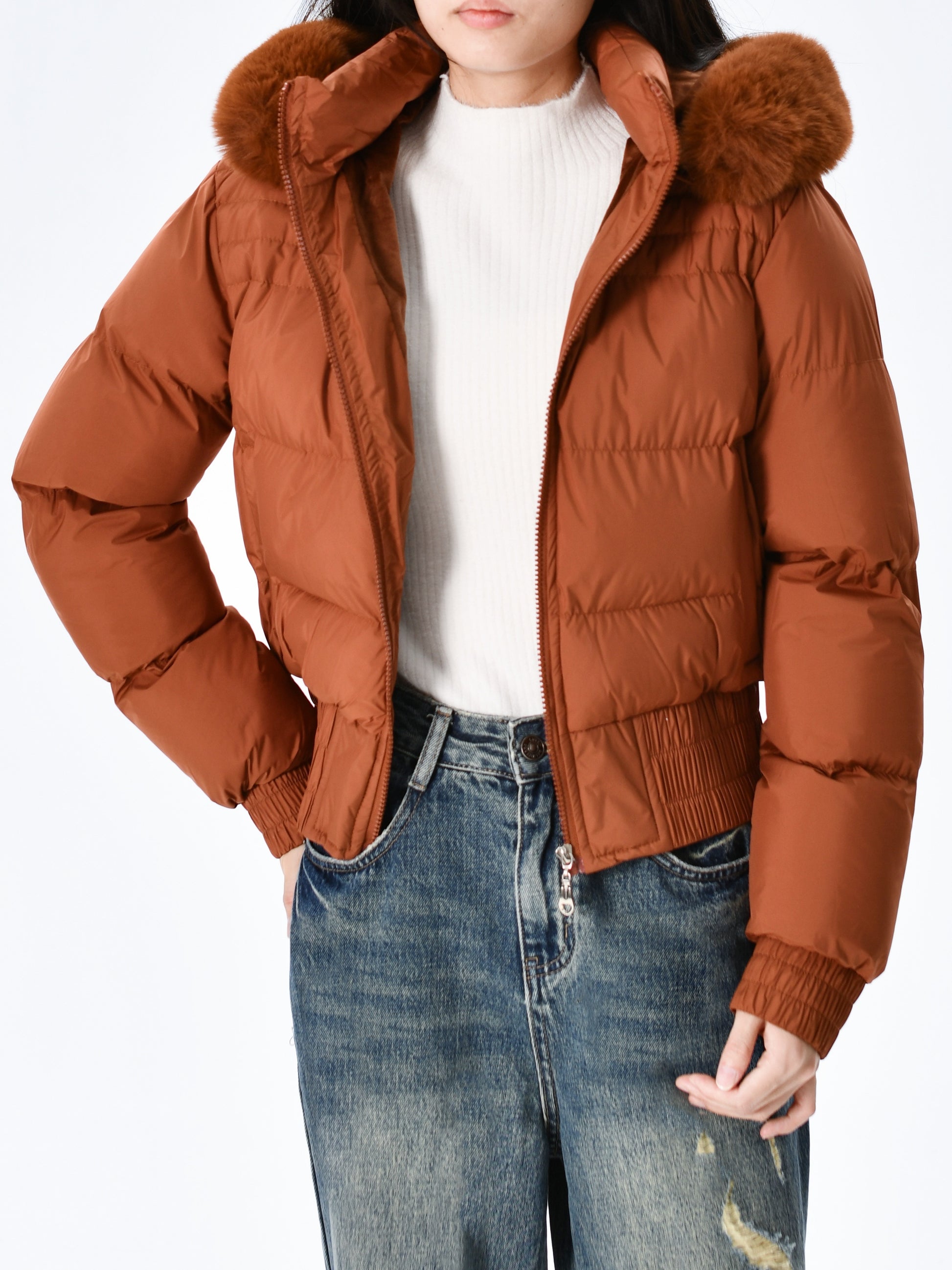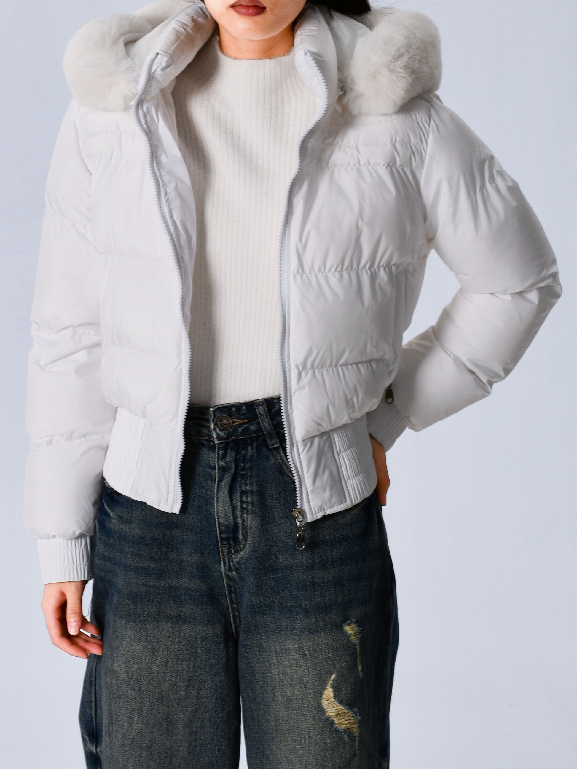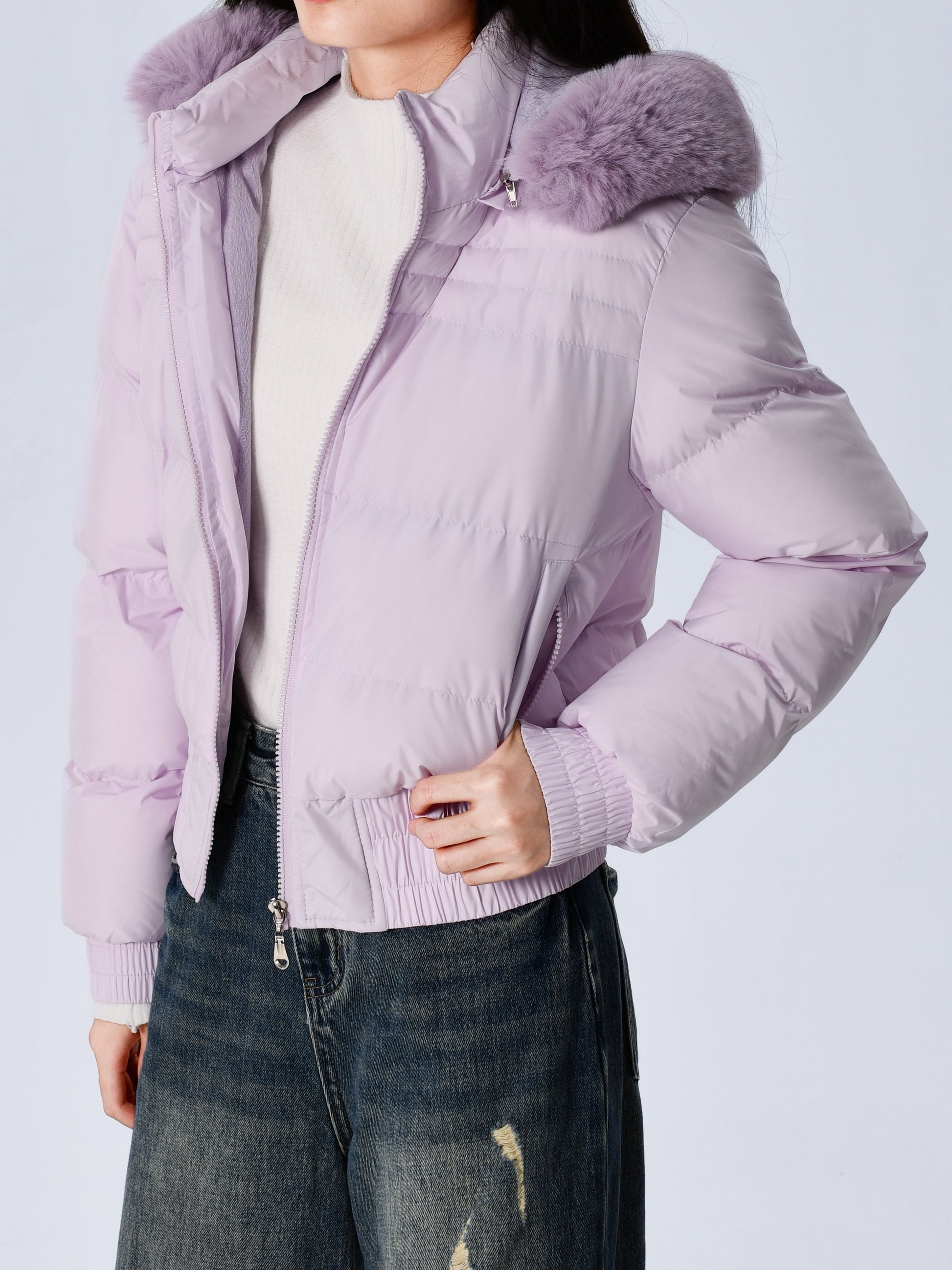 Էլեգանտ պոլիեսթերային բարձիկով կանացի բաճկոն - 2024 թվականի նորաձև կարճ միագույն վերարկու՝ հաստ արհեստական մորթուց օձիքով, երկար թևքերով, կայծակաճարմանդով, գործված - Ձմեռային ջերմություն, առօրյա վերնազգեստ