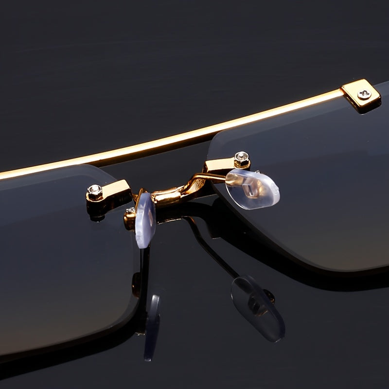Էլեգանտ, առանց շրջանակի օդաչուի ոճի նորաձև ակնոցներ տղամարդկանց և կանանց համար՝ ոսկեգույն ընձառյուծի նախշերով, կանաչ գրադիենտային ոսպնյակներով, թեթև մետաղական շրջանակով, իդեալական է լողափնյա երեկույթների և ճանապարհորդությունների համար