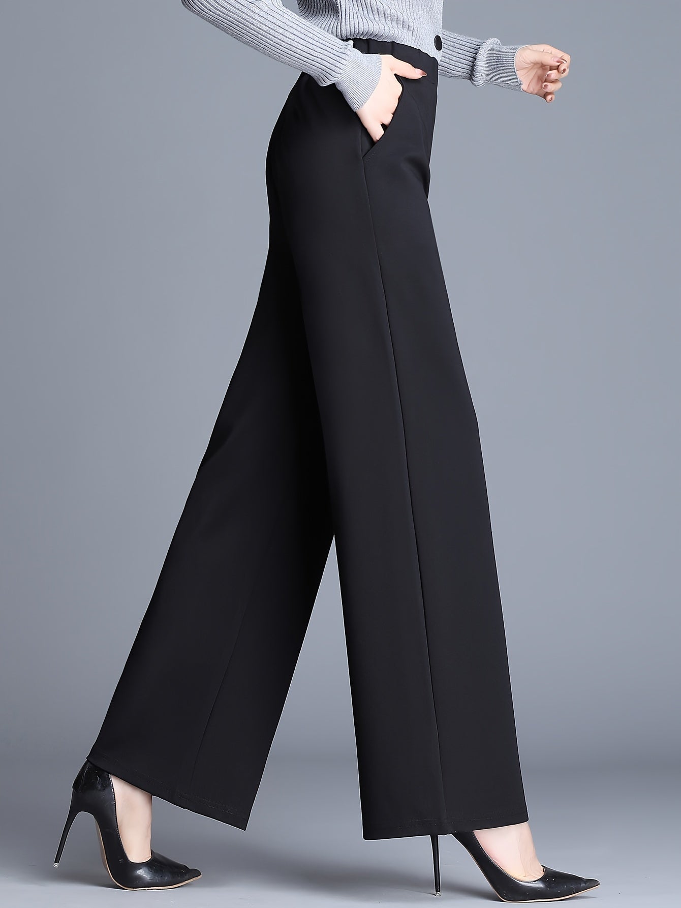 Էլեգանտ միագույն լայն ոտքերի շալվար կանանց համար, 95% պոլիեսթեր 5% էլաստան տրիկոտաժե գործվածք, բոլոր սեզոնային ուղիղ տաբատ՝ թեք գրպաններով, նորաձև պատահական երկար տաբատ
