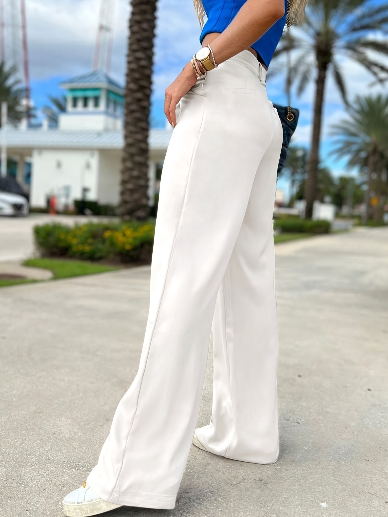 Էլեգանտ պինդ բարձր գոտկատեղով լայն ոտքերի շալվար, կրկնակի ծալքավոր թեք գրպան, պաշտոնական բիզնես տաբատ կանանց համար, 37% պոլիեսթեր 63% վիսկոզա, 3% էլաստան, բոլոր սեզոնային, 200 գ/մ² հյուսված գործվածք