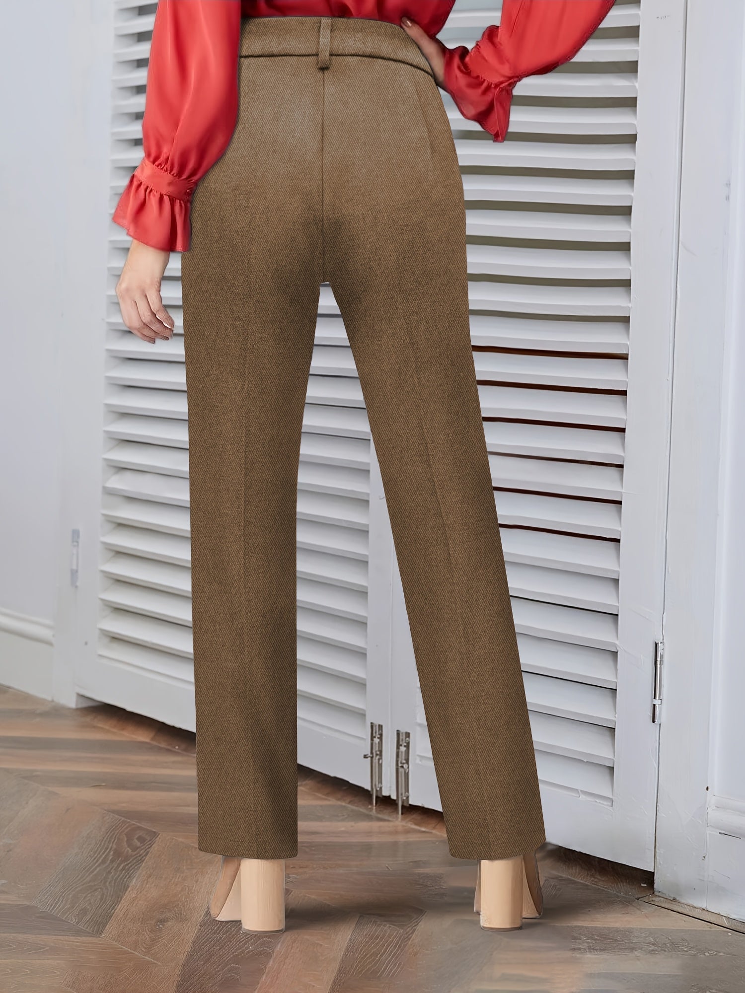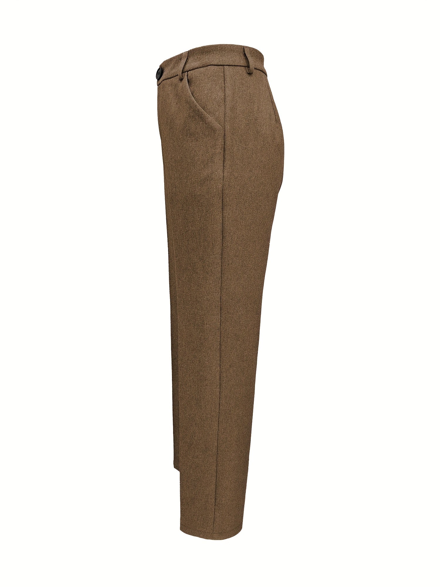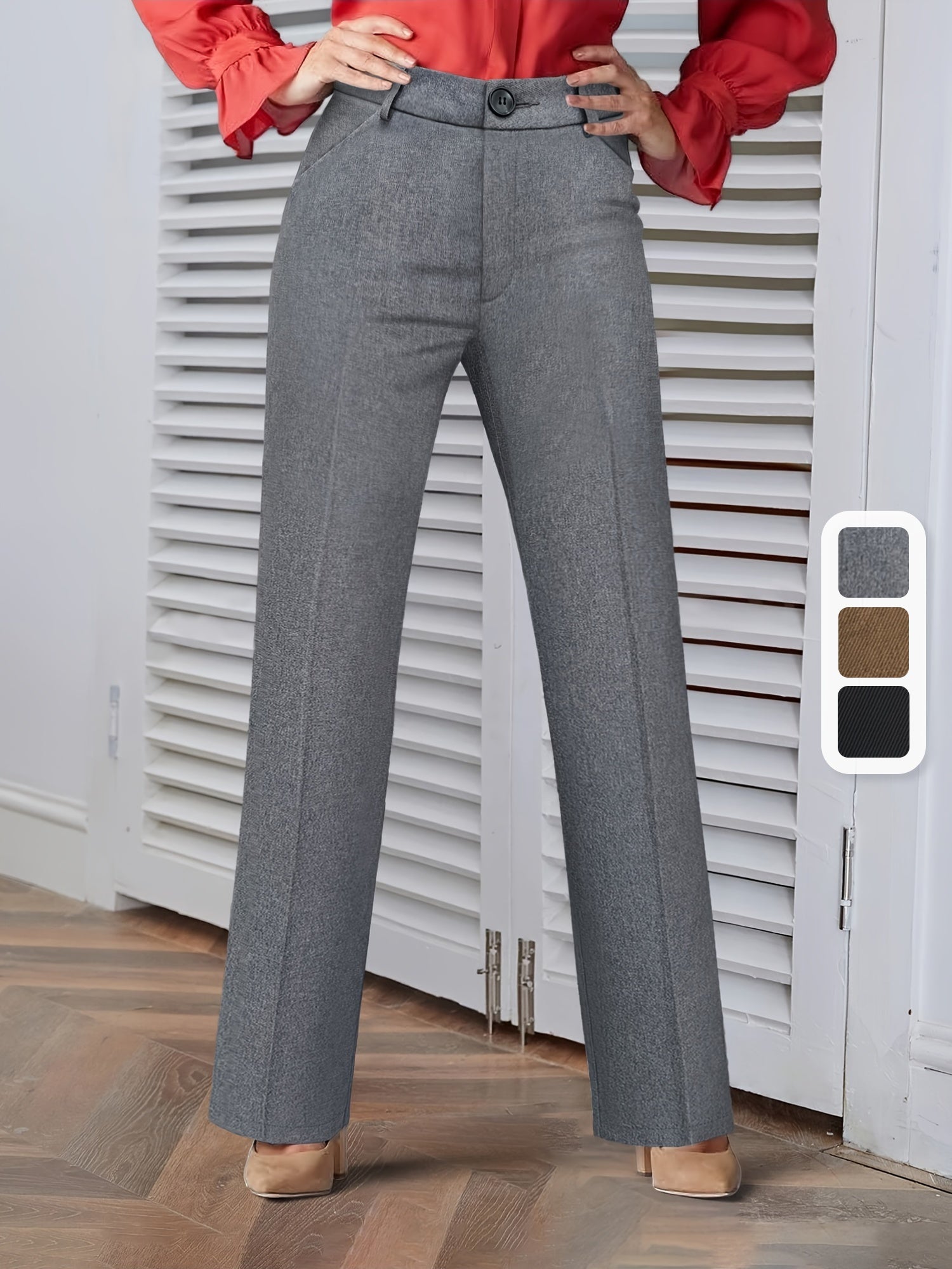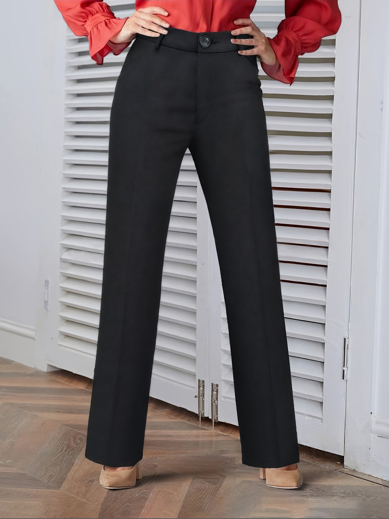 Կանացի էլեգանտ սև ուղիղ տաբատ՝ բարձր գոտկատեղով, պոլիեսթեր խառնուրդով, կոճակներով, լվացվում է մեքենայում՝ իդեալական գրասենյակային և ամենօրյա հագուստի համար, սովորական շքեղ տաբատ|Էլեգանտ նորաձևություն