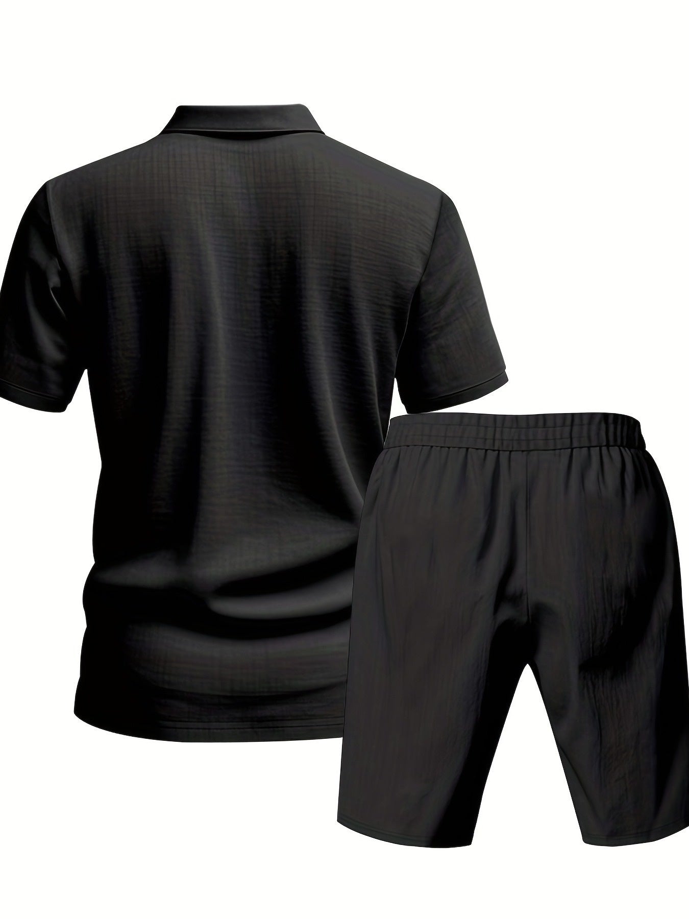 Անհրաժեշտ է զով ամառվա համար։ Տղամարդու կտավատի վերնաշապիկի և շորտերի հավաքածու, հարմարավետ ընտրություն առօրյա զբոսանքի համար - Պարզ լողափնյա արձակուրդի ոճ, միագույն կտավատի կտոր
