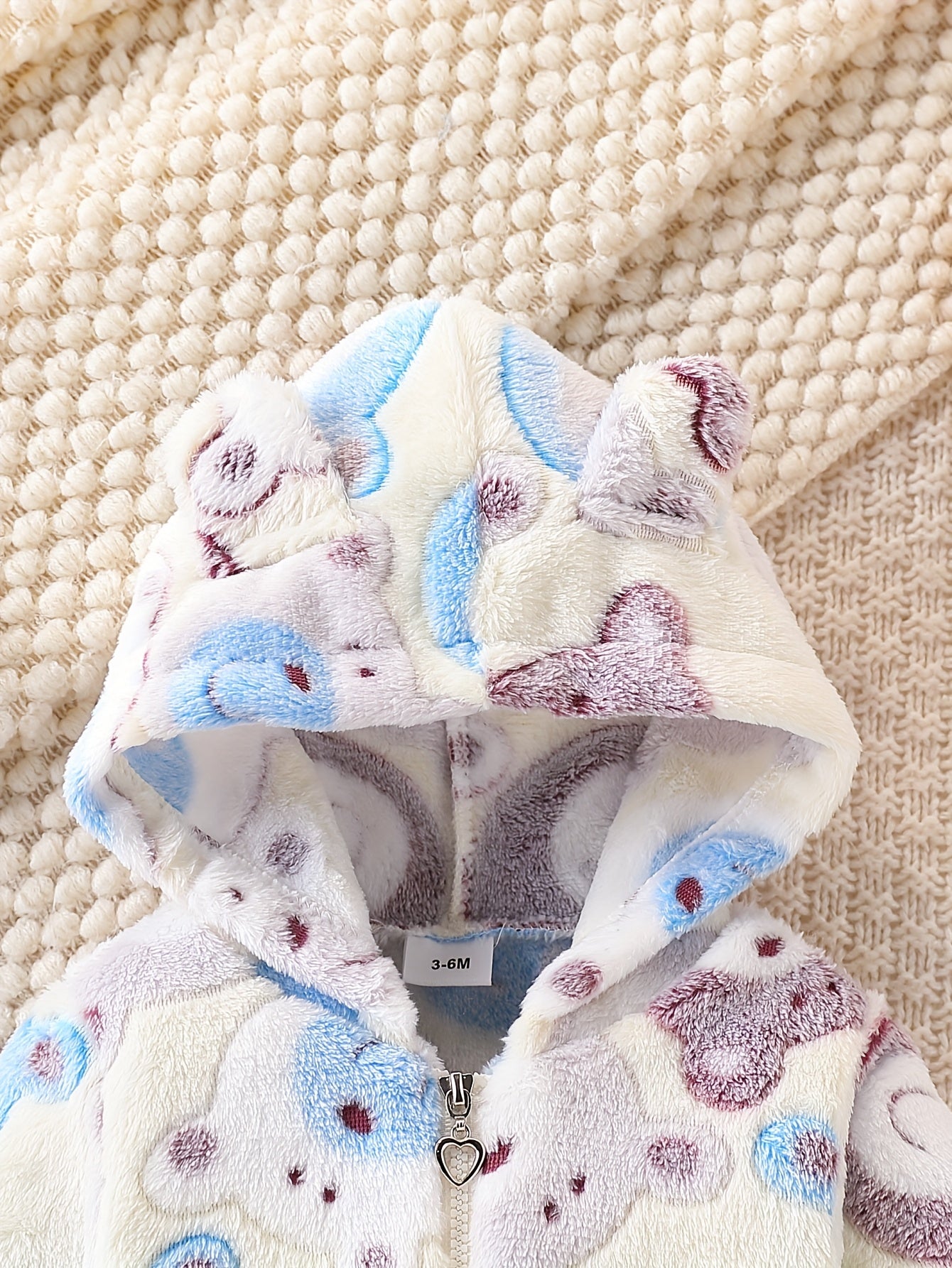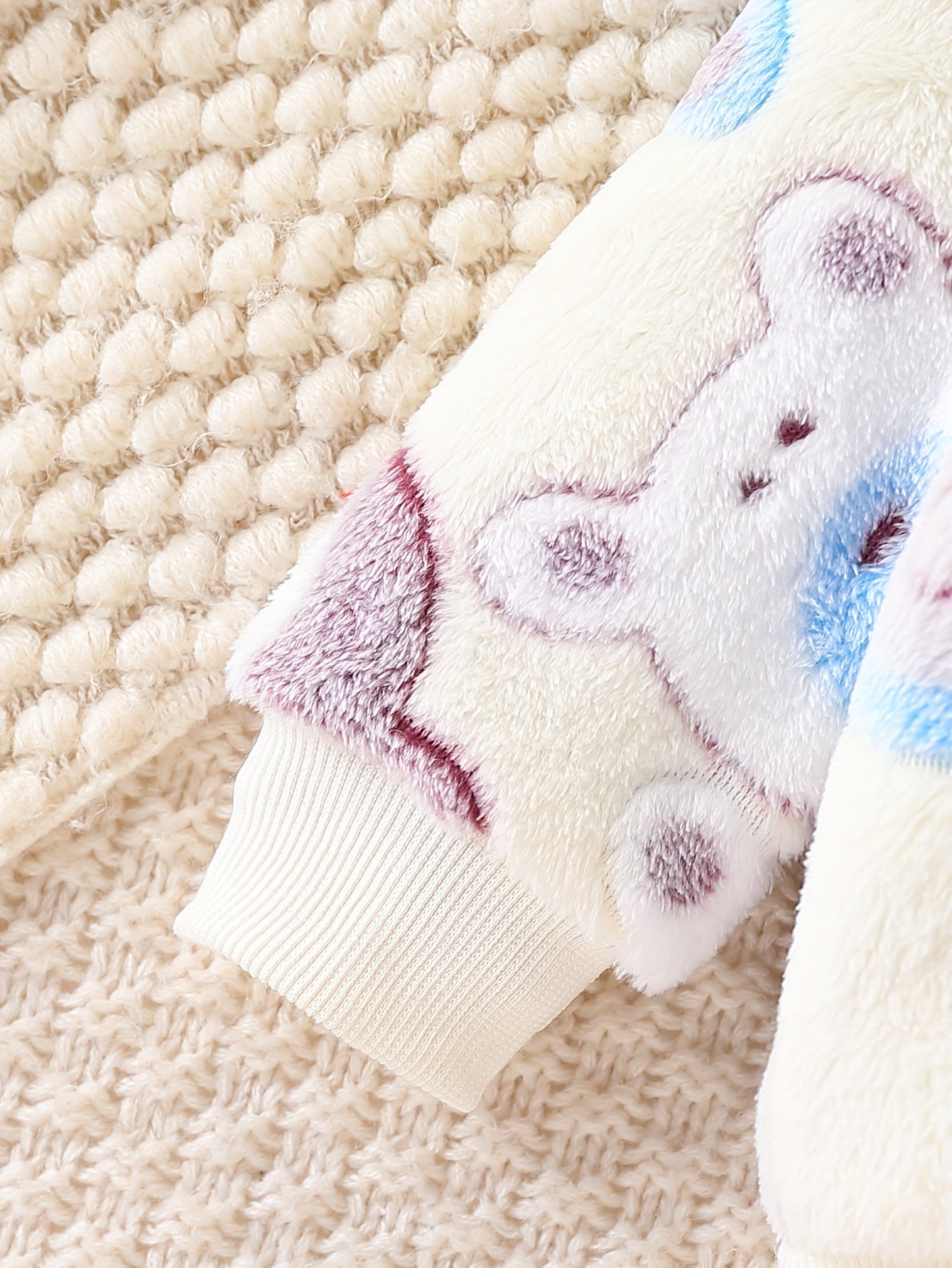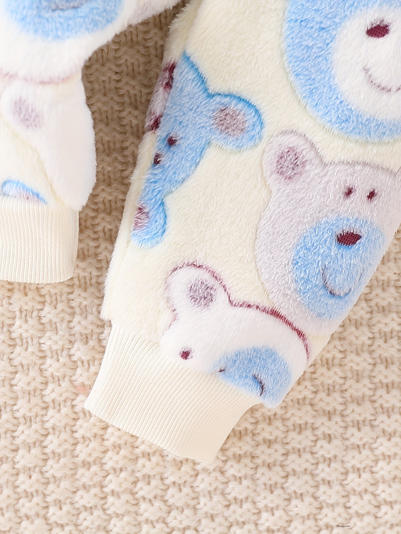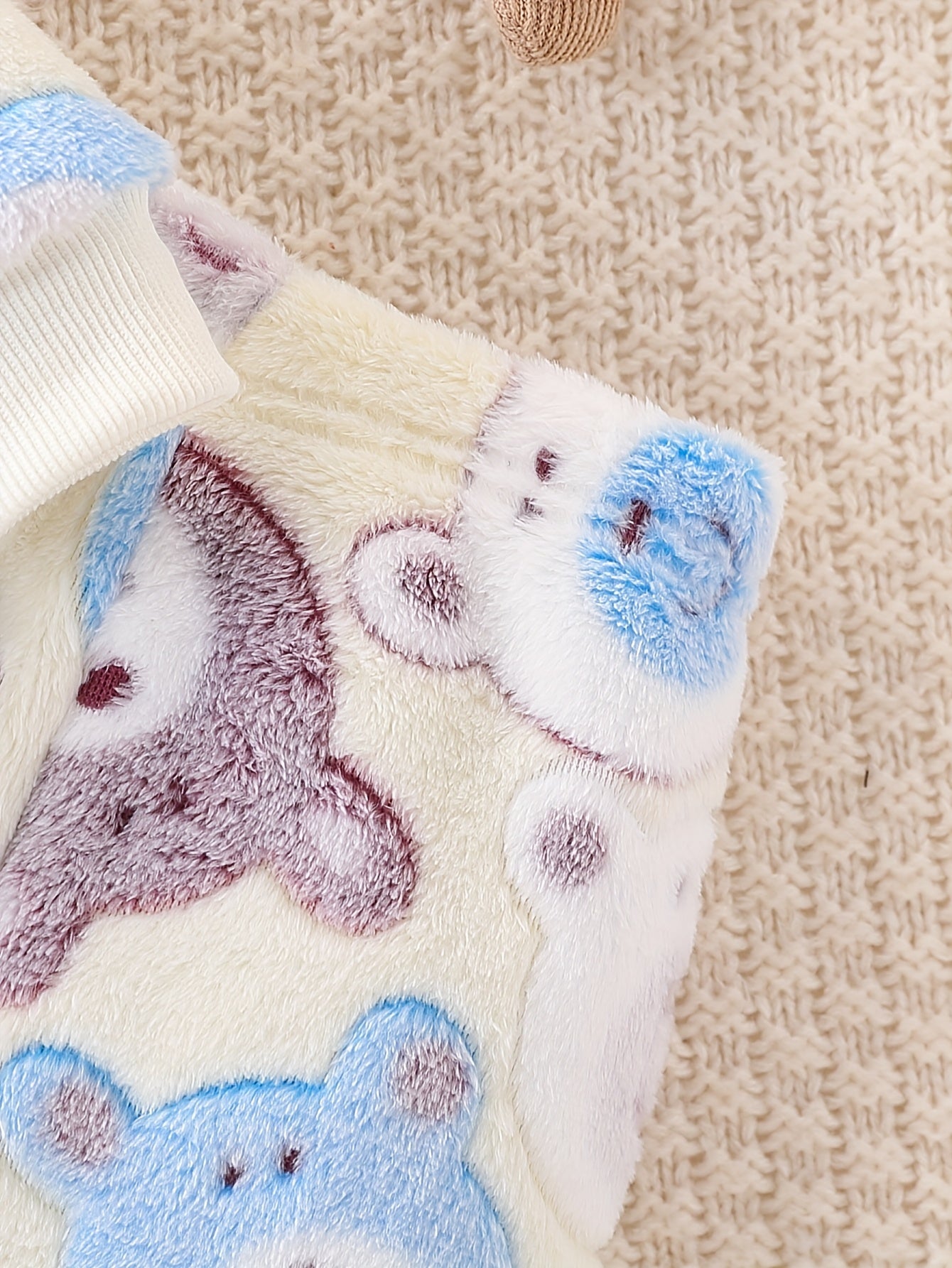 European and American Autumn/Winter Boys' Flannel Fleece-Lined Cute Bear Pattern Beige Zip-Up Hoodie + Fleece-Lined Casual Pants Two-Piece Set, Perfect for Outdoor Wear, Essential Gift, Perfect for Outdoor, Thick
