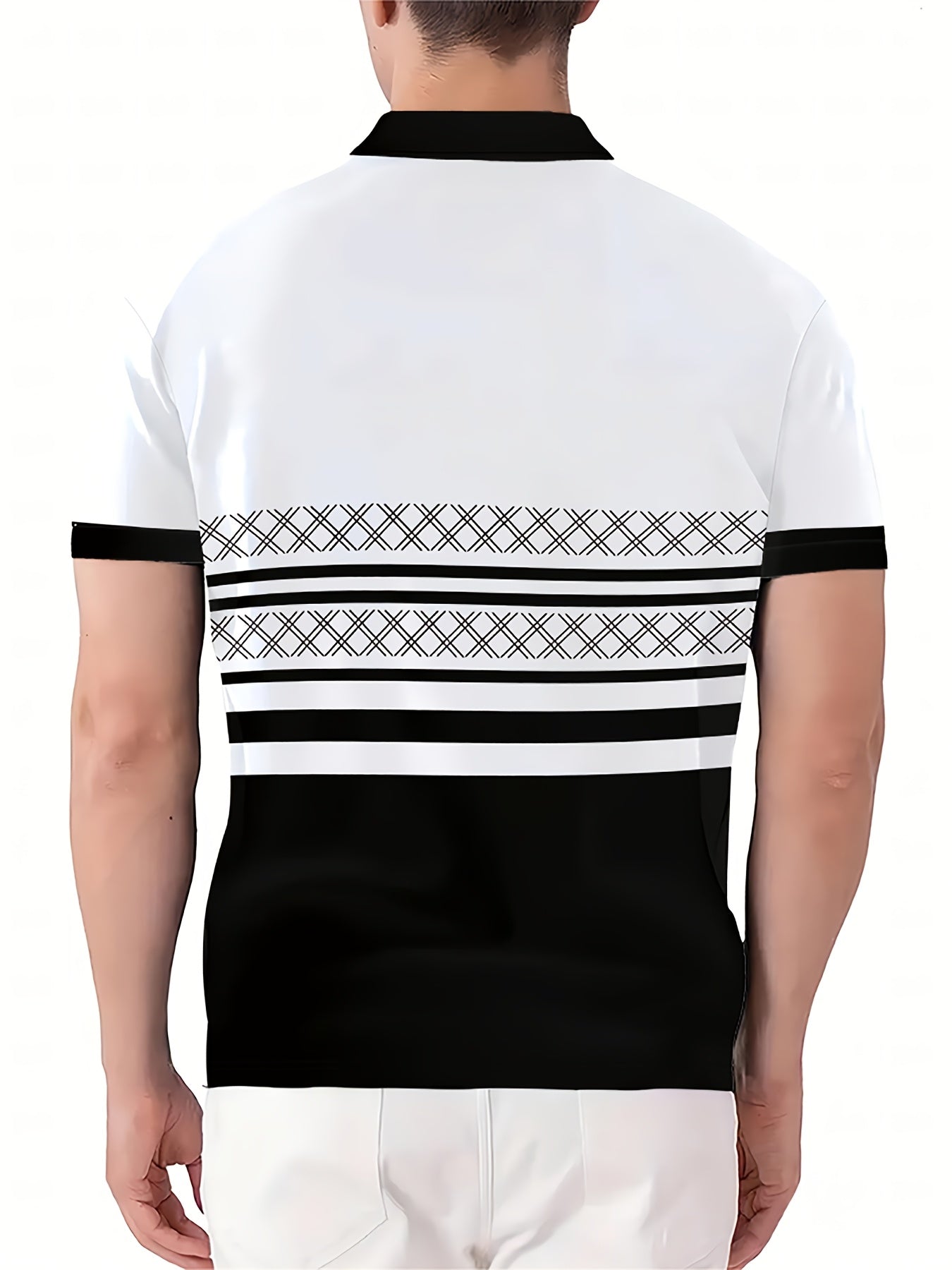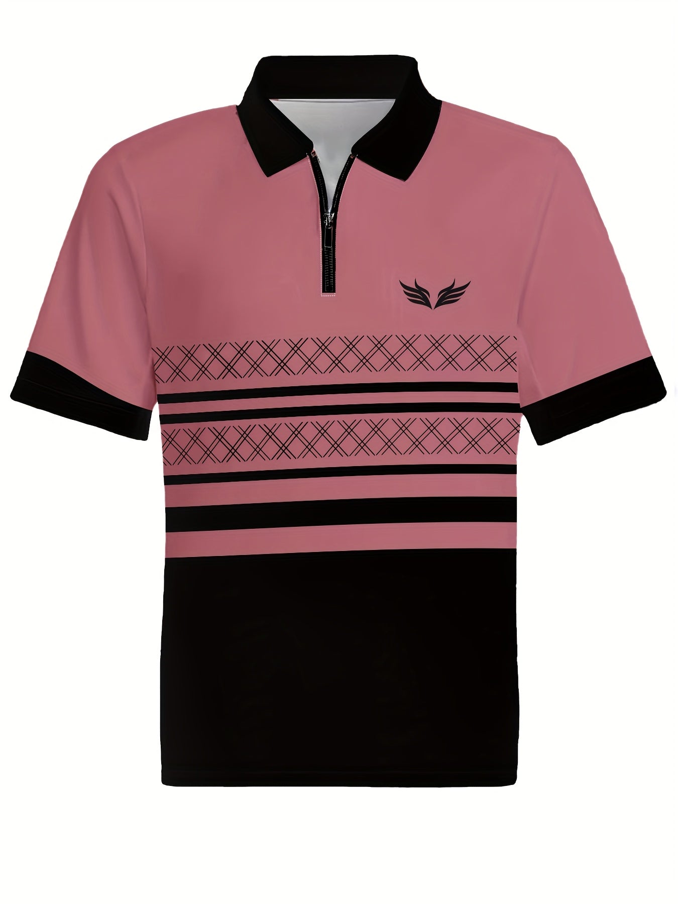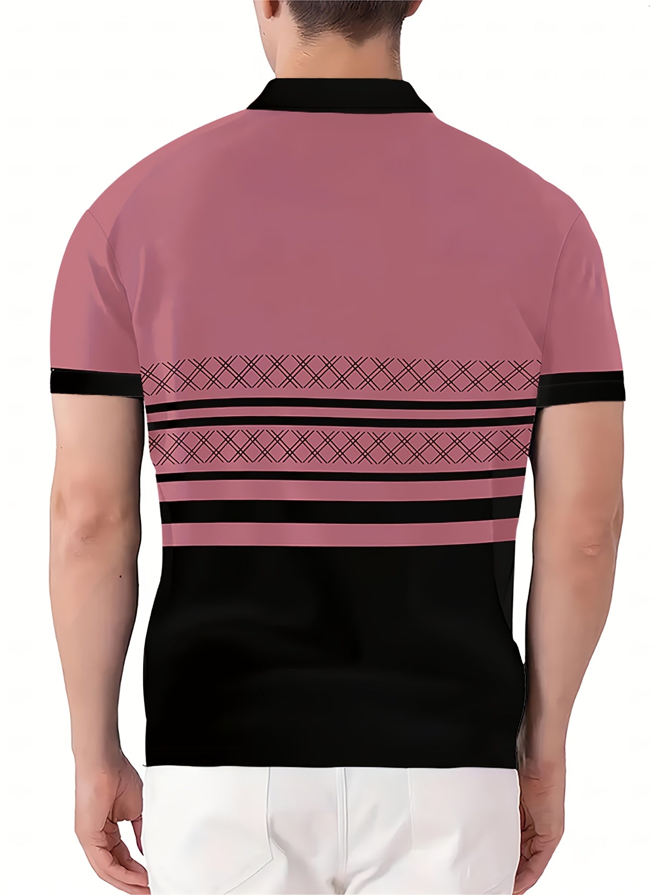 Ամենօրյա հարմարավետություն] Տղամարդկանց նորաձև 3D տպիչով կարճ թևով, սև և սպիտակ օձիքով վերնաշապիկ՝ վարդագույն, սև և սպիտակ գույներով.