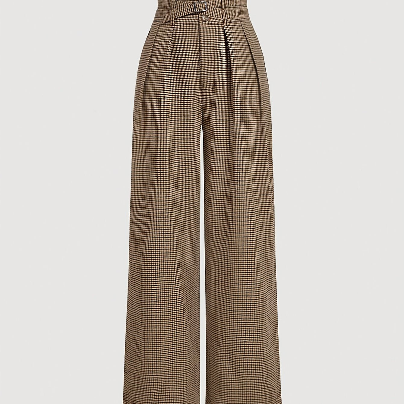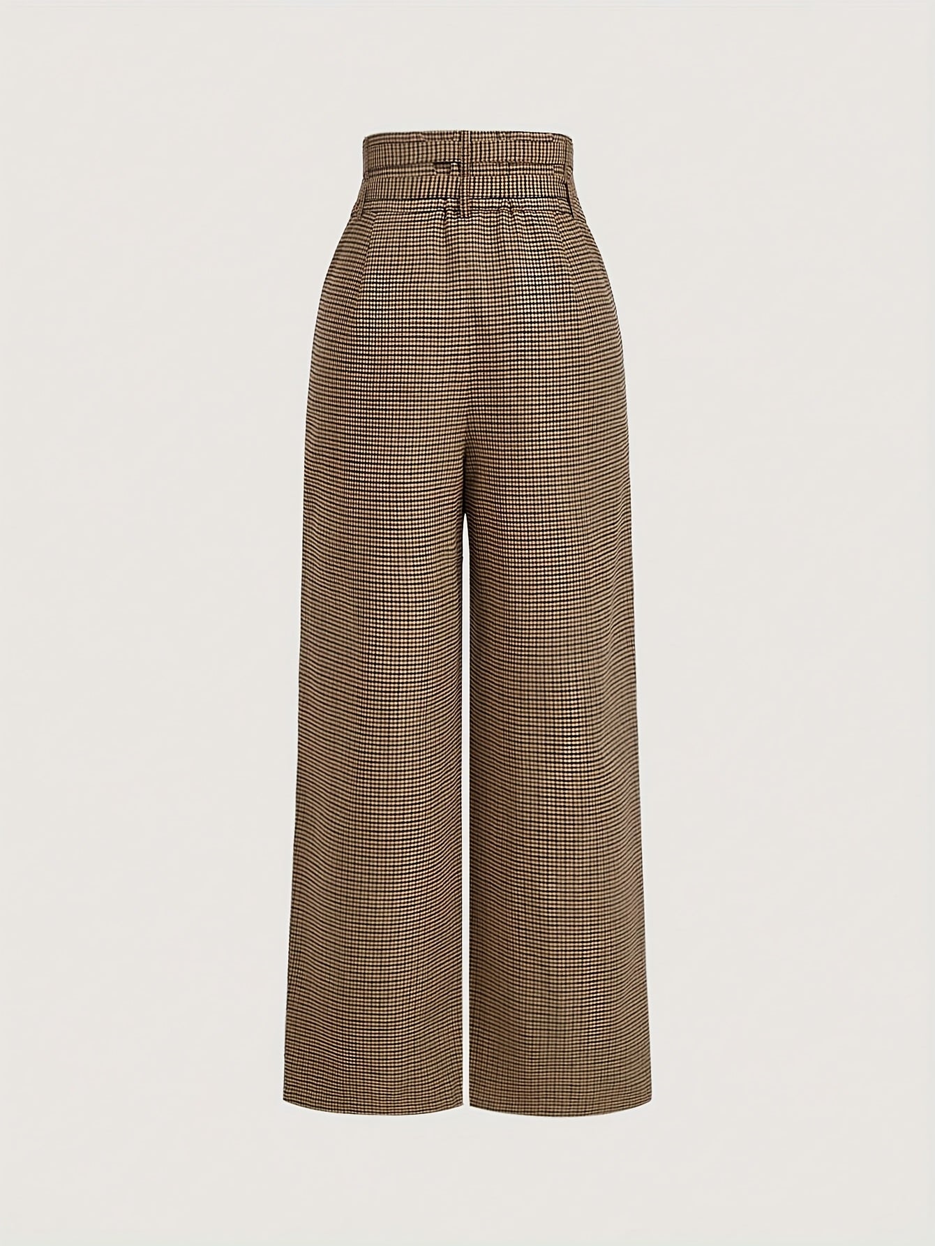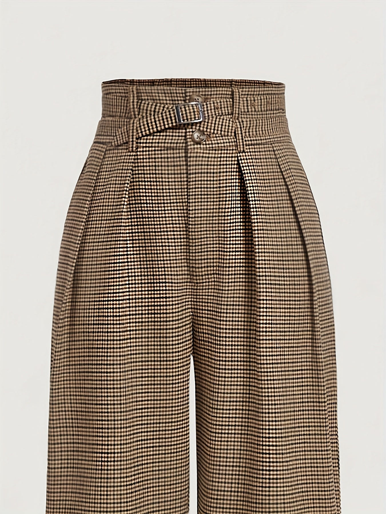 Ամենօրյա հարմարավետություն | Կանացի էլեգանտ վանդակավոր բարձր գոտկատեղով տաբատ՝ կոճակներով և կայծակաճարմանդով փակվող, պոլիեսթեր, լվացվող մեքենայում՝ նորաոճ շագանակագույն վանդակավոր տաբատ