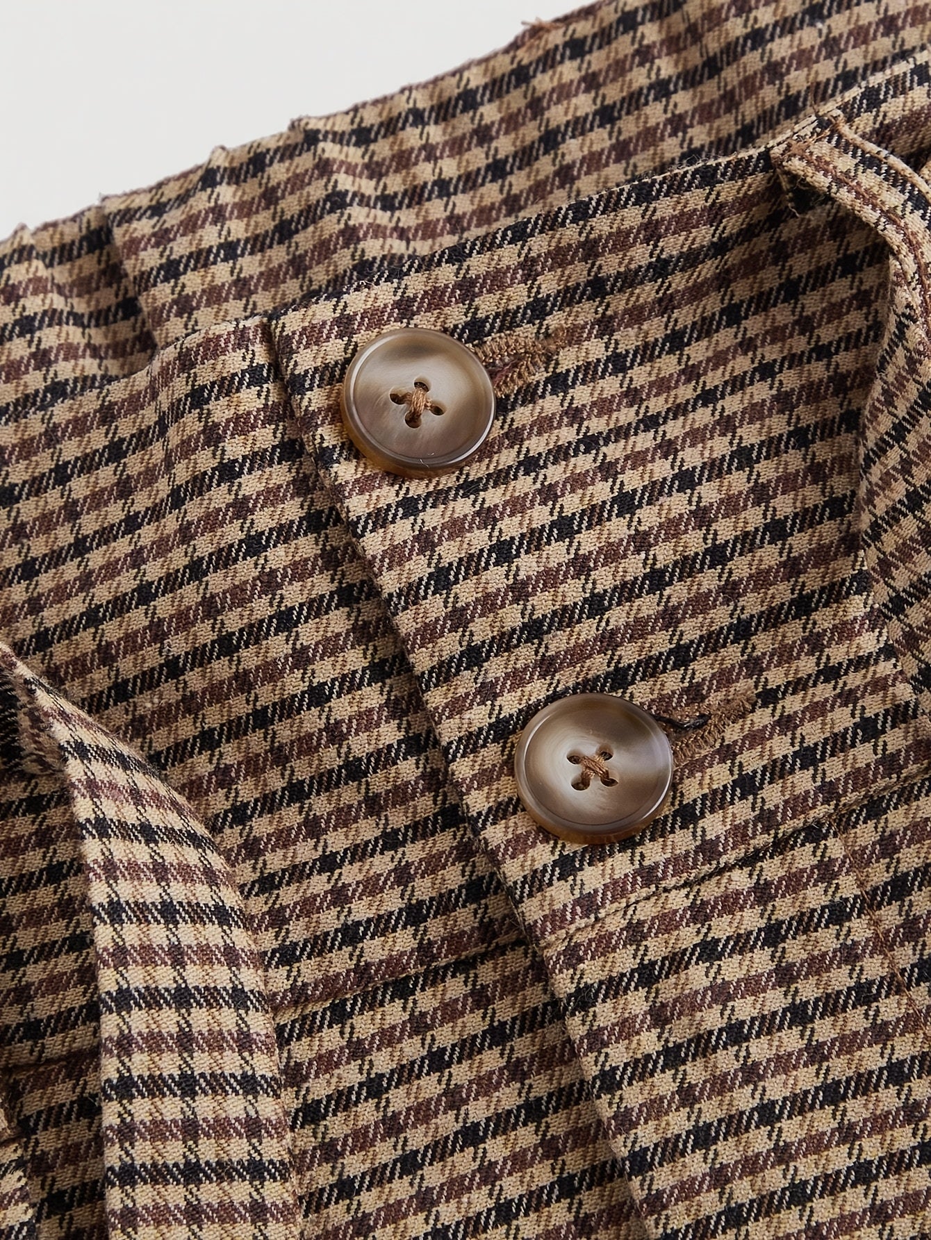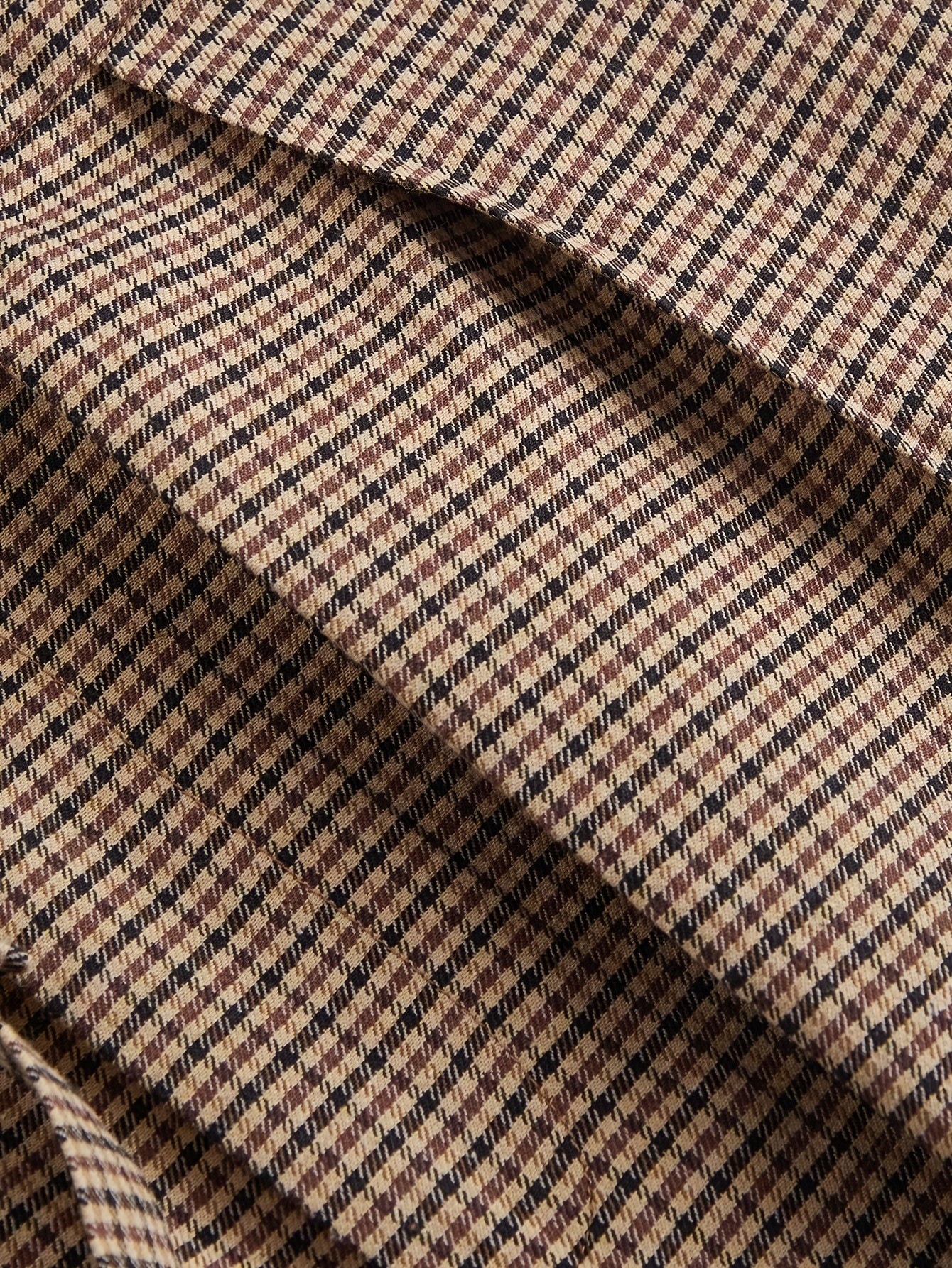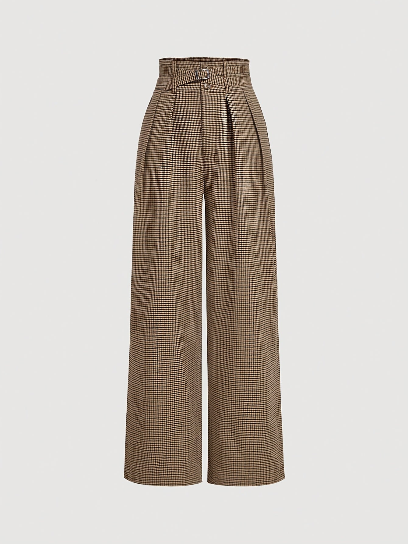 Ամենօրյա հարմարավետություն | Կանացի էլեգանտ վանդակավոր բարձր գոտկատեղով տաբատ՝ կոճակներով և կայծակաճարմանդով փակվող, պոլիեսթեր, լվացվող մեքենայում՝ նորաոճ շագանակագույն վանդակավոր տաբատ