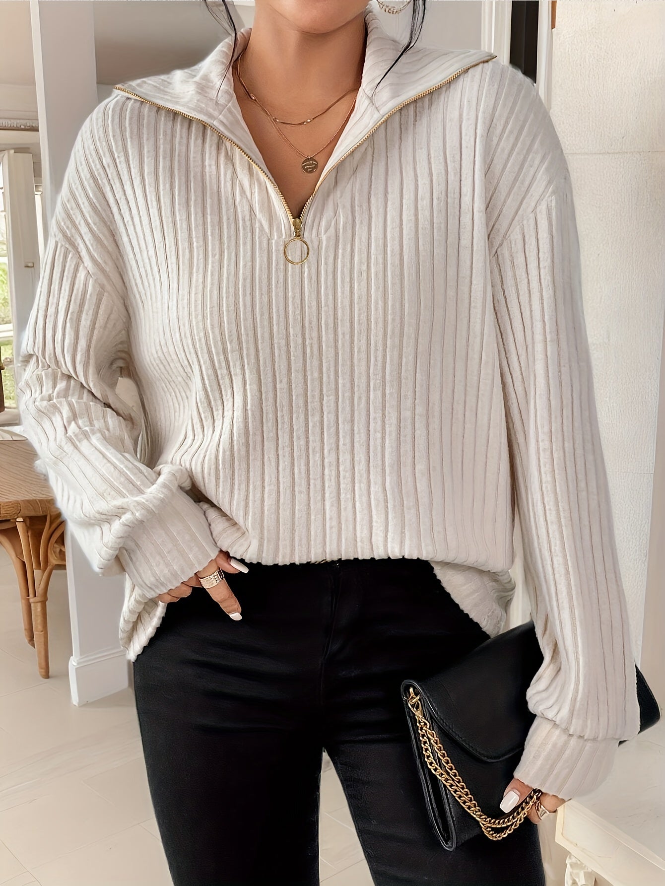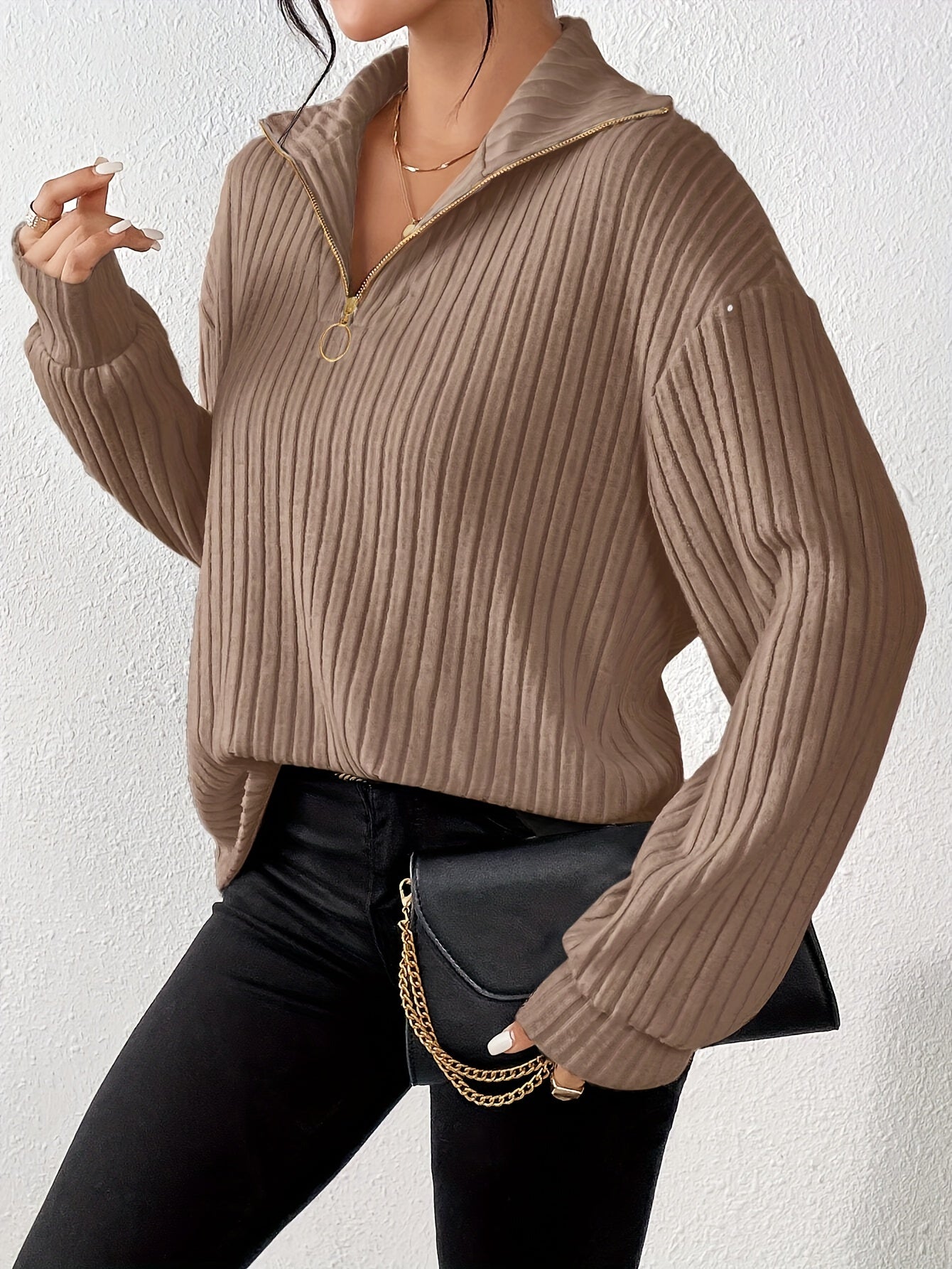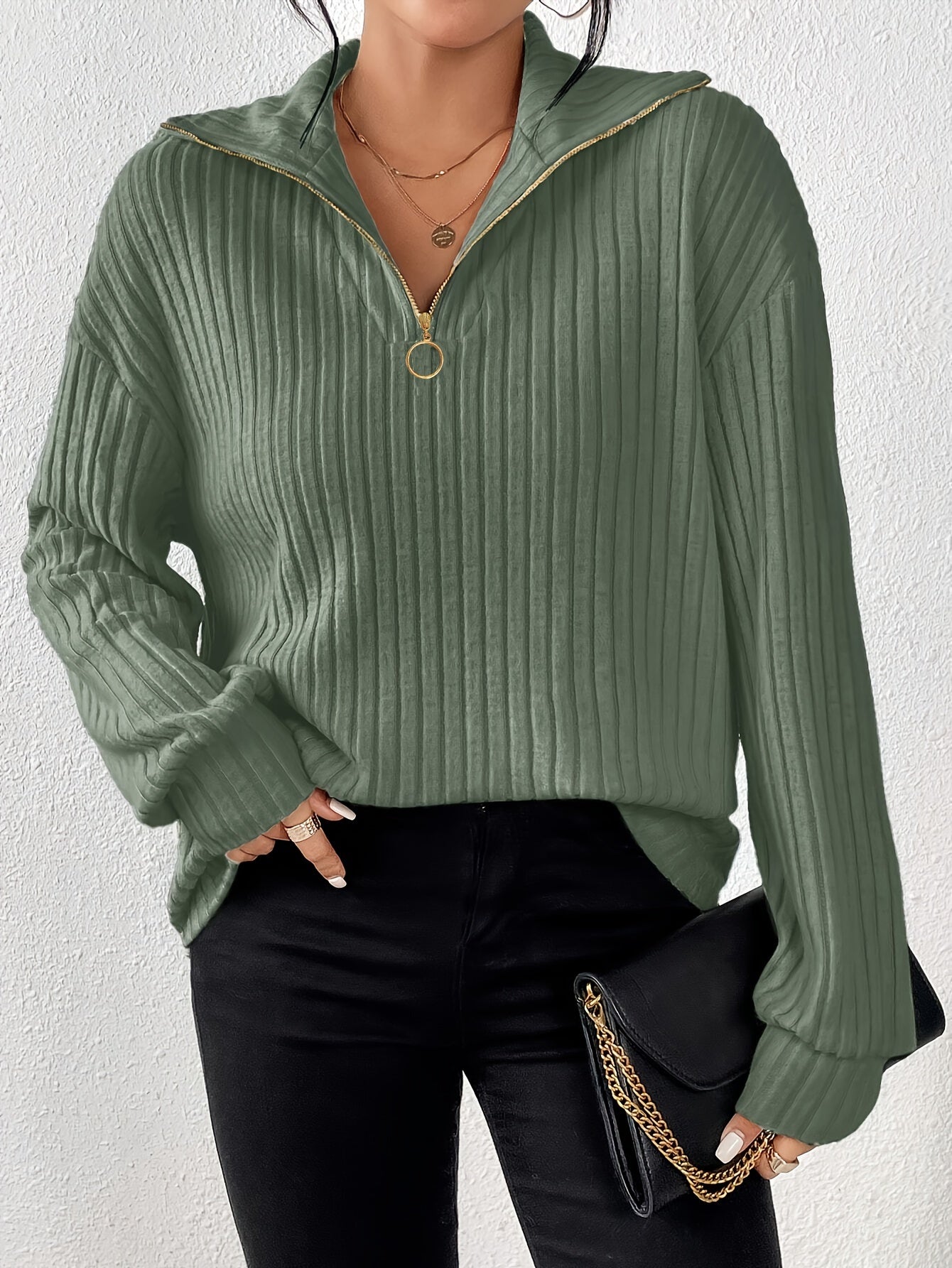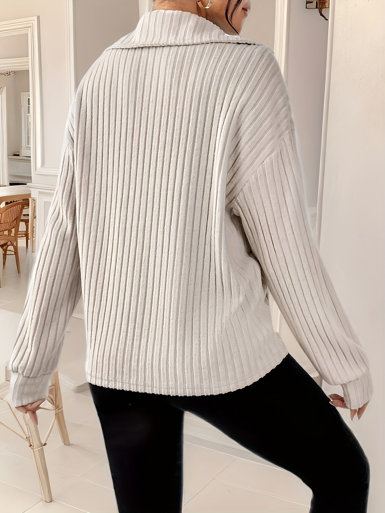 [Everyday Elegance] Կանացի էլեգանտ շերտավոր տրիկոտաժե օձիքով շապիկ - սև, երկարաթև, կայծակաճարմանդ դիզայն, փափուկ պոլիեսթեր խառնուրդ, լվացվող մեքենայով, կատարյալ գարնան և աշնան համար, կանացի վերնաշապիկներ