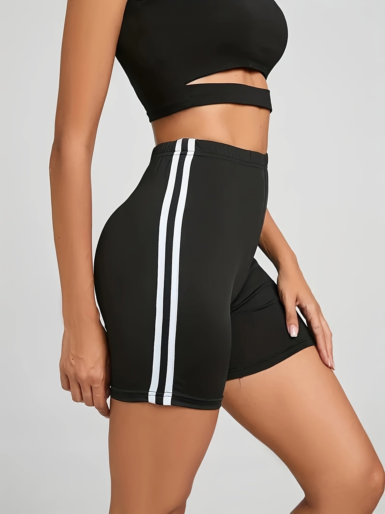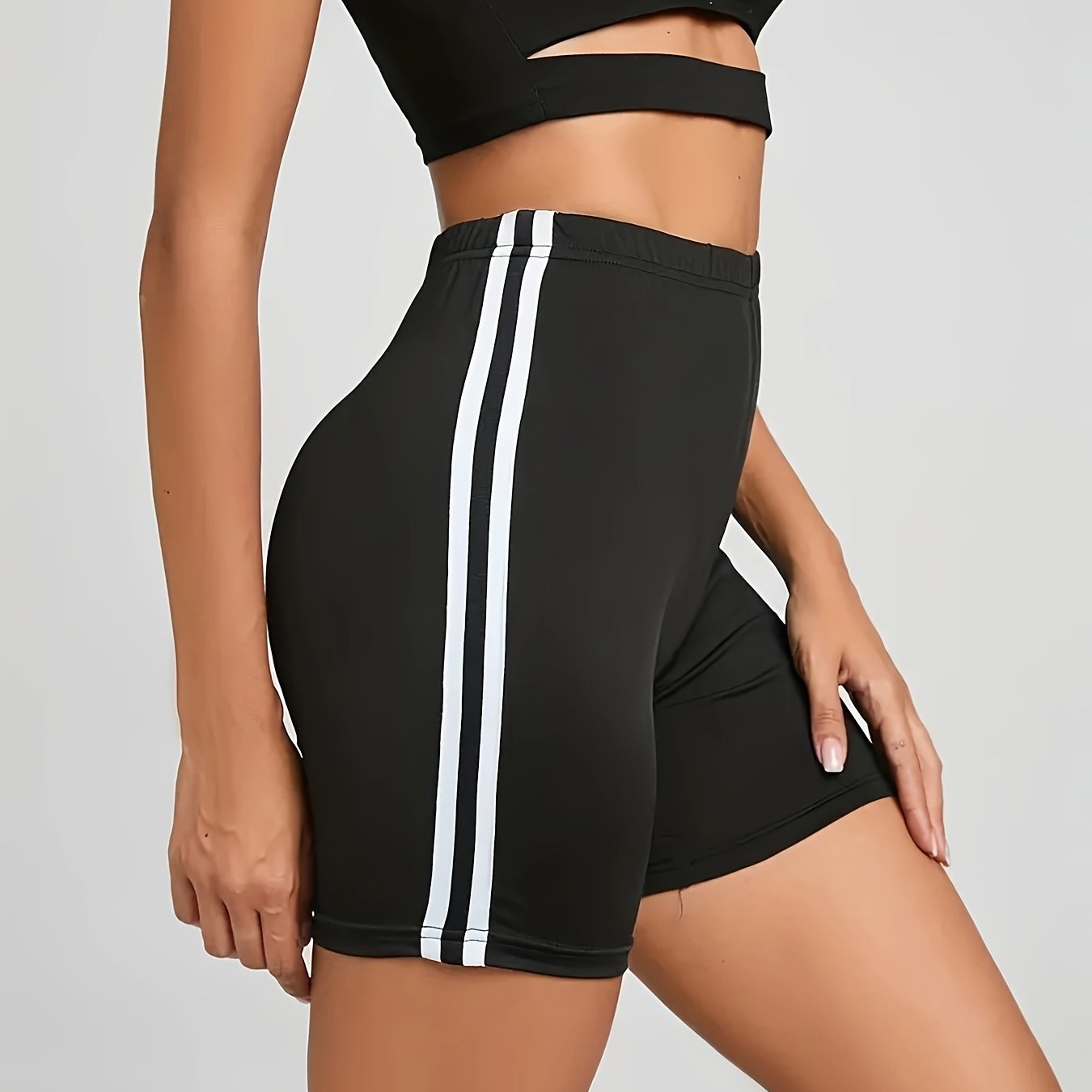 [Ամենօրյա բազմակողմանիություն] Կանացի բարձր գոտկատեղով նիհար շորտեր, ամենօրյա ոճ, միաձույլ գույն՝ սպիտակ գծավոր դետալներով, պոլիեսթեր 95% էլաստան 5%, միջին ձգվող գործվածք, ամբողջ սեզոնային գործվածք, բազմակողմանի հագուստ | Բարձր գոտկատեղով շորտեր | Սպ