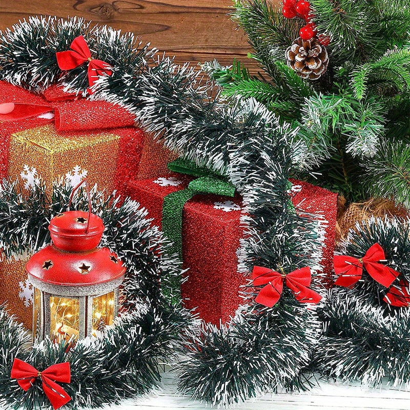Extra Long 78.74in/200cm Garland - Heavy-Duty PET (Polyethylene Terephthalate) Christmas Garland with Elegant Deep Green, Red Bows & Black Beads - Indoor/Outdoor Hanging Decoration for Stairs, Banisters, Doors, Walls - Weddin