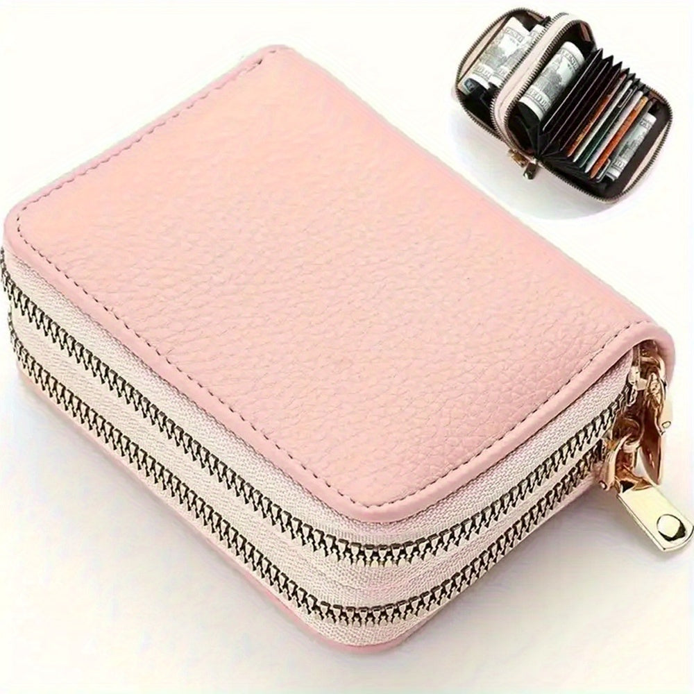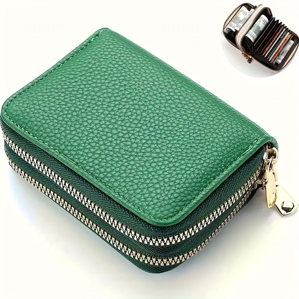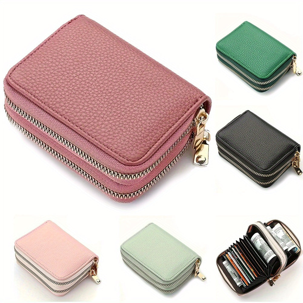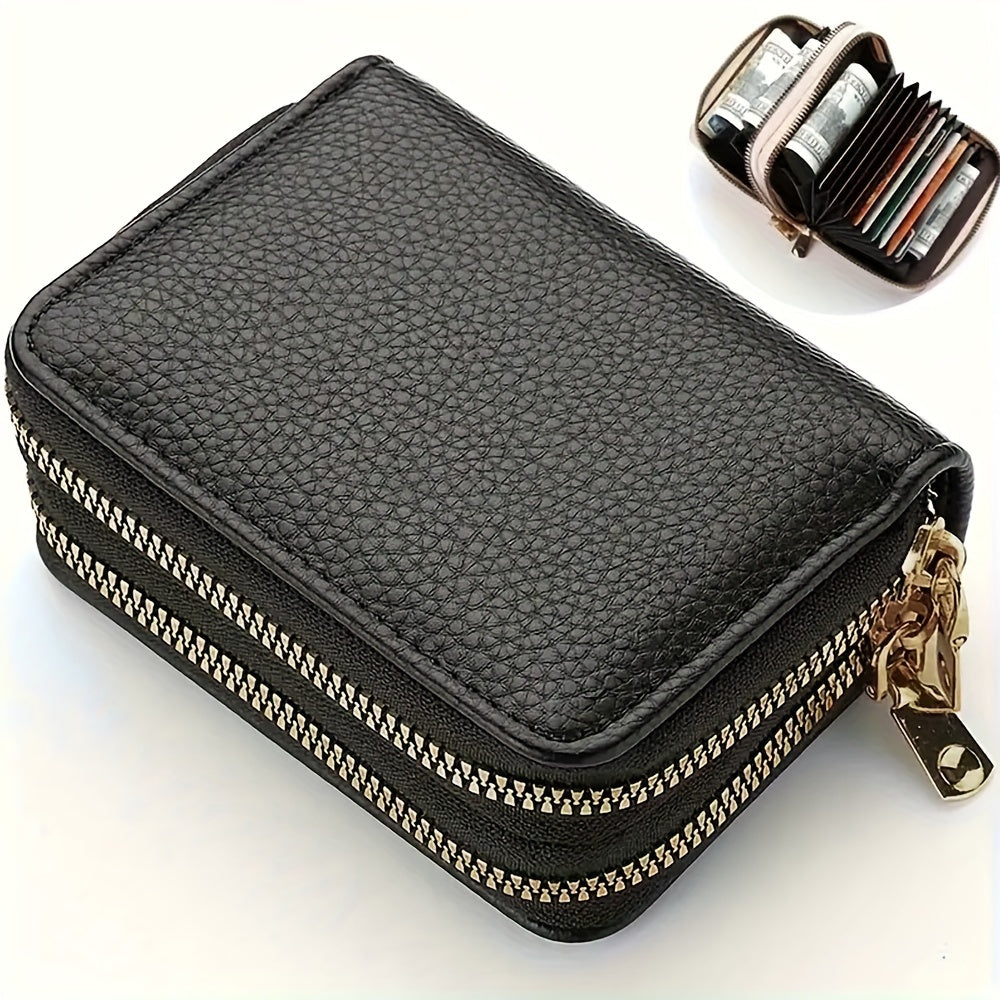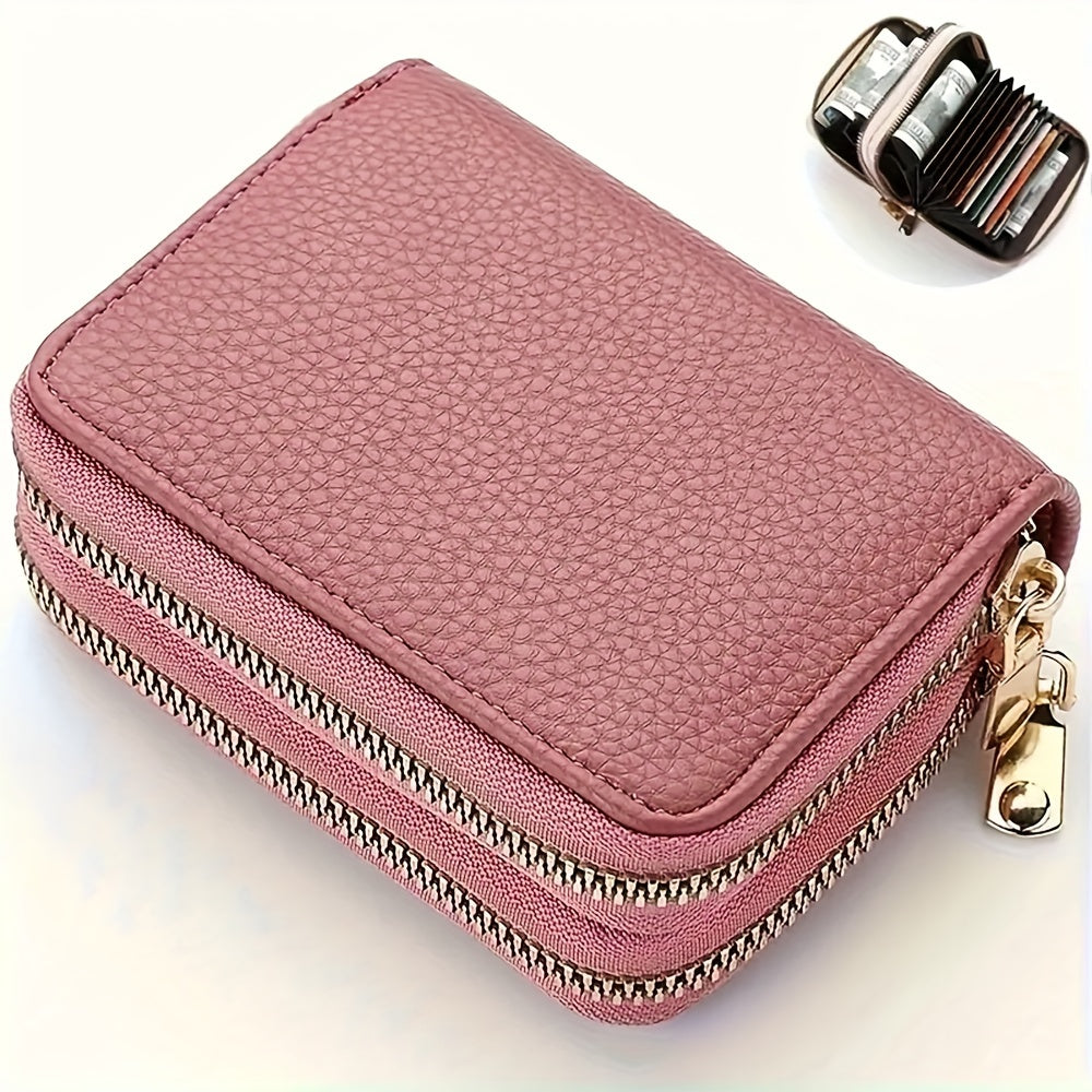 Նորաձև կրկնակի կայծակաճարմանդ դրամապանակ, Litchi Pattern երկշերտ վարկային քարտի փաստաթղթերի պայուսակ, բազմագույն բազմագույն մետաղադրամների դրամապանակ
