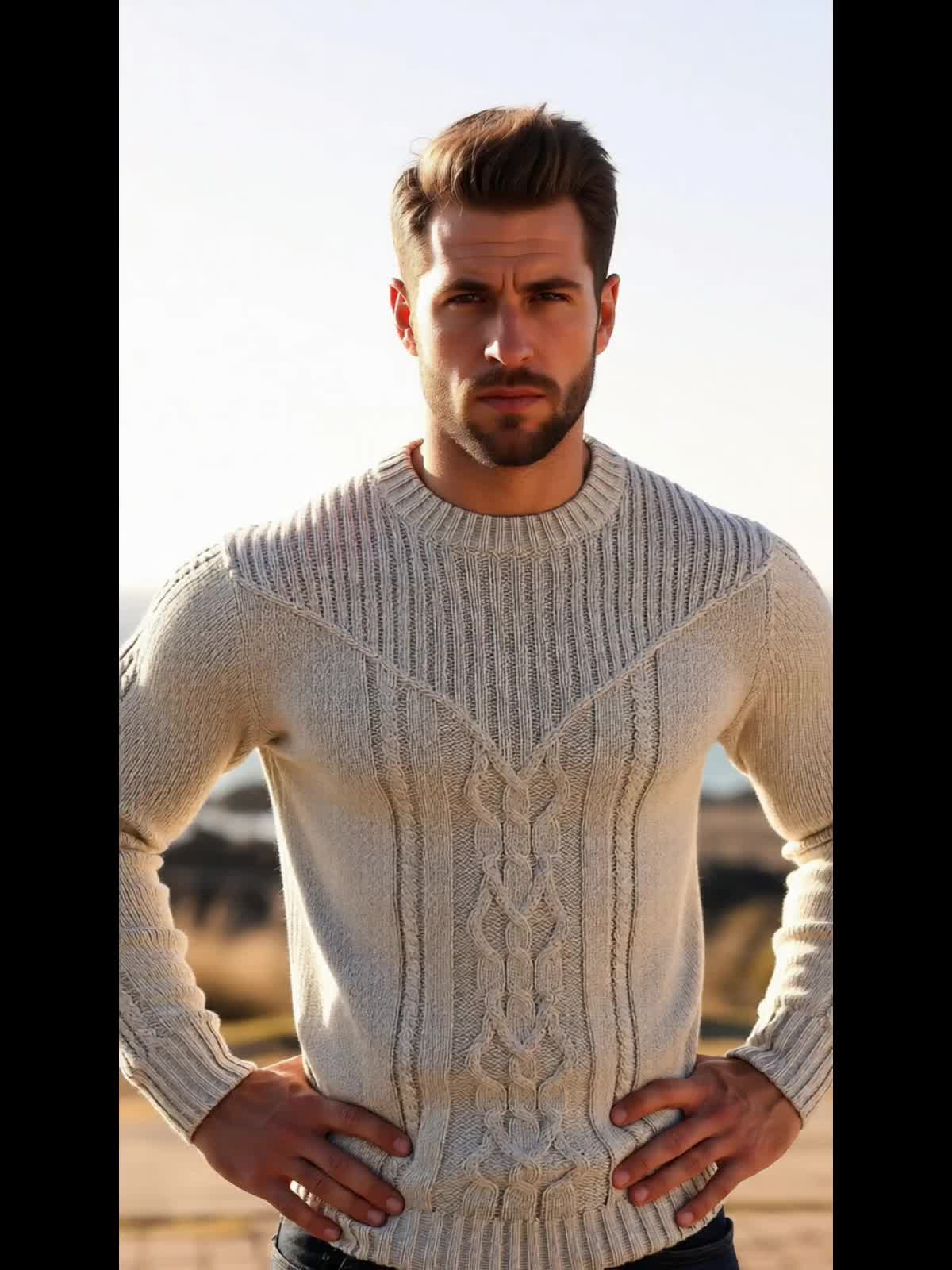 Նորաձև տրիկոտաժե կլոր վզնոցով սվիտեր-պուլովեր - փափուկ, շնչող, միջին ձգվողությամբ, երկար թևքերով, առօրյա վերնաշապիկ՝ քաղաքային զբոսանքների, փողոցների, զբոսանքների, բացօթյա գործունեության համար - իդեալական է աշնան և ձմռան համար