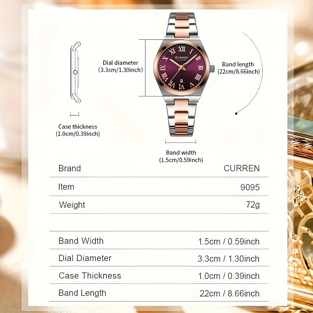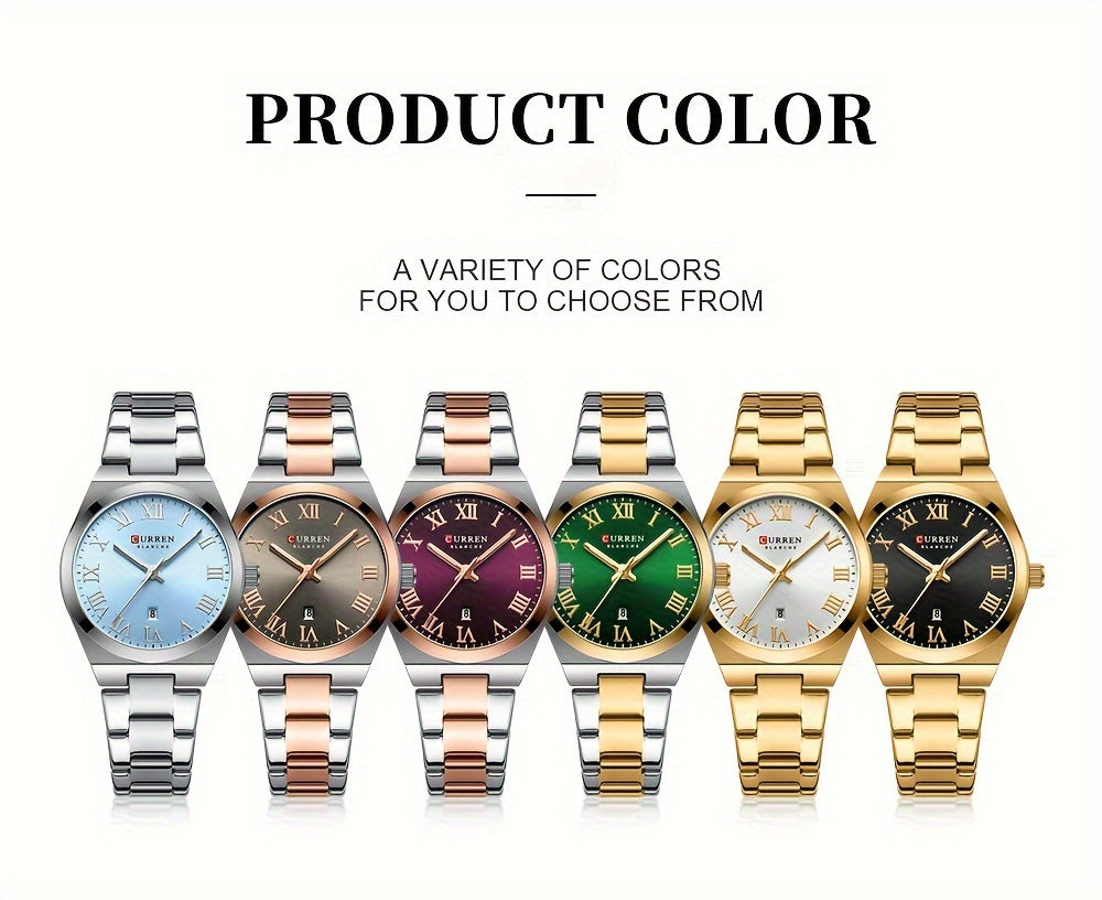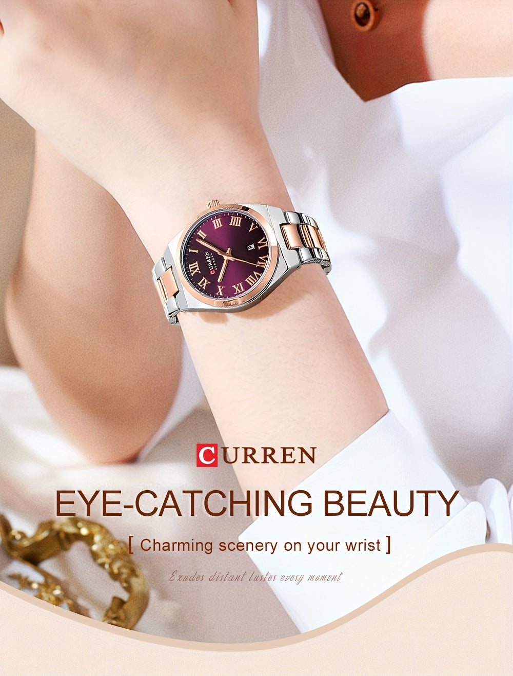 CURREN նորաձև կանացի ժամացույցներ՝ ամենօրյա և պարզ չժանգոտվող պողպատե ժապավենով, օրացույցով և քվարցե մեխանիզմով:
