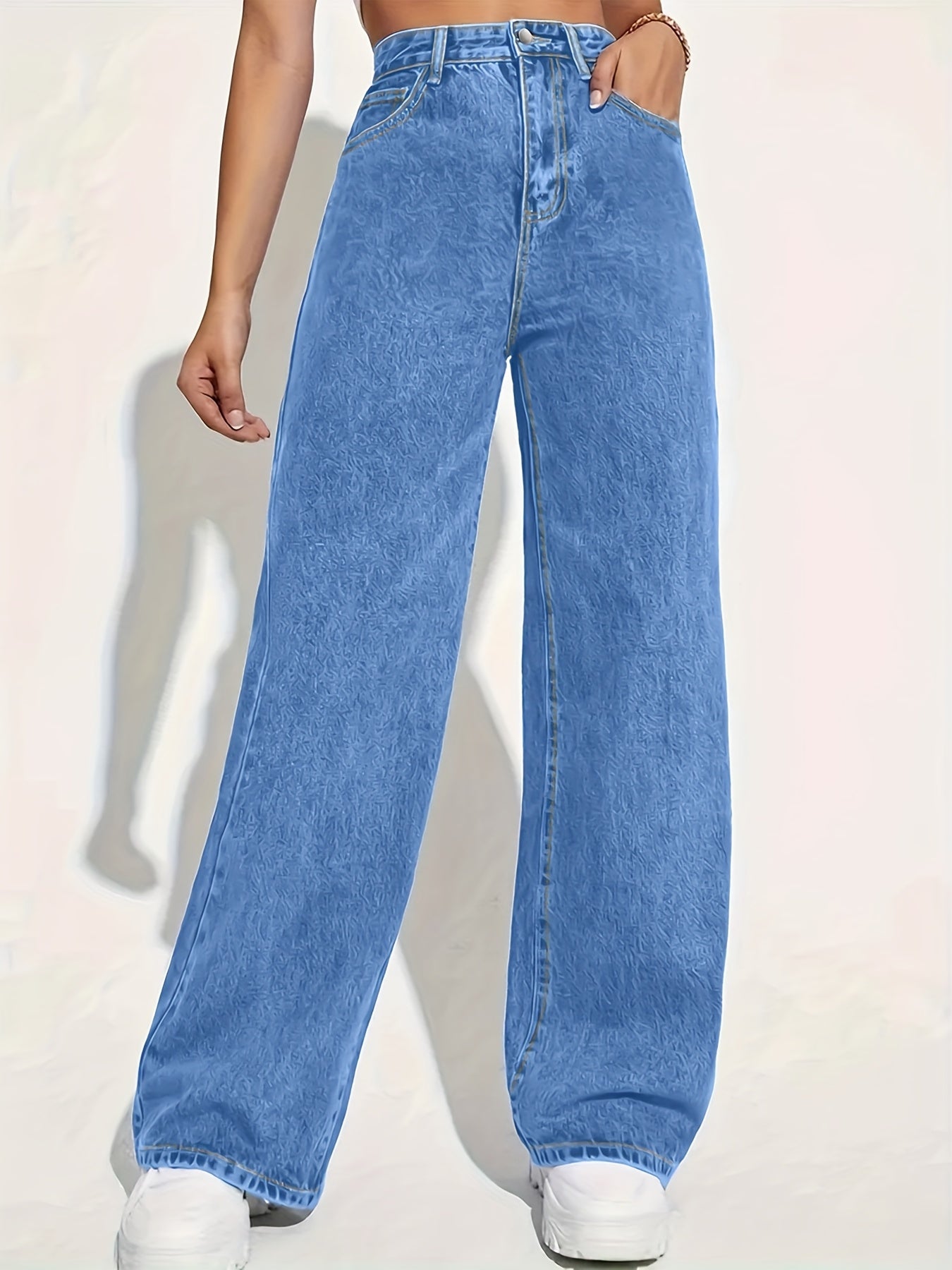 Նորաձև կանացի պատահական ջինսեր Բազմակողմանի ազատ ուղիղ երկար շալվար