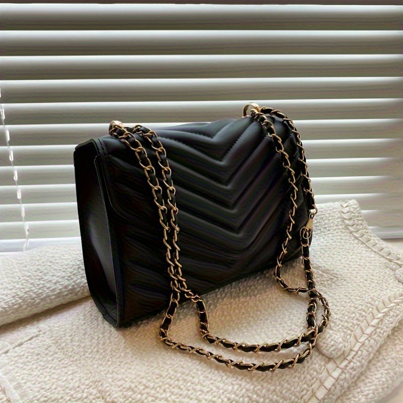 Նորաձև կանացի V-աձև կարված դիզայնով, հեշտ և թեթև միագույն փեղկով և շղթայական ուսակապի ժապավենով, հարմար է գրասենյակի, աշխատանքի, զբոսանքների համար և ոճային, որակյալ ձեռքի պայուսակ է։