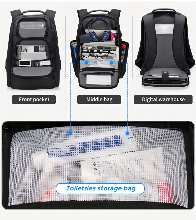 FENRUIEN Men'S Large Capacity Expandable Backpack with USB Charging, 39.62cm Laptop Bag, Durable Oxford Fabric, Multiple Compartments for Travel and Business Use, Travel Backpack Minimalist Backpack Durable Zippers, Lapto