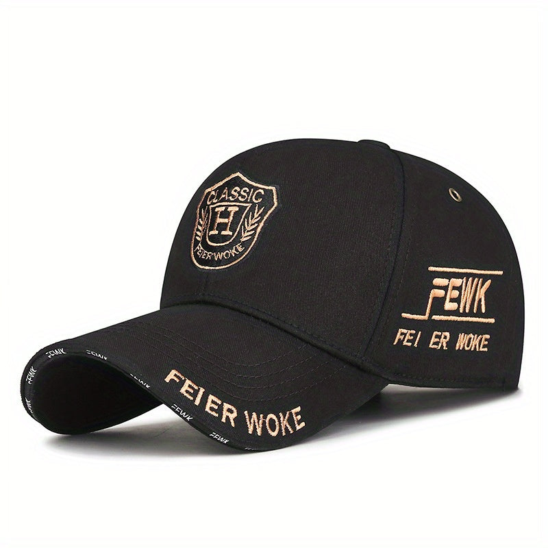 FEWK Ունիսեքս բեյսբոլի գլխարկ | Շնչող պոլիեսթեր | Կարգավորվող չափս | Ասեղնագործված լոգոտիպ և ոսկեգույն նշան | Գարուն/աշուն նորաձև փողոցային հագուստ, բացօթյա գլխարկներ | Ոսկեգույն նշանի դիզայն | Երկարակյաց գլխարկ