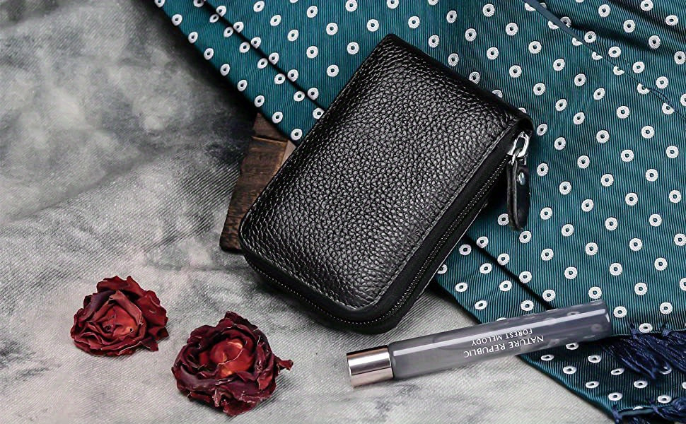 FOREVER YOUNG Տղամարդկանց խնամված սև բնական կաշվով դրամապանակ՝ կայծակաճարմանդով - RFID արգելափակում, կրեդիտ քարտի 12 անցք և կանխիկի խցիկ