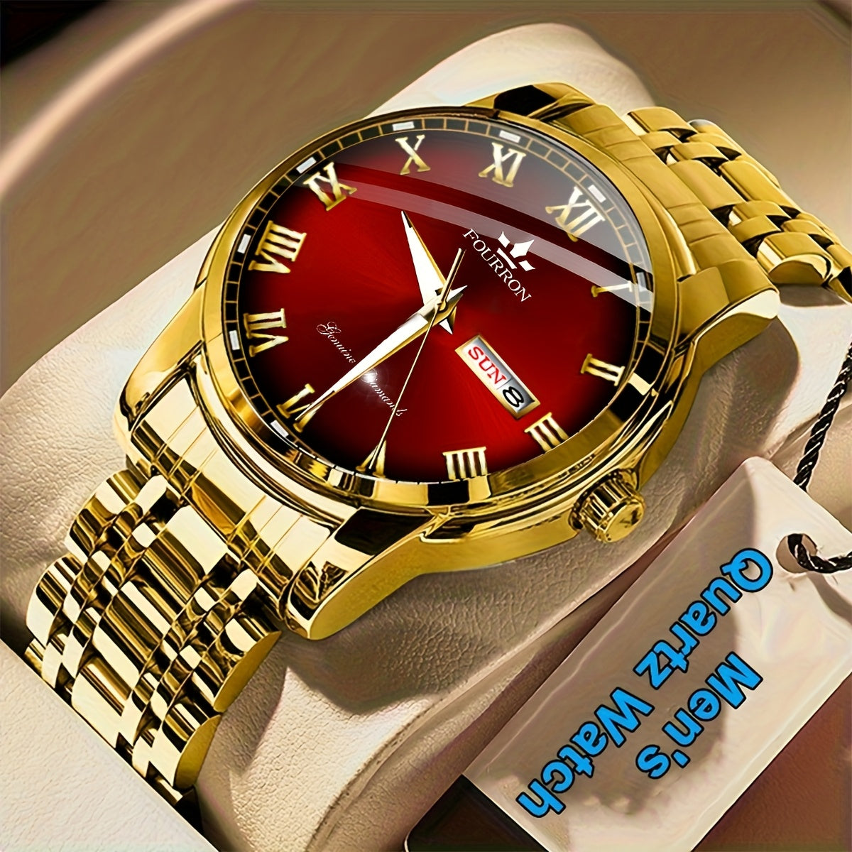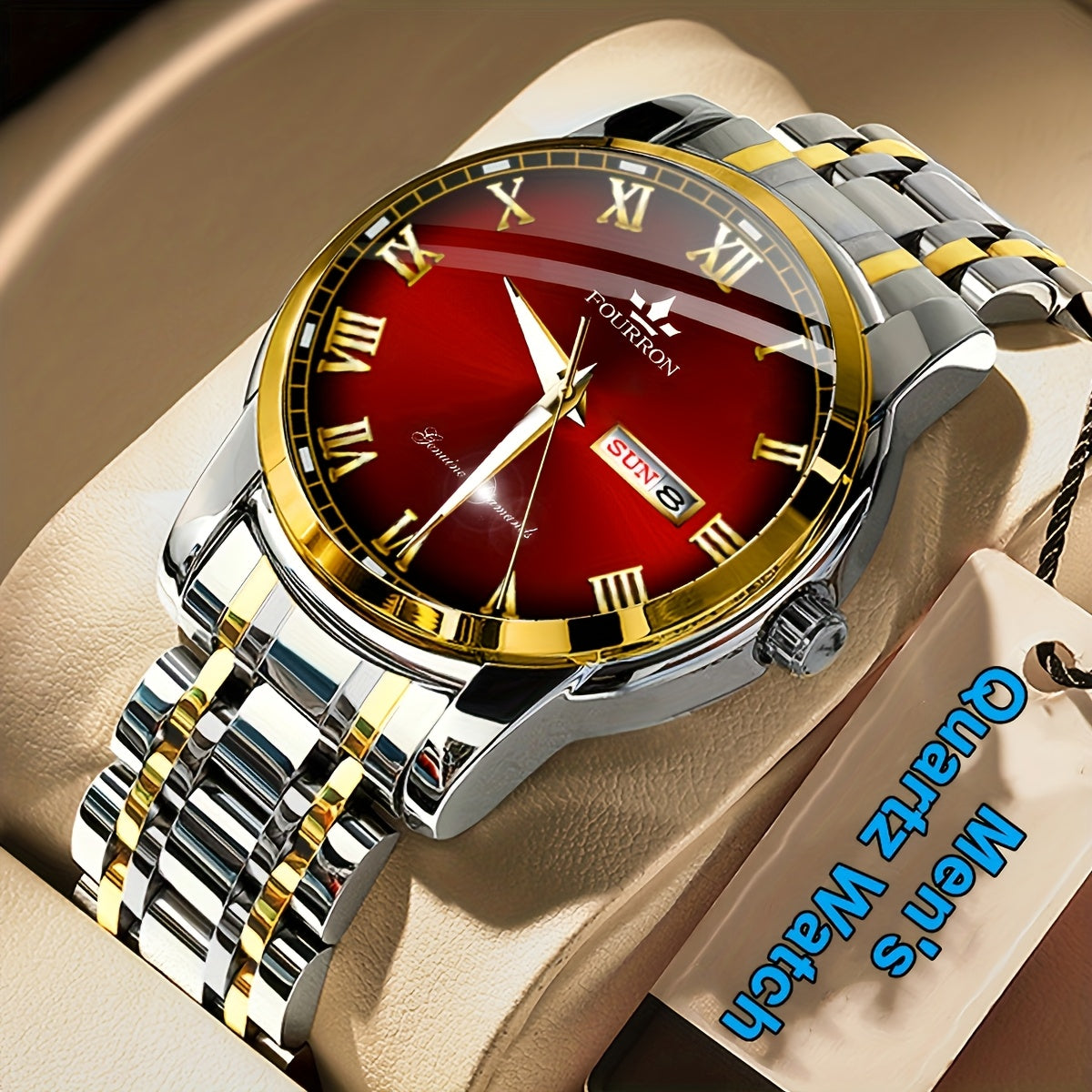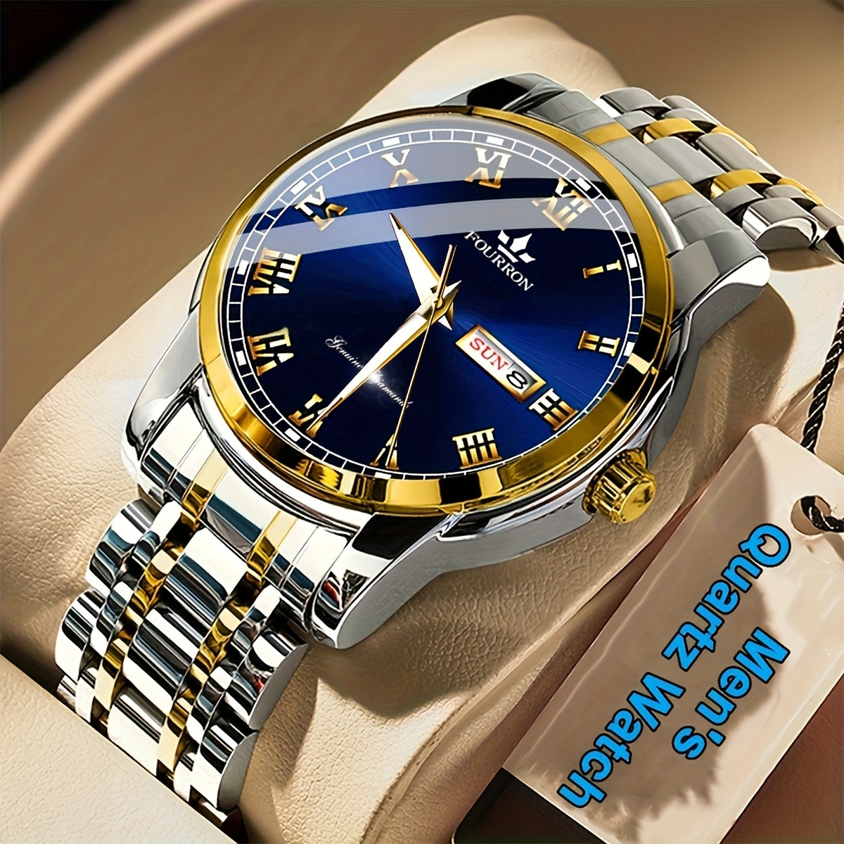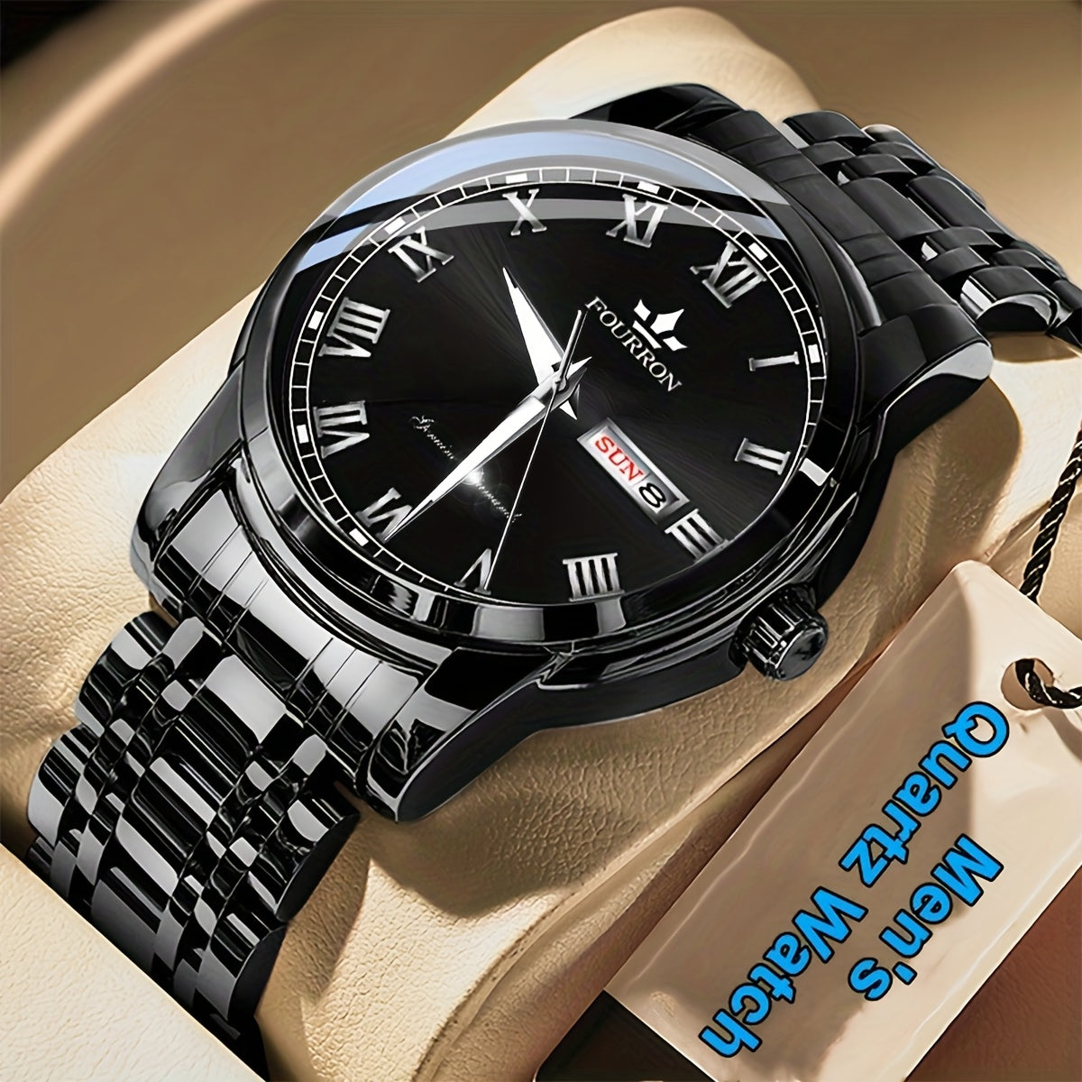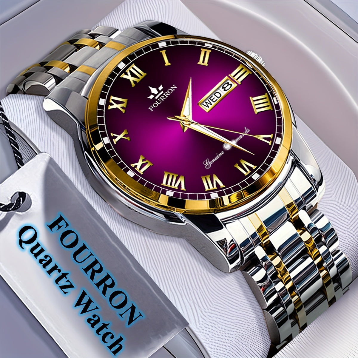 FOURRON տղամարդու քվարցային ժամացույց՝ չժանգոտվող պողպատե ժապավենով, հռոմեական թվերով, լուսարձակող, ջրակայուն, իդեալական է ծննդյան և տոնական նվերների համար