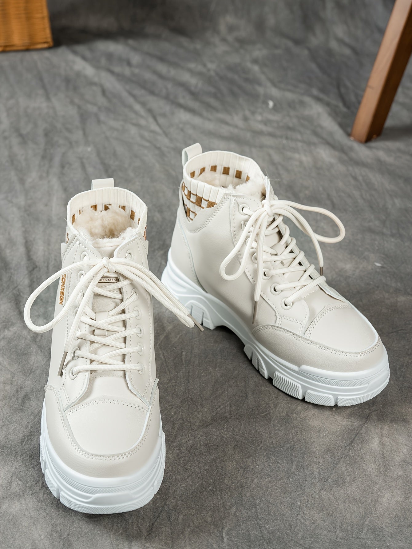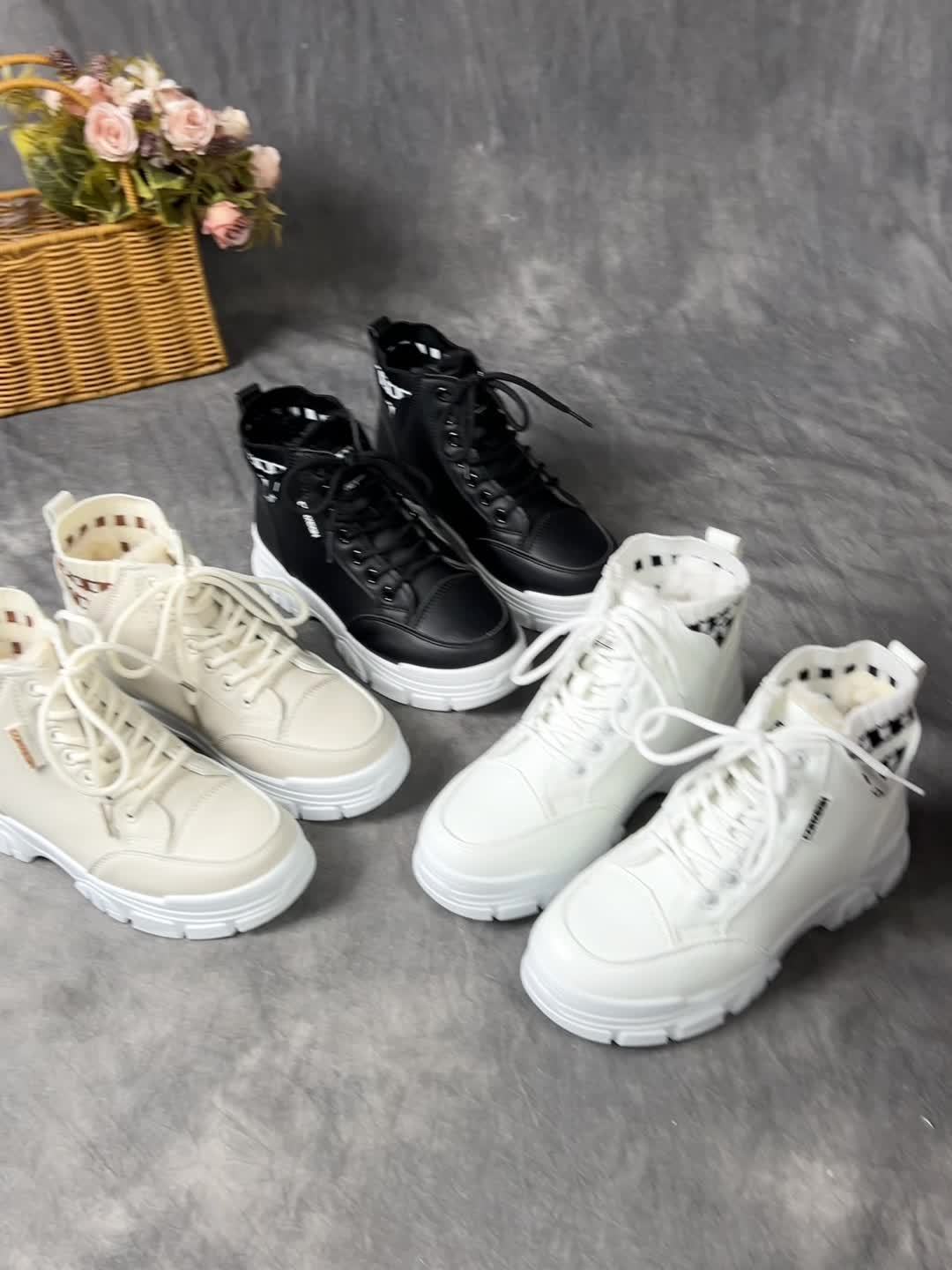 gfhfgjjfg Women's Casual High-Top Platform Ankle Boots with Lace-Up Closure, Thick Rubber Sole & Faux Cover Upper - Winter Warm Round Toe Boots for Casual Attire (Black/White/Beige), Comfortable Footwear, Durable Traction Foo