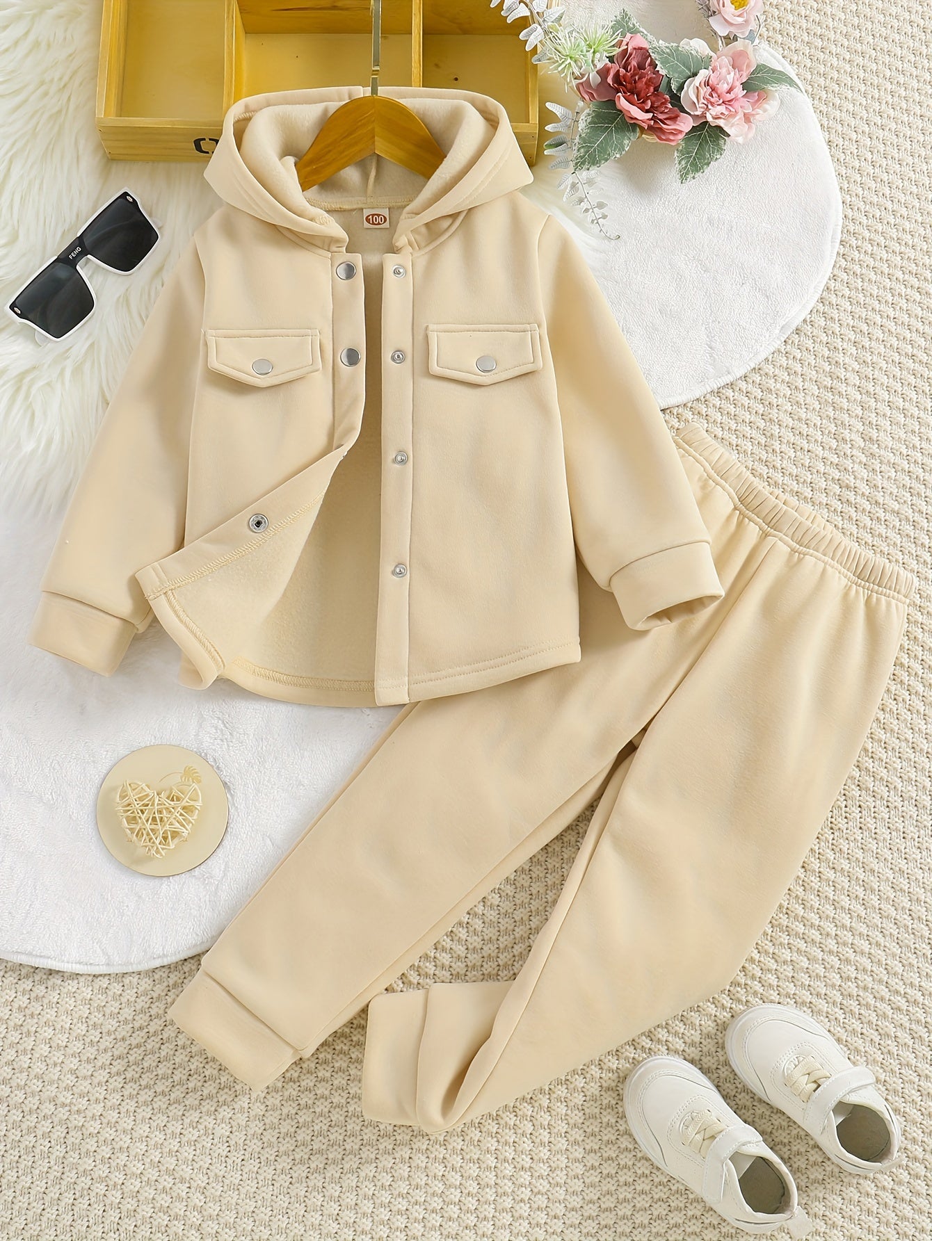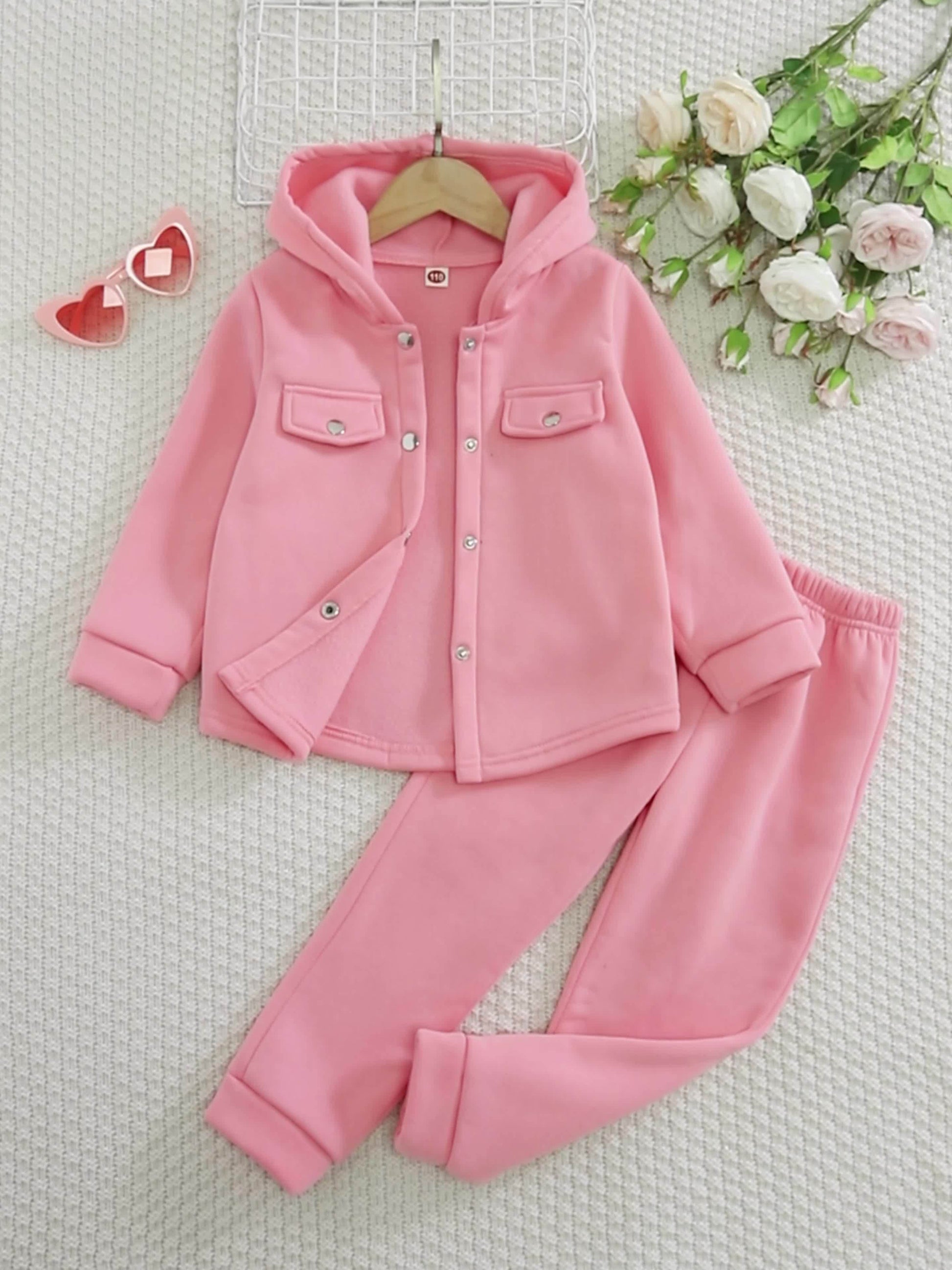 Աղջիկների համար նախատեսված 2 կտորանոց հավաքածու, կոճակներով առջևի մասով գլխարկով բաճկոն + մարզական տաբատ, աշնանային հագուստ, երեկույթների, բացօթյա սպորտի և բացօթյա խաղերի համար