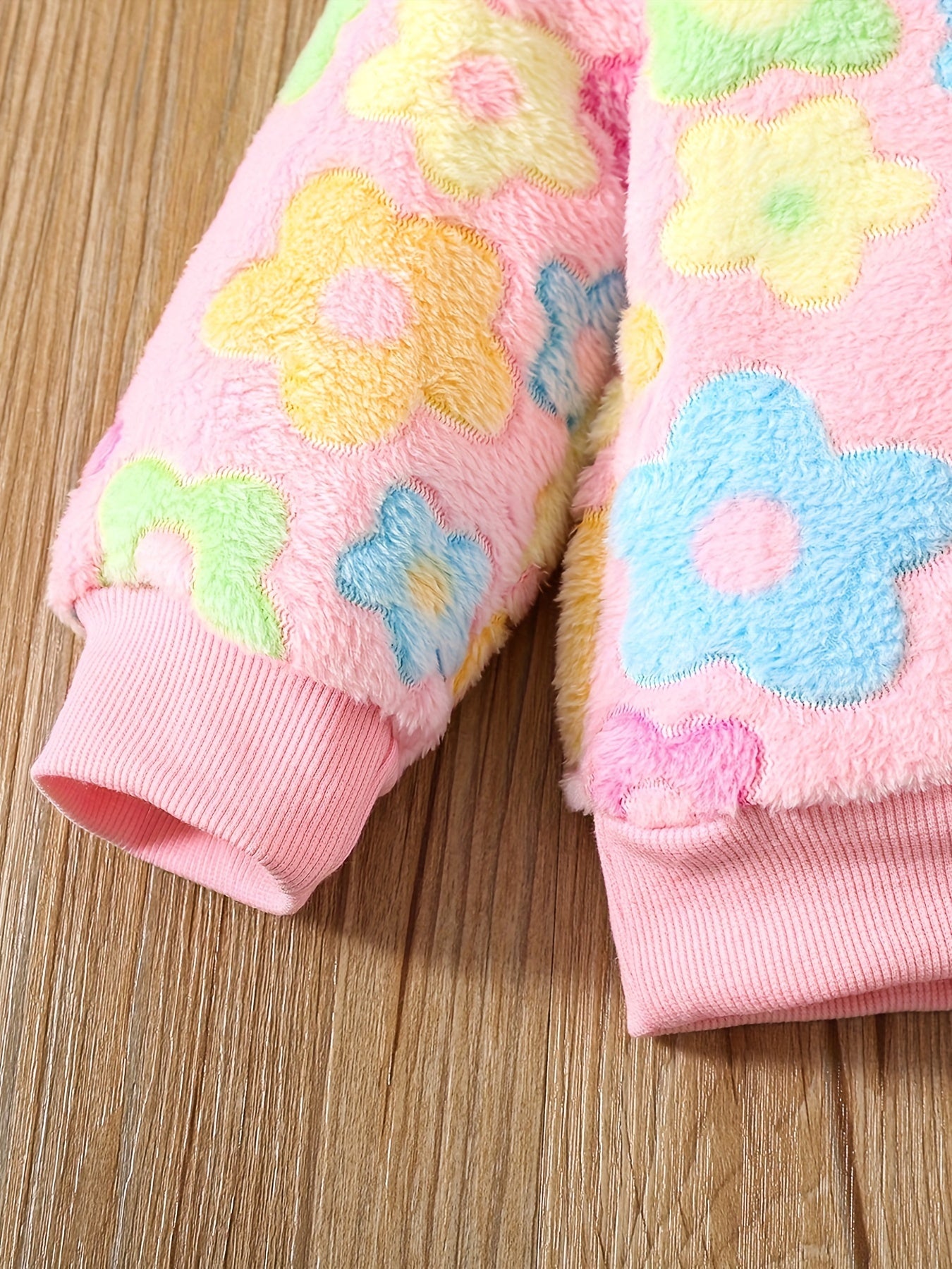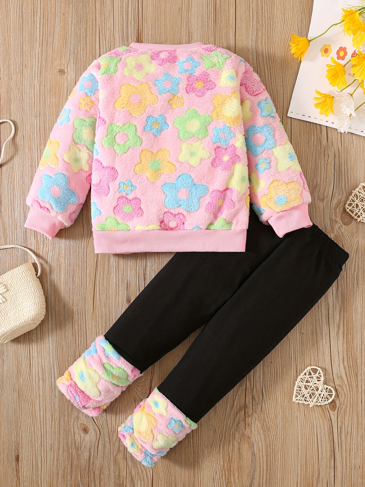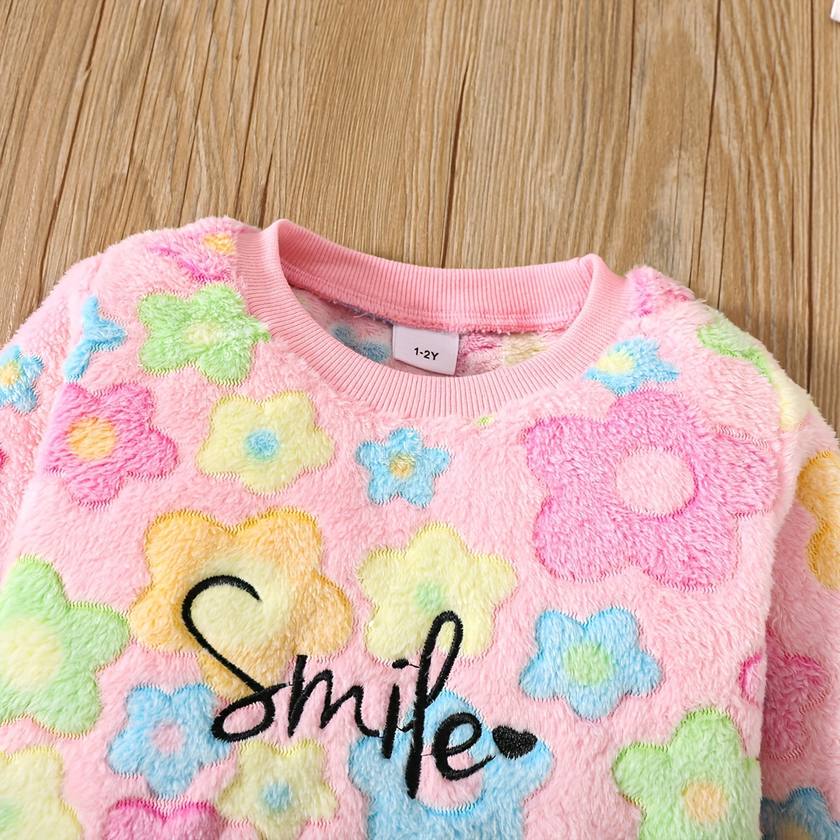 Աղջիկների աշնանային և ձմեռային նորաձև տաք հավաքածու «Ժպիտ» ասեղնագործությամբ, գունագեղ ծաղկային ապլիկացիայով բրդյա բաճկոնով և լայնածավալ տաբատով, իդեալական է բացօթյա օգտագործման համար