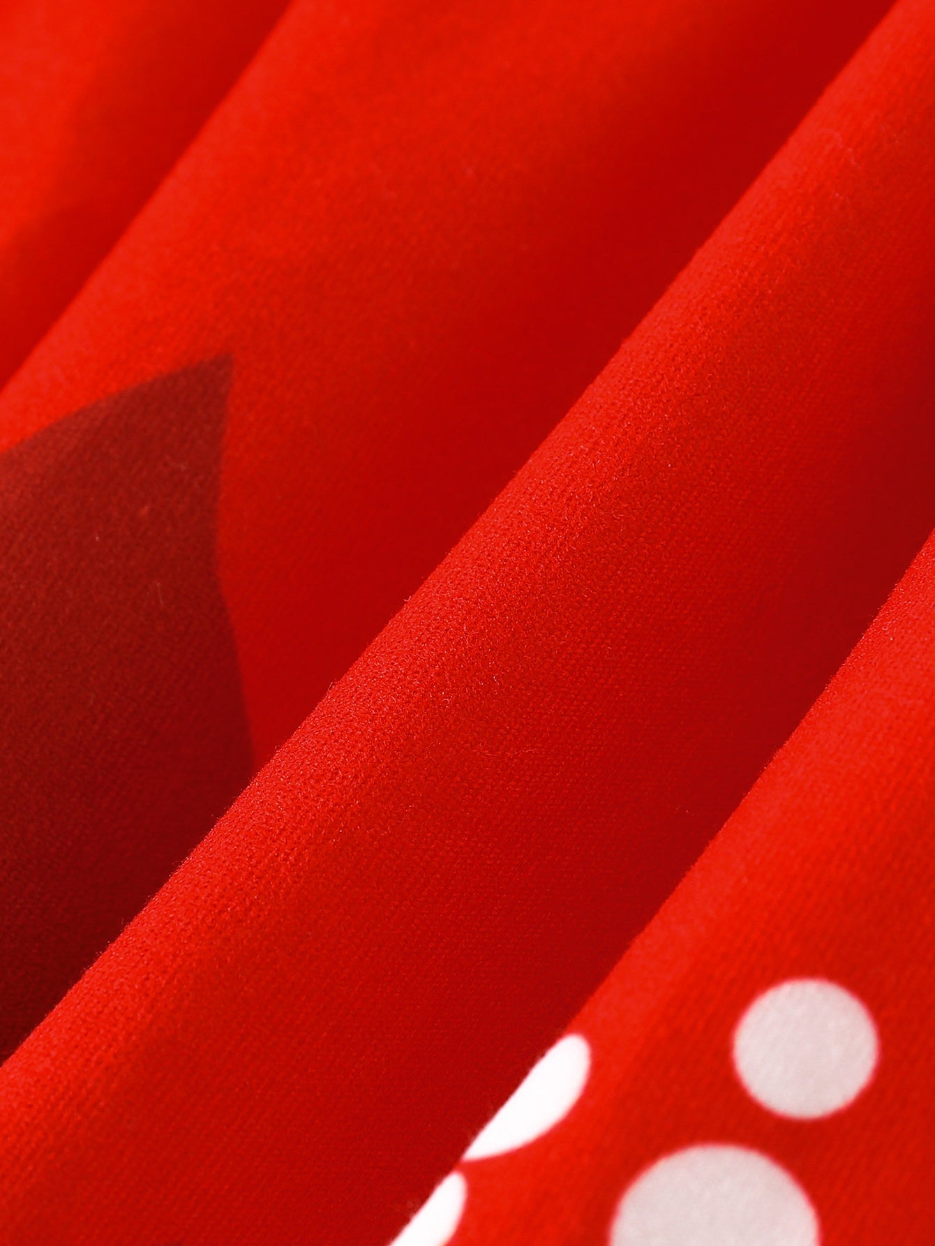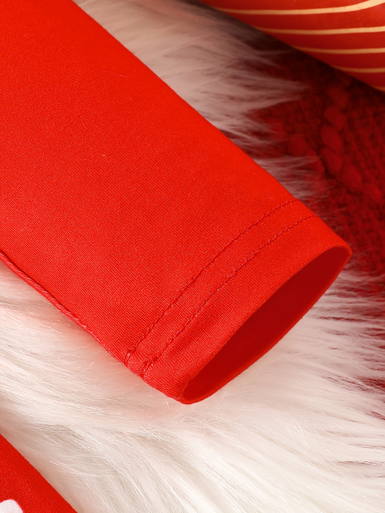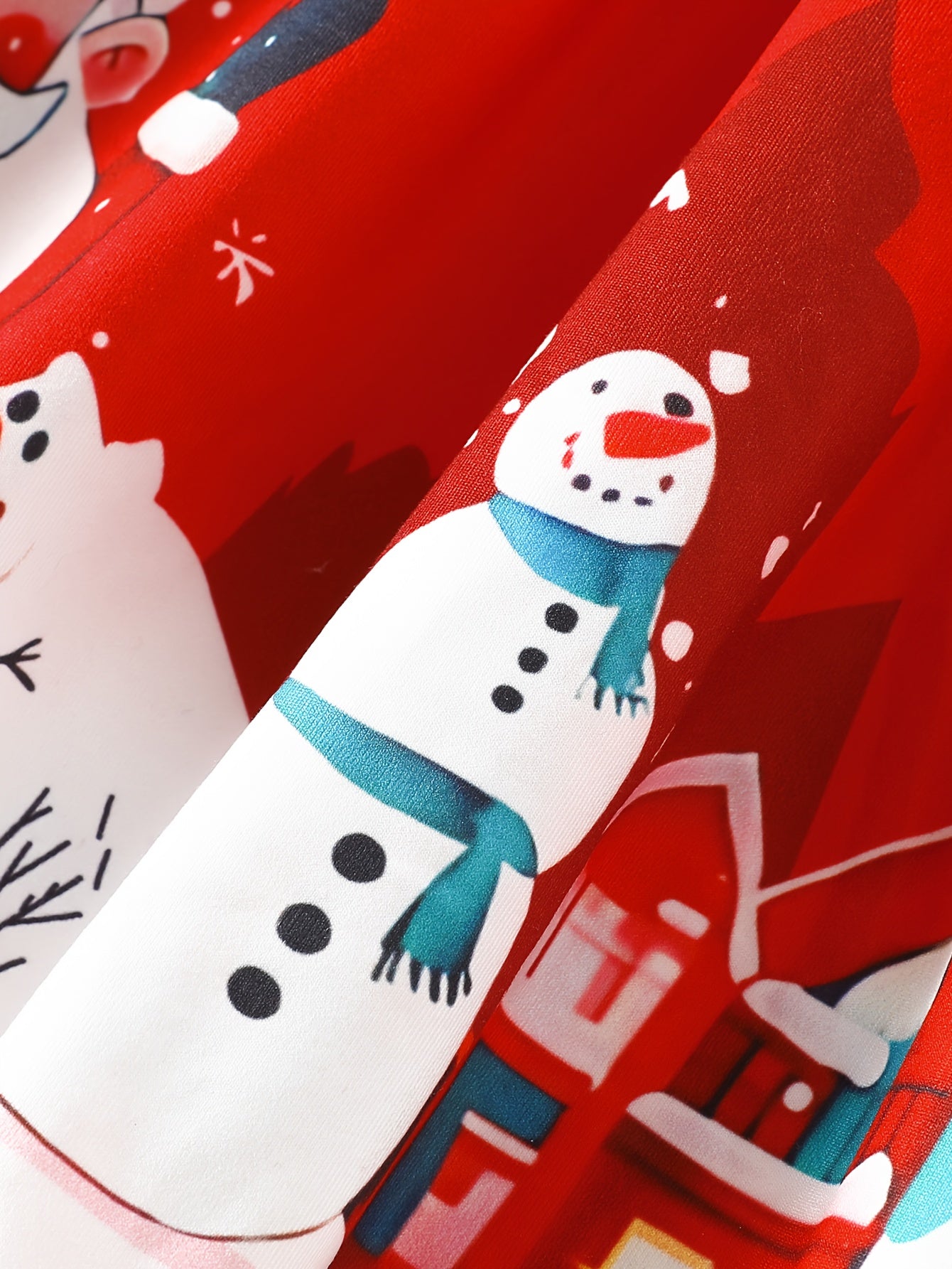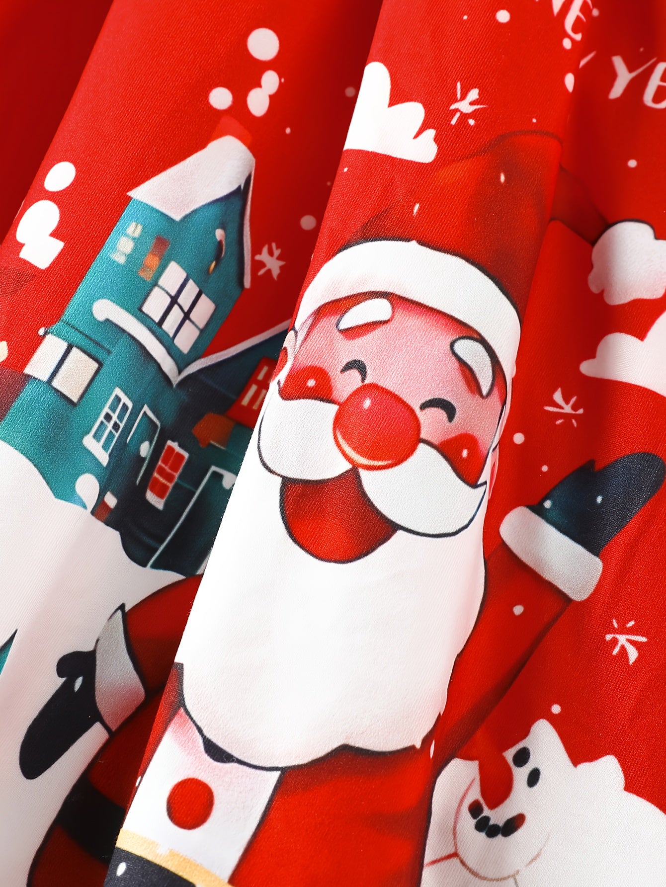 Girls' Christmas Party Dress - Long Sleeve Ruffled Hem Mid-Length Red Dress with Merry Christmas Print, Snowflakes & Santa Hats - Casual Holiday Outfit for Autumn & Winter Festive Celebrations, Durable Construction, Quality S