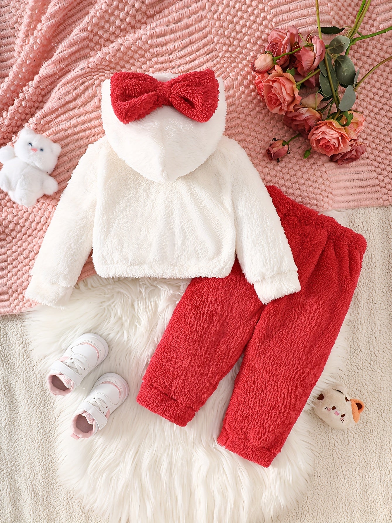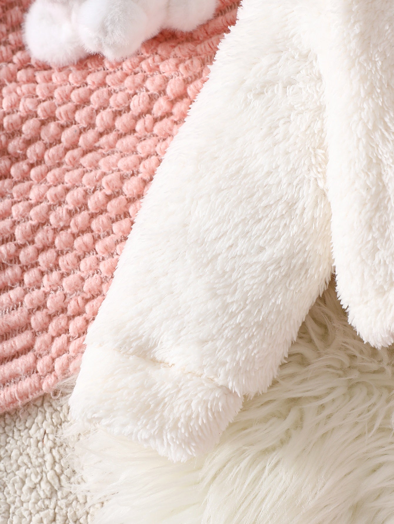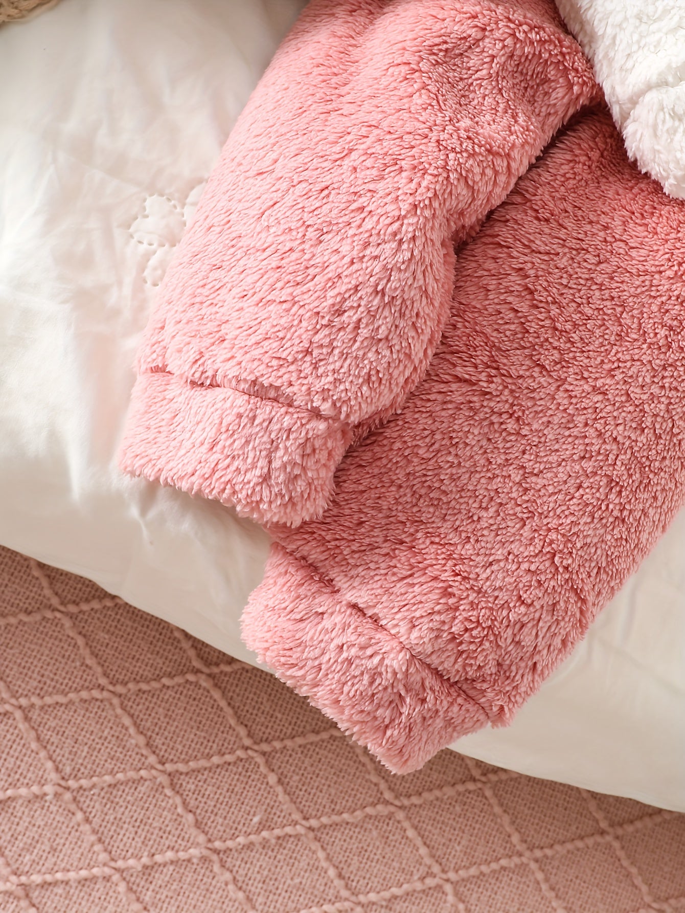 Girls' Cute Cartoon Cat Print Hooded Sweatshirt & Pants Set - Soft Plush Fleece, Pink &, Perfect for Outdoor Play & Daily Wear, Ideal Gift for Newborns, Outdoor Play Clothes, Playful Design, Comfortable Clothing, For Outdoor