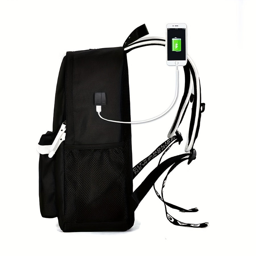 Մթության մեջ փայլող տղամարդկանց մեջքի պայուսակ՝ նորաձև և թեթև, մեծ տարողությամբ Oxford Fabric Daypack USB լիցքավորման միացքով ամենօրյա երթևեկության, համալսարանի, մուլտֆիլմերի, ավագ դպրոցի համար