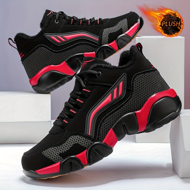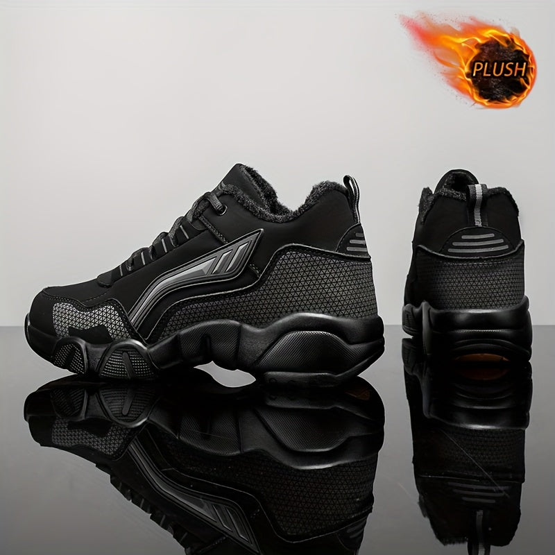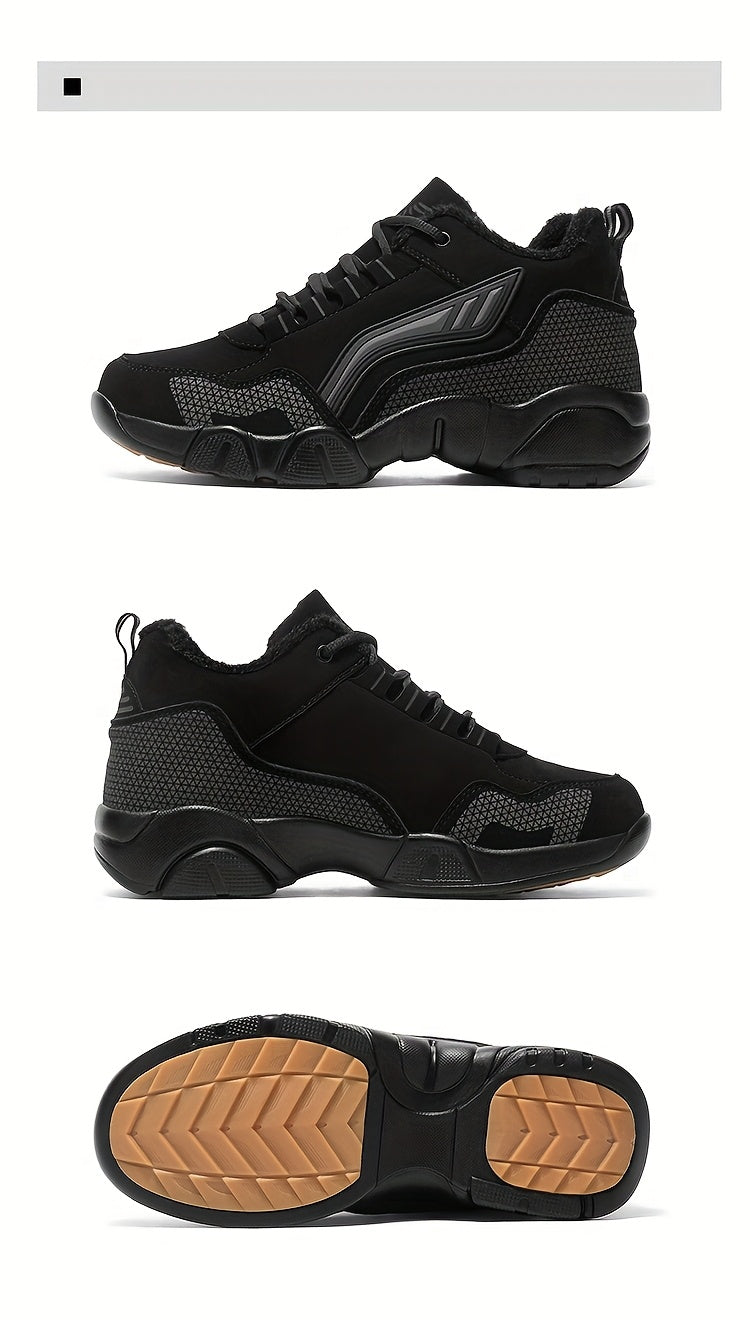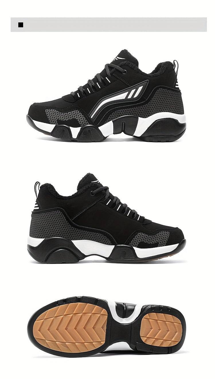 HIDEDUGO-ի ծանրքաշային ձմեռային կոշիկներ-սնիկերներ - Տաք միջին բարձրությամբ կոշիկներ, ամենագնացքային TPR ներբան, կապերով արտաքին կոշիկներ սառույցի և ձյան համար, մեծ չափսեր (սև/սպիտակ) - Ցուրտ եղանակի համար ամենօրյա և սպորտային կոշիկներ