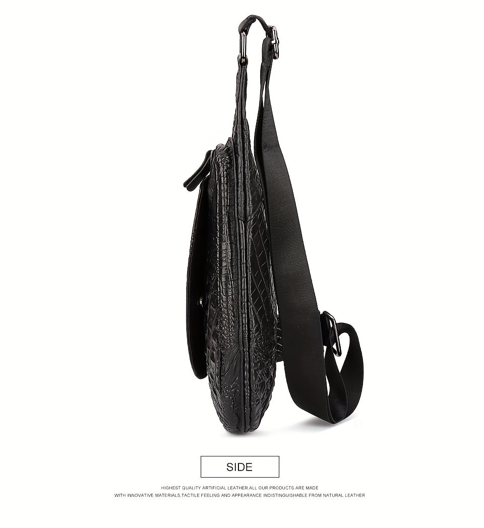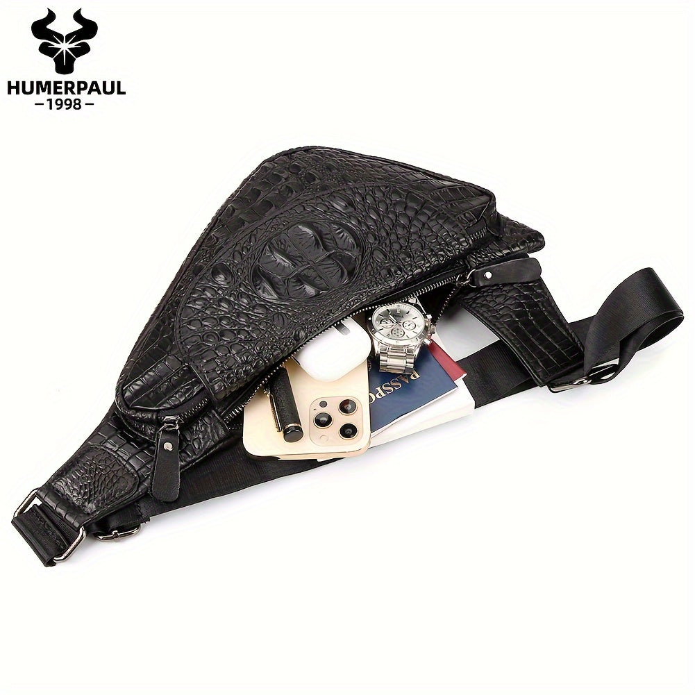 HUMERPAUL տղամարդու ամենօրյա շագանակագույն կաշվե կրծկալով պայուսակ՝ ալիգատորի նախշով - կարգավորվող ժապավենով, բազմաբաժիններով, ամենօրյա ուսի պայուսակ, ամենօրյա պայուսակ | Առօրյա ոճի պայուսակ | Կարգավորվող ժապավենով պայուսակ