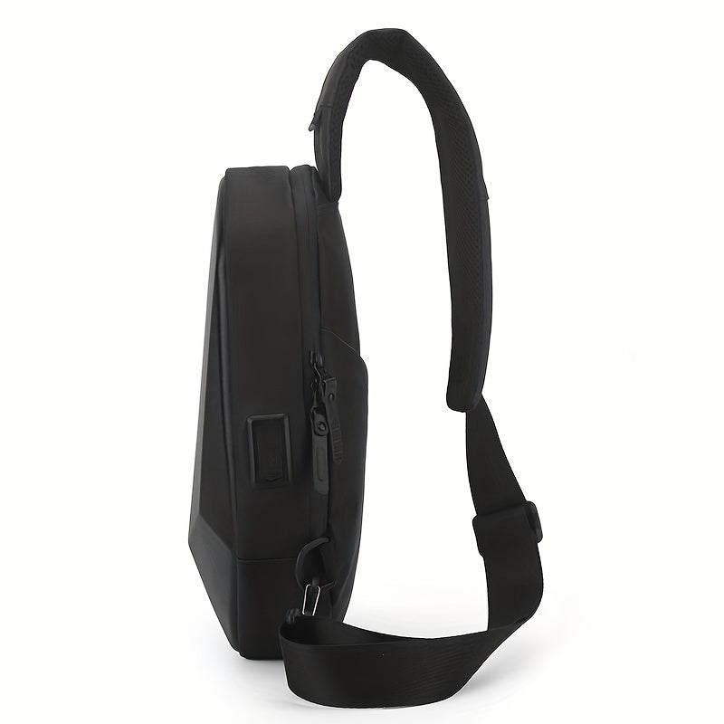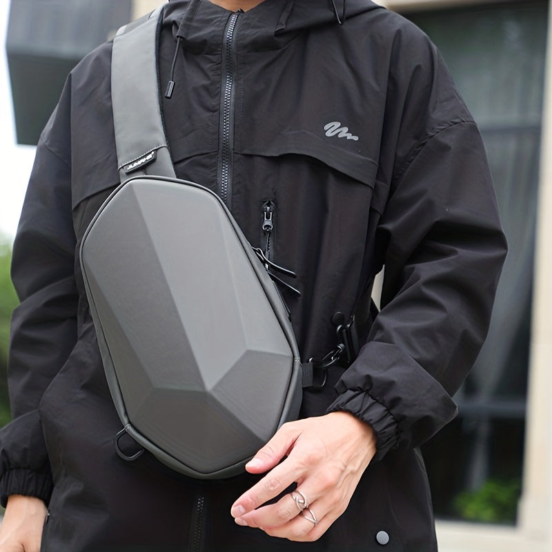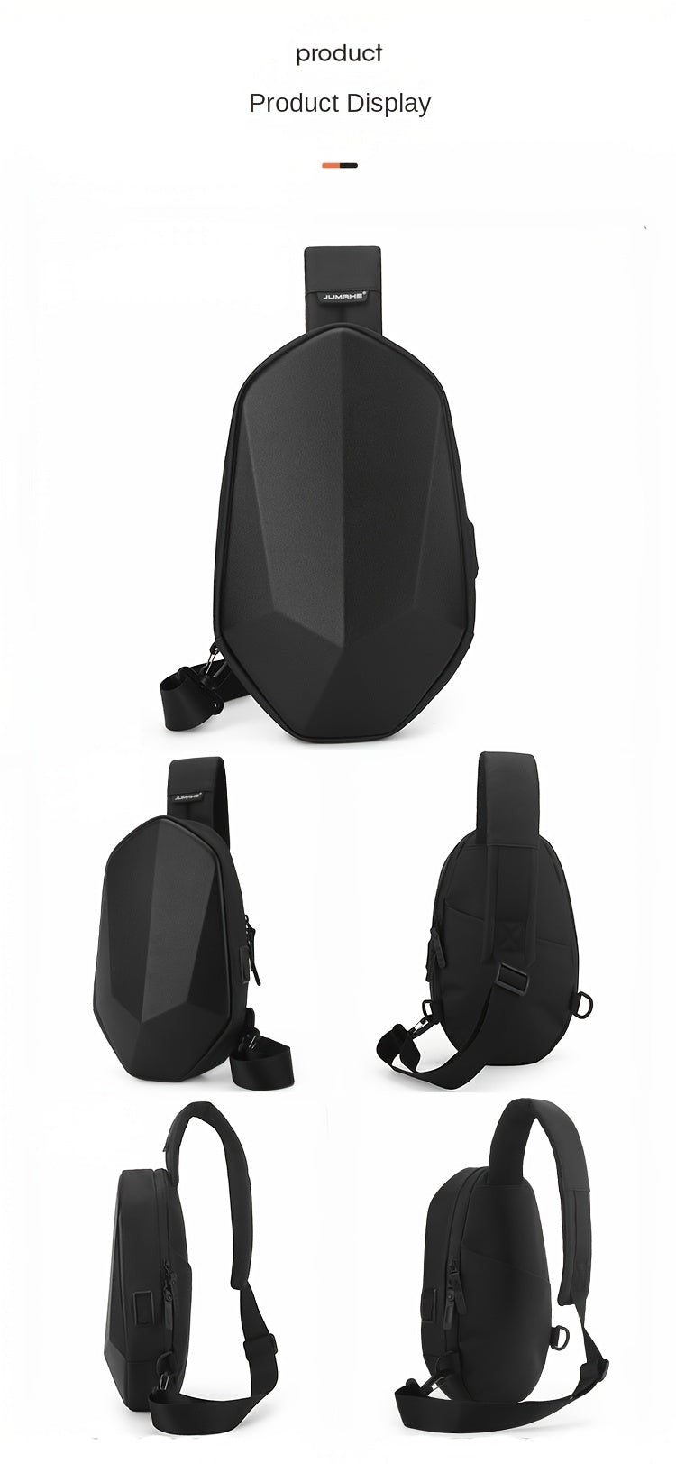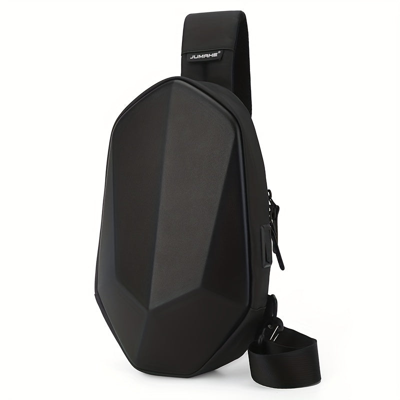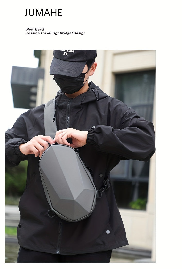 JUMAHE Men's USB Charging Crossbody Bag with Dual Power Ports, Hexagonal Geometric Design Street Style Shoulder Bag - Premium Durable Fabric, Adjustable Strap Zipper Closure for Daily Commute (Black/Grey), Bags for Travel,