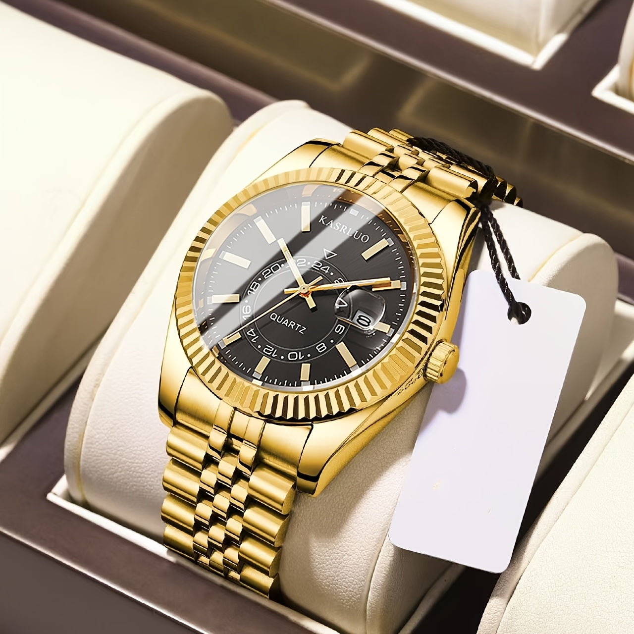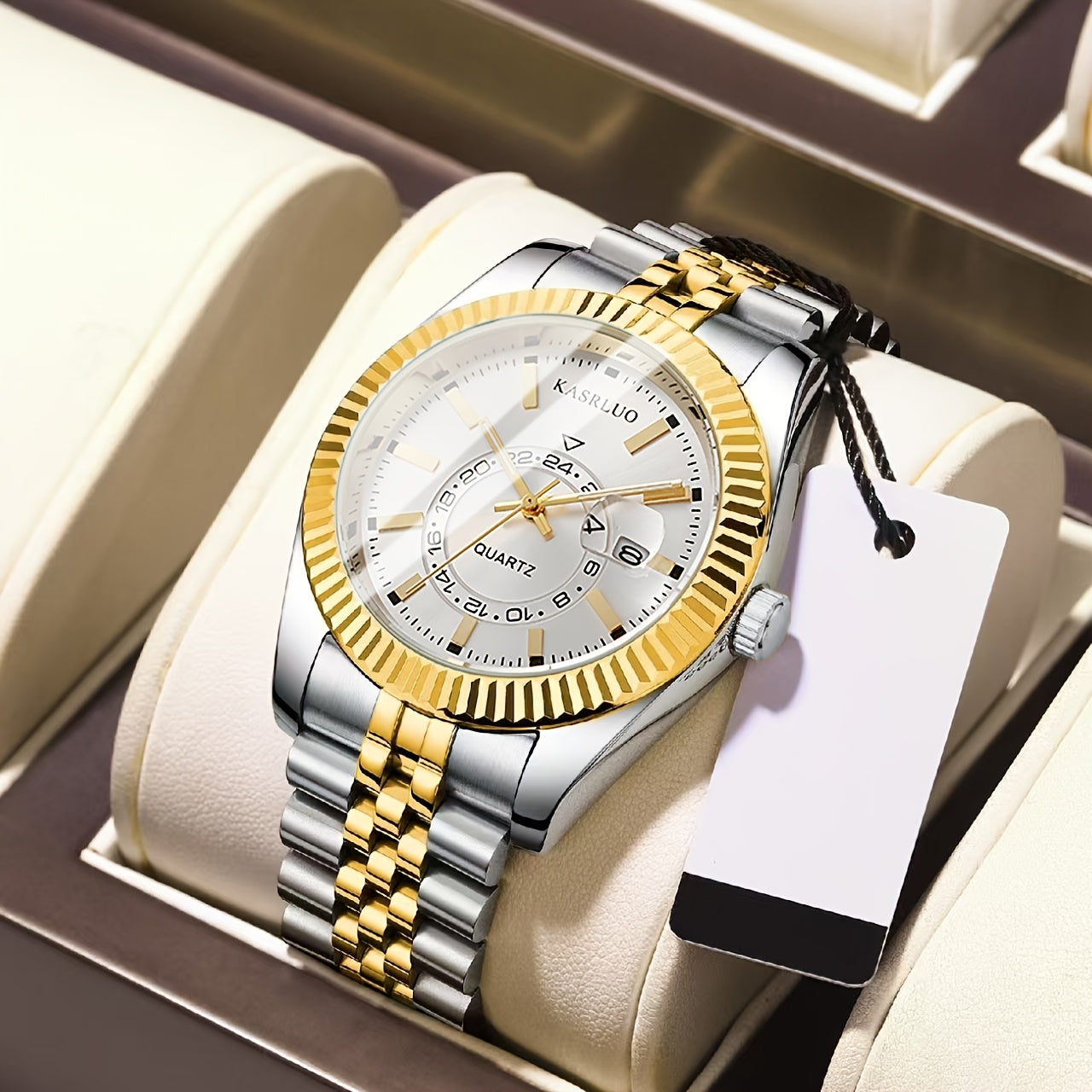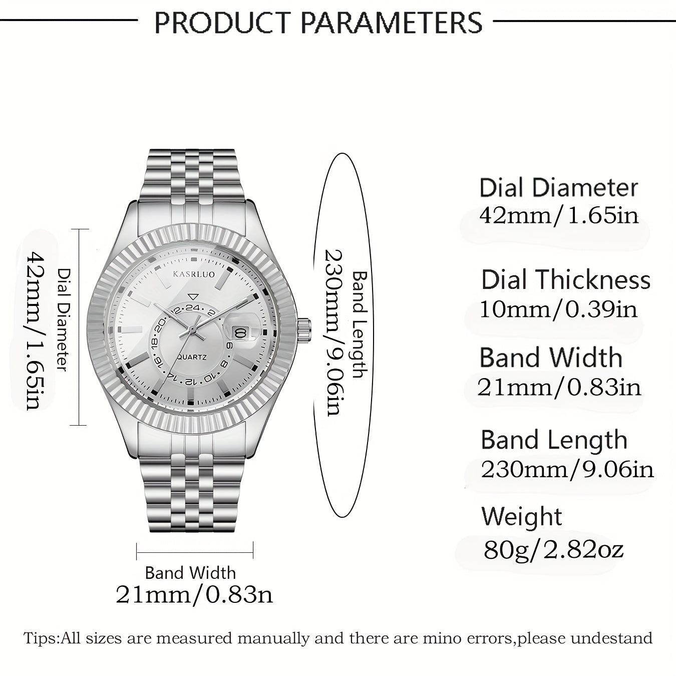 KASRLUO տղամարդու չժանգոտվող պողպատից ժամացույց օրացույցով - գործնական ոճ, քվարցային մեխանիզմ, կլոր ցուցատախտակ, սև արհեստական կաշվե ժապավեն, ամսաթվի ցուցադրում, էլեգանտ դիզայն երիտասարդ մասնագետների համար, պաշտոնական աքսեսուար | Նրբագեղ ոճ | Precisi