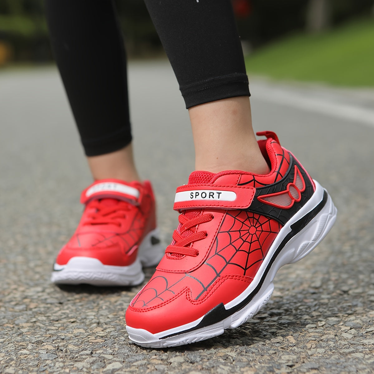Kids Fashion Sneakers Breathable Lightweight Sport Casual Shoes with Cartoon Spider Web Design, Closure, Low Top PU and Fabric for Boys and Girls – Versatile All-Season Footwear for Outdoor Activities