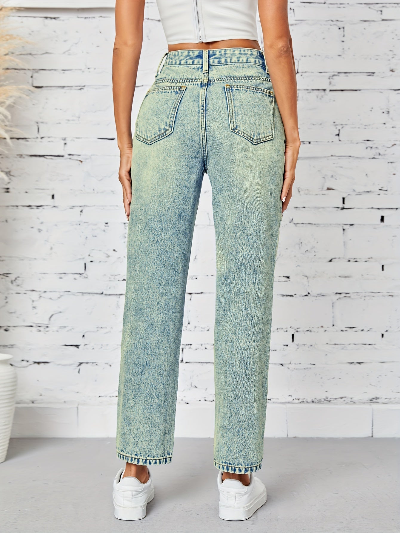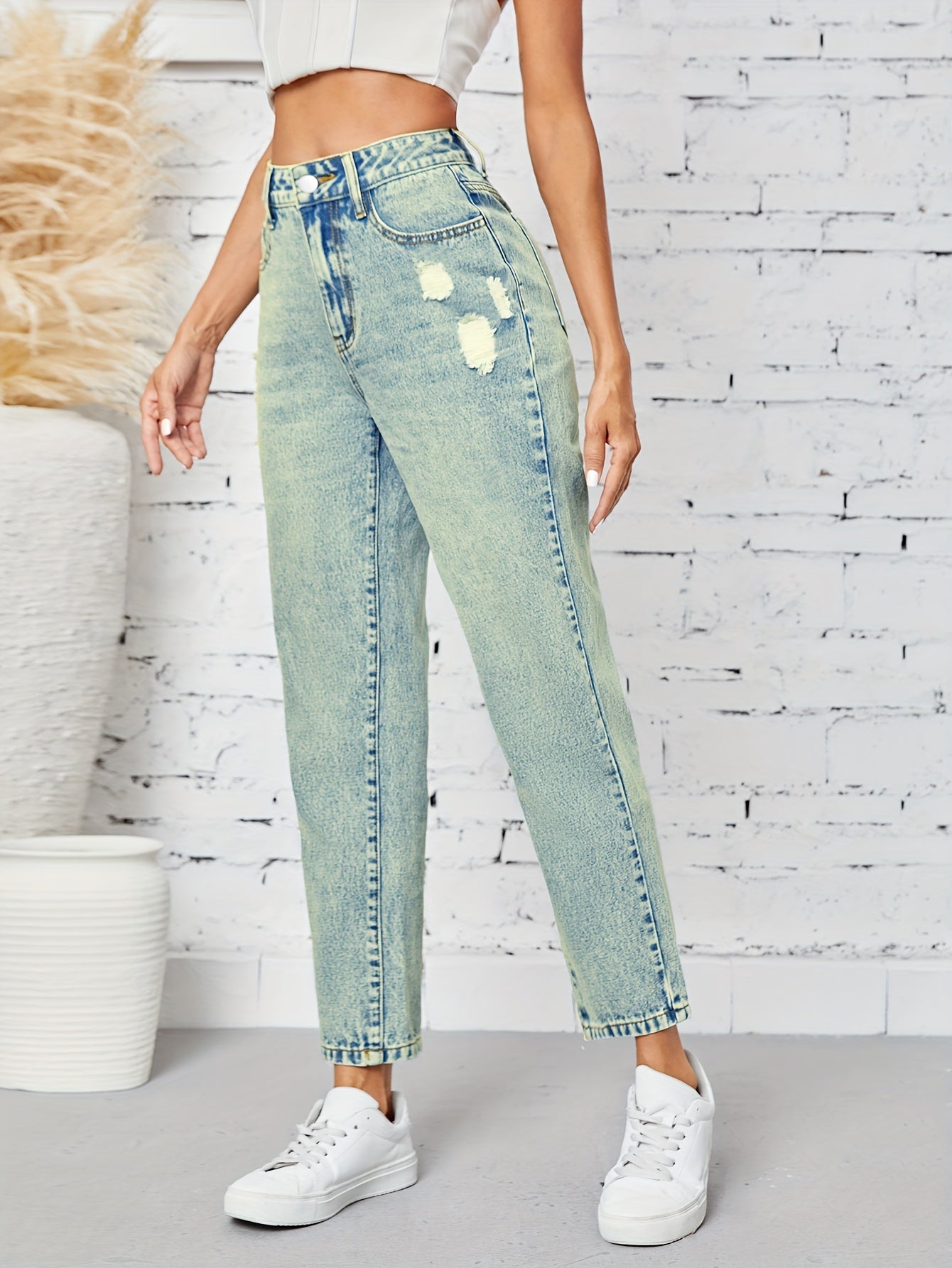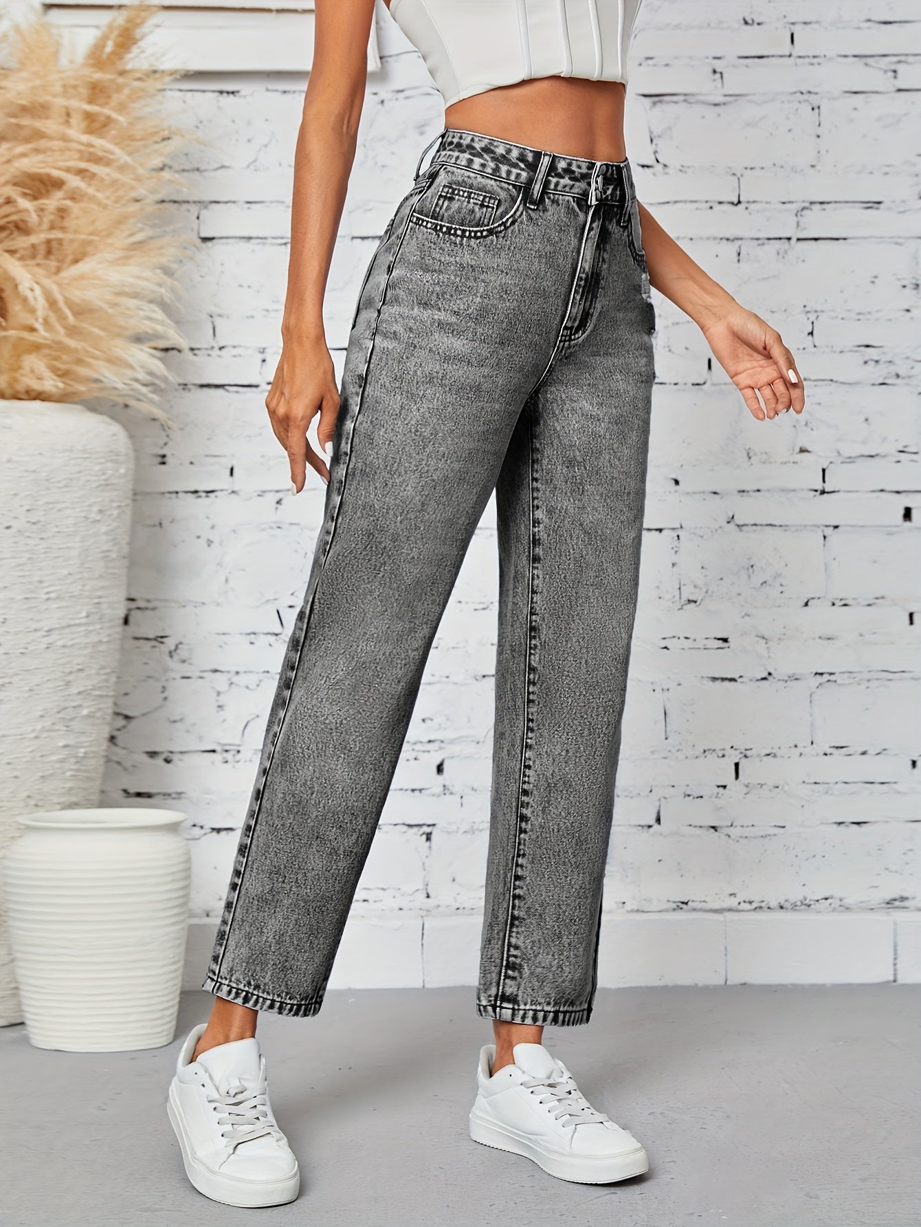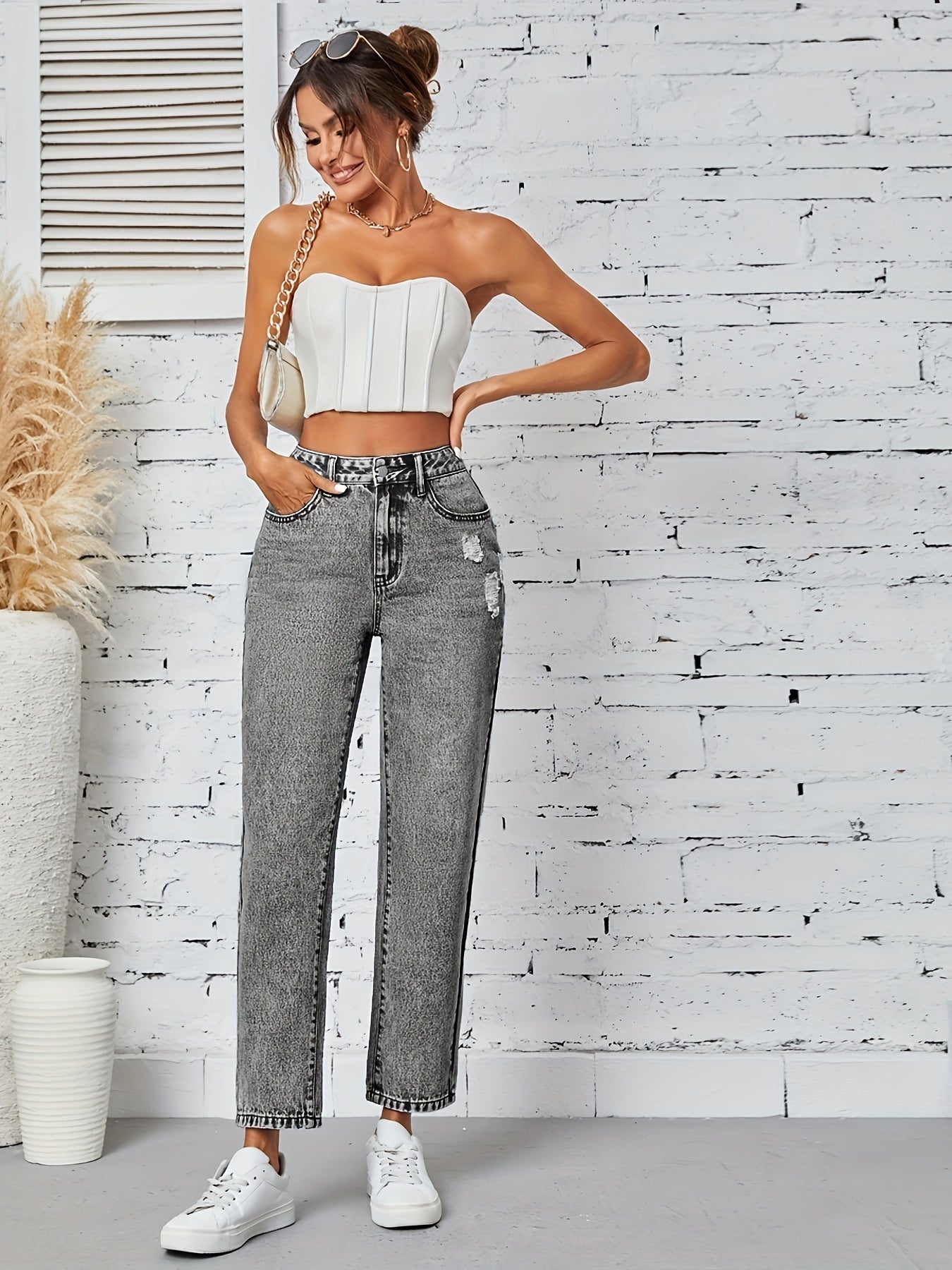Kiki Angel կանացի նեղացած ուղիղ ջինսեր՝ բարձր գոտկատեղով պատռված ջինսե տաբատ, ձգվող հարդարում, կտրատած գրպաններ, պատահական ոճ, լվացվող մեքենայում, մոխրագույն-սև ջինսե գործվածք