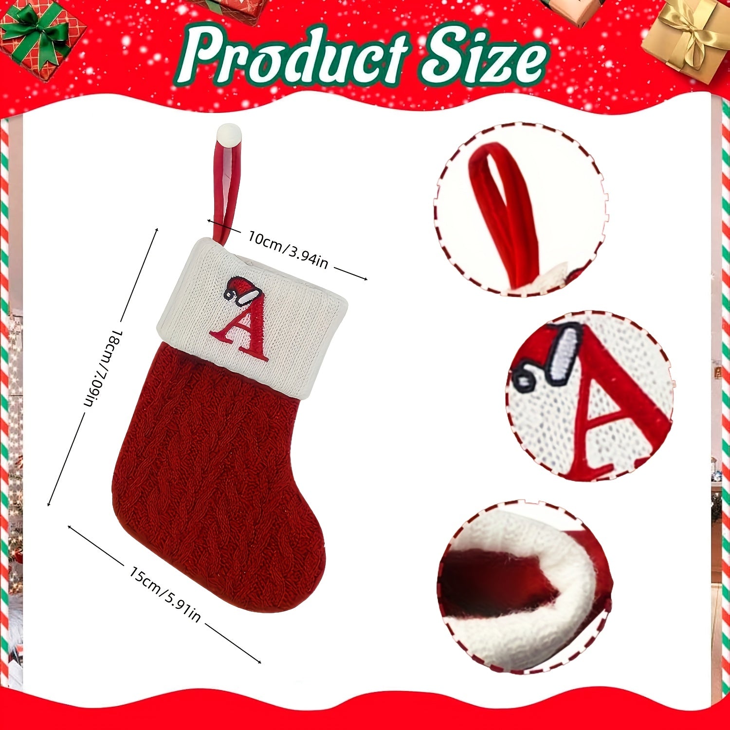 Knitted letter Christmas stockings, Christmas stockings, small Christmas English letter hanging stockings, Christmas stockings, double-sided fireplace hanging stockings, suitable for Christmas party decorations, New Year part