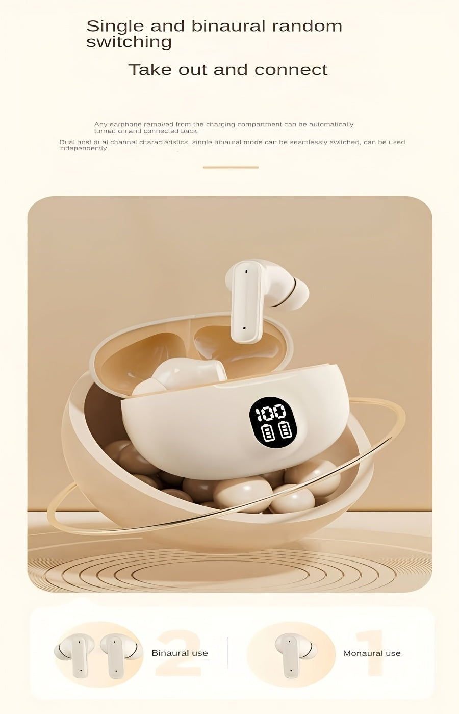 LED power display wireless headphones, Type-c charging case, long range, low latency, adaptable to cell phones, tablets, laptops, compact and portable, exquisite wireless earbuds, sports music lovers gift preferred recommenda